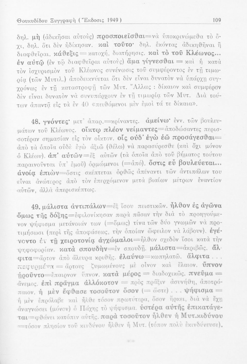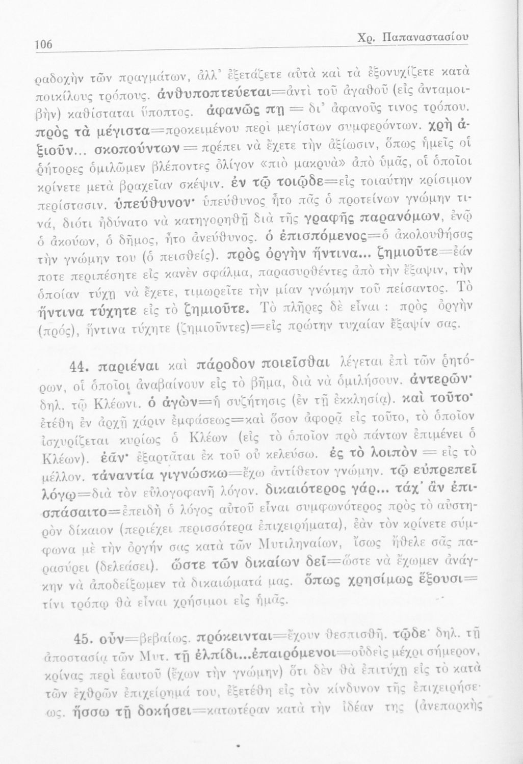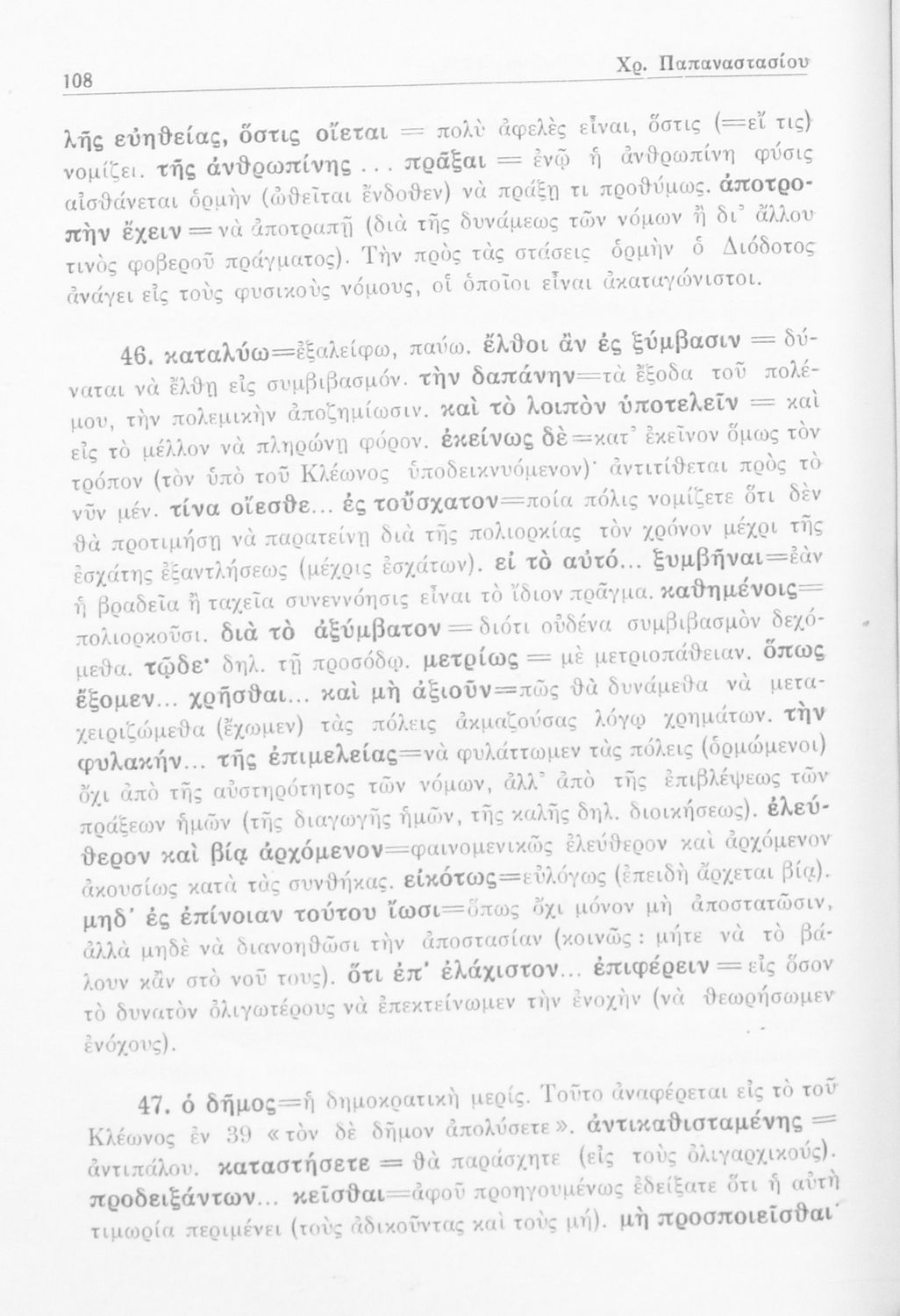 Θουκυδίδης, Χρισ. Παπαναστασίου (σχόλια)