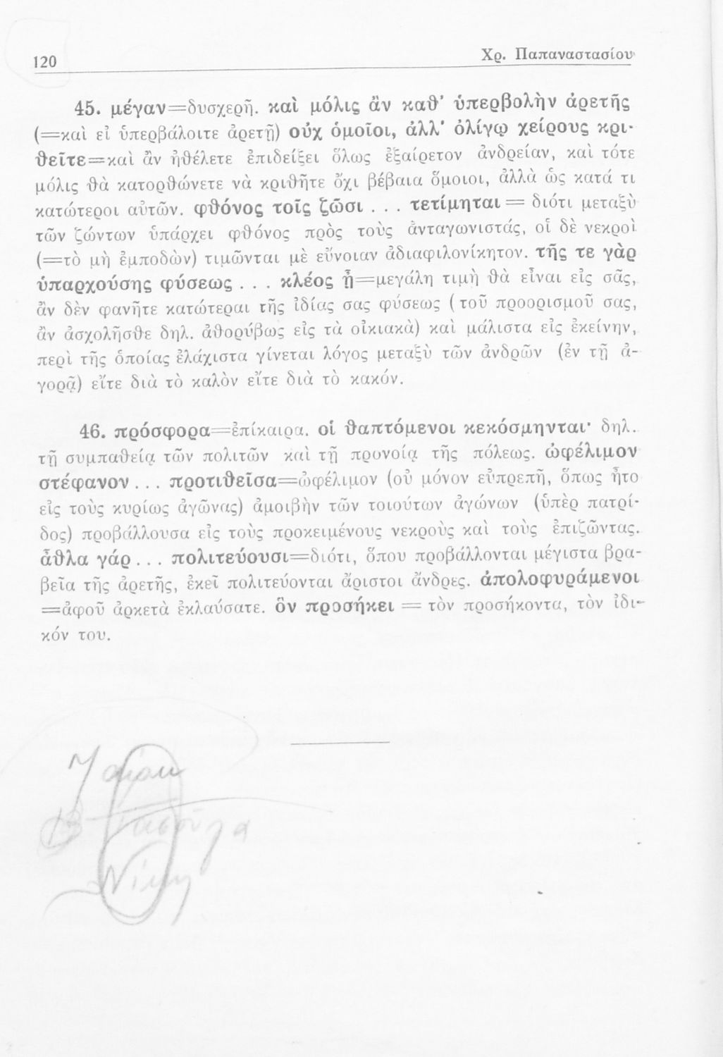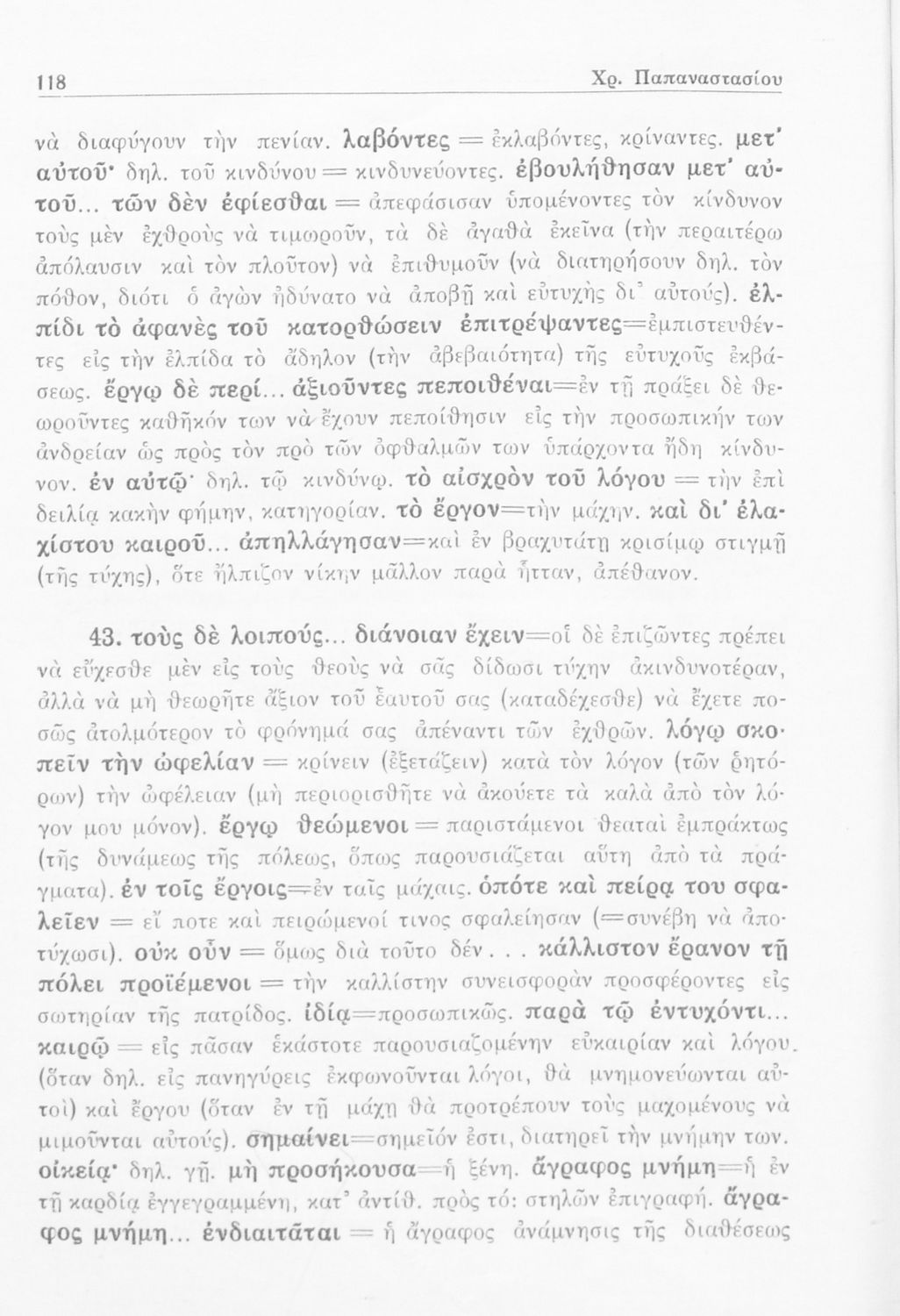 Θουκυδίδης, Χρ. Παπαναστασίου (σχόλια)