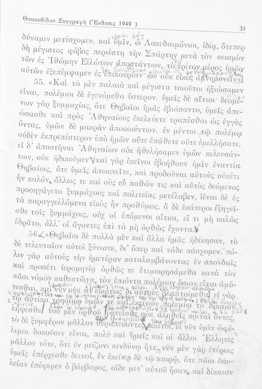 Θουκυδίδης, Χρ. Παπαναστασίου (σχόλια)