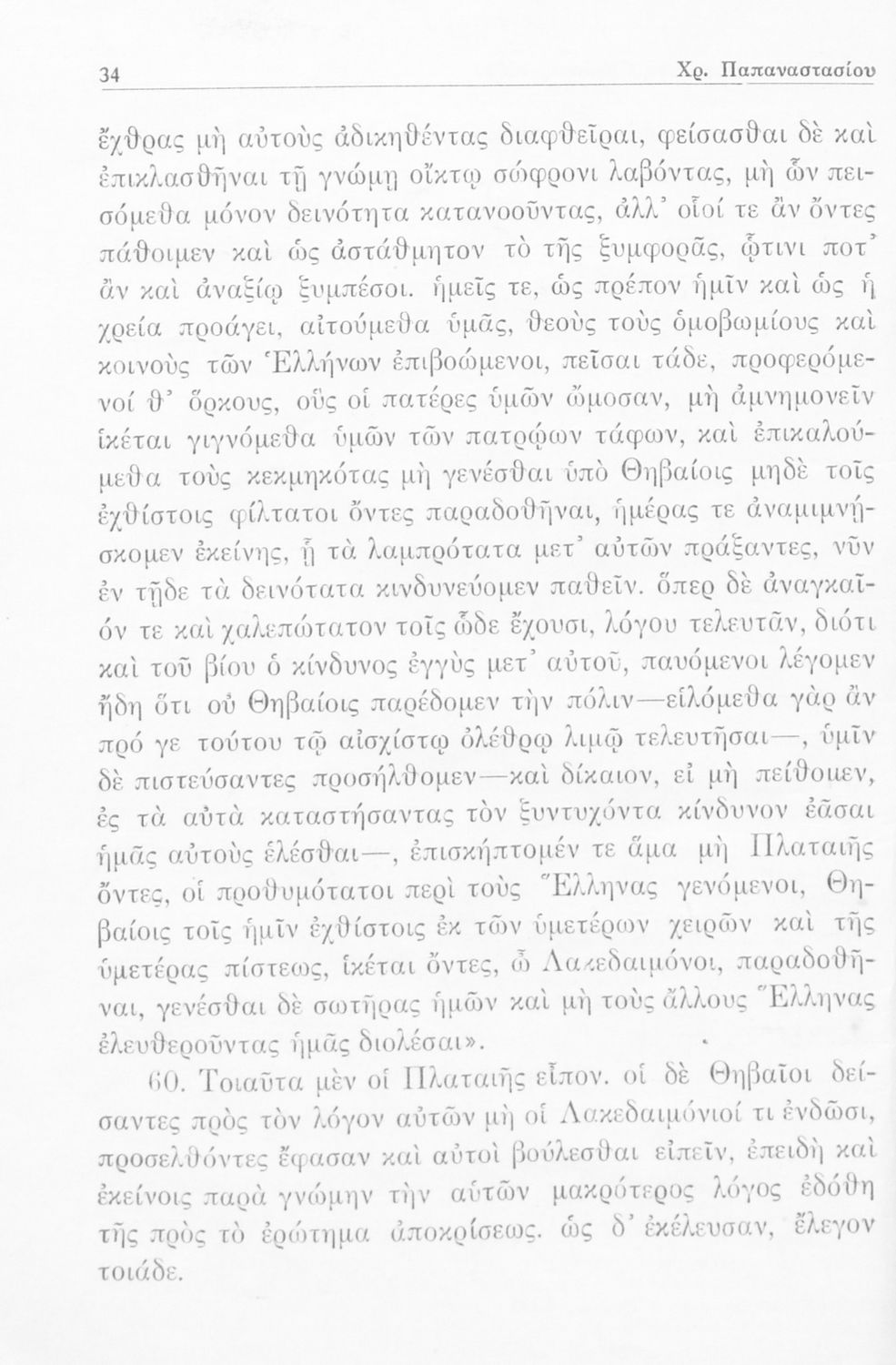 Μαθητικό βοήθημα Αρχαίων Ελληνικών ΣΤ΄ Γυμνασίου που περιλαμβάνει αποσπάσματα από τα Πλαταϊκά του Θουκυδίδη, μετάφραση, γραμματικά, συντακτικά και ερμηνευτικά σχόλια.