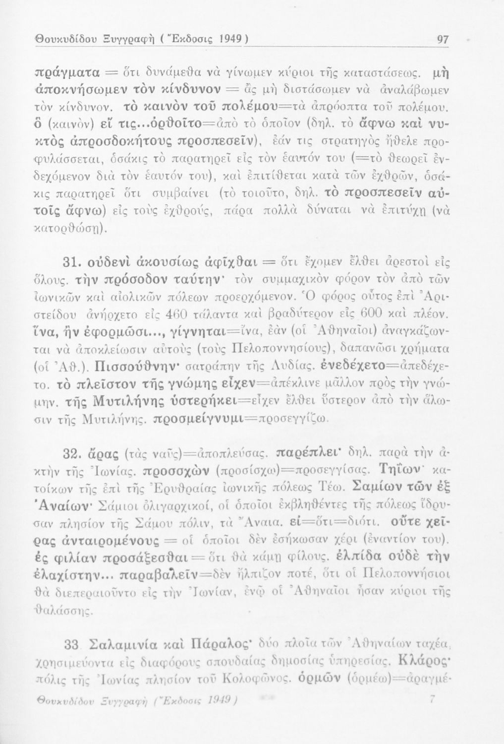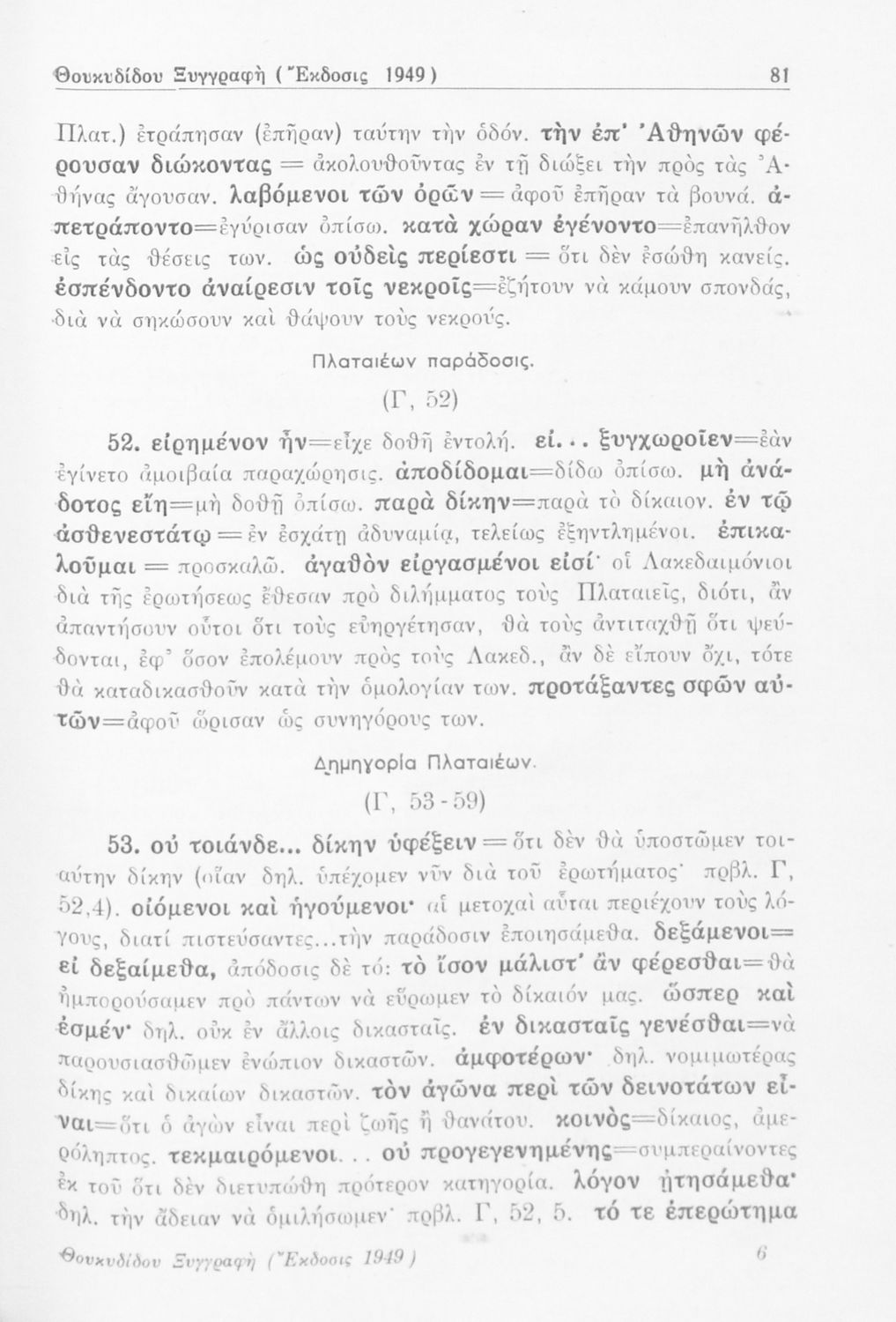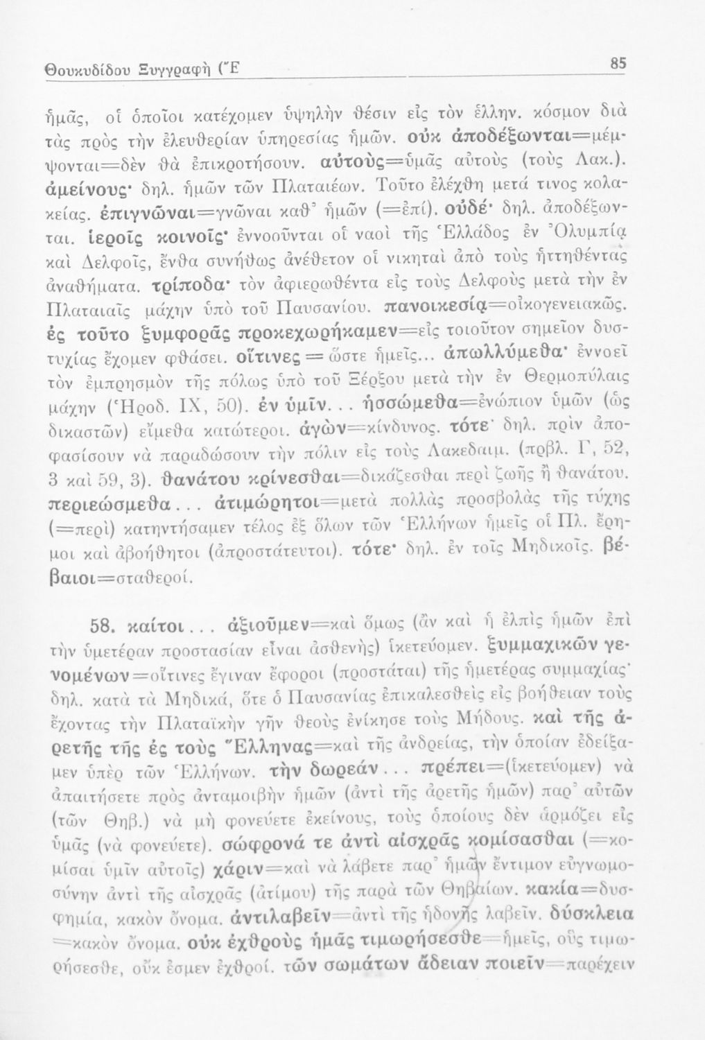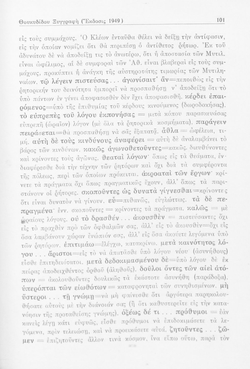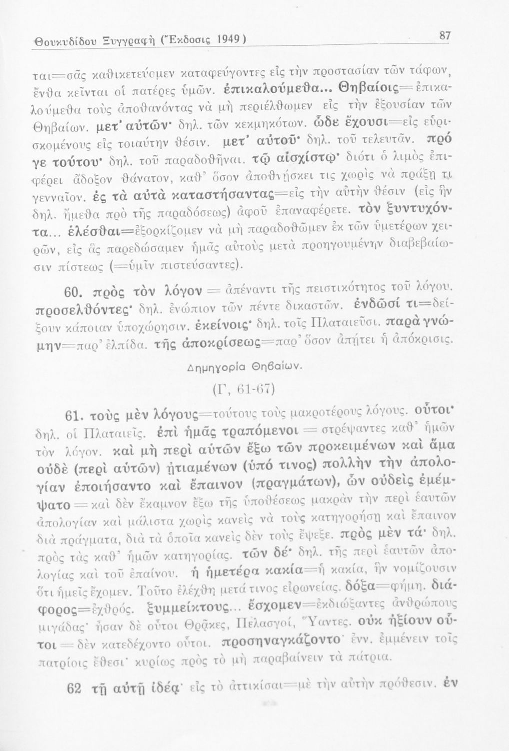 Σχολικό εγχειρίδιο Αρχαίων Ελληνικών Δ΄, Ε΄ και ΣΤ΄ Γυμνασίου που περιέχει εισαγωγή στη ζωή και το έργο του Θουκυδίδη, αποσπάσματα από τα Πλαταιϊκά, τα Λεσβιακά και τον Επιτάφιο του Περικλή και ερμηνευτικές σημειώσεις.