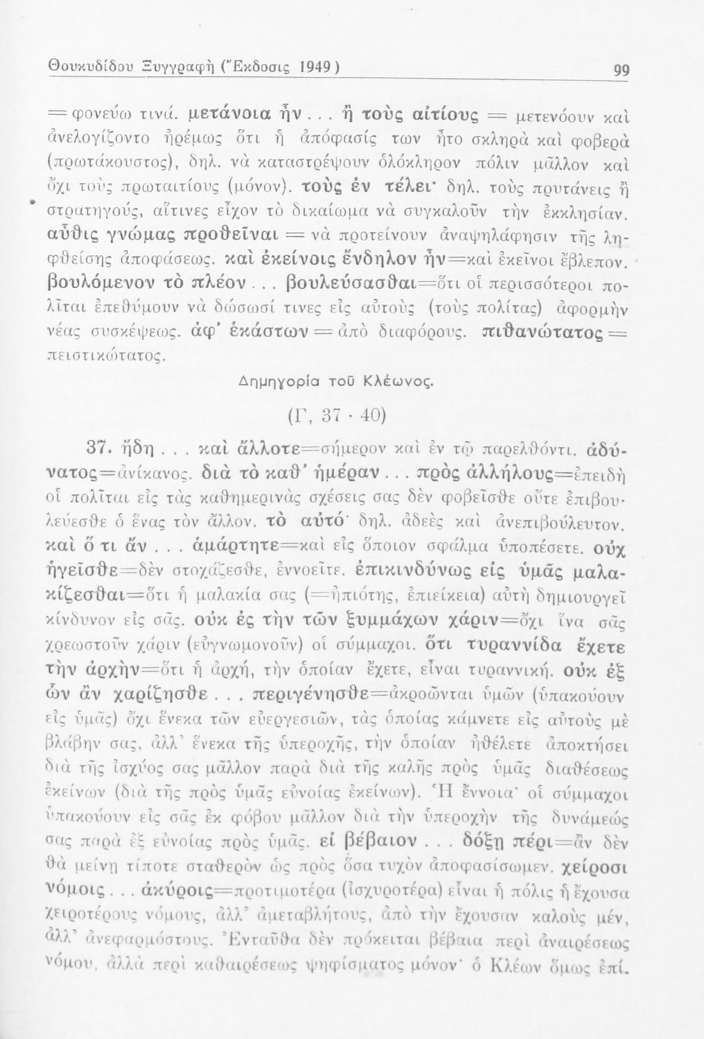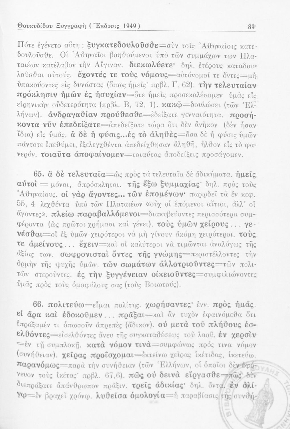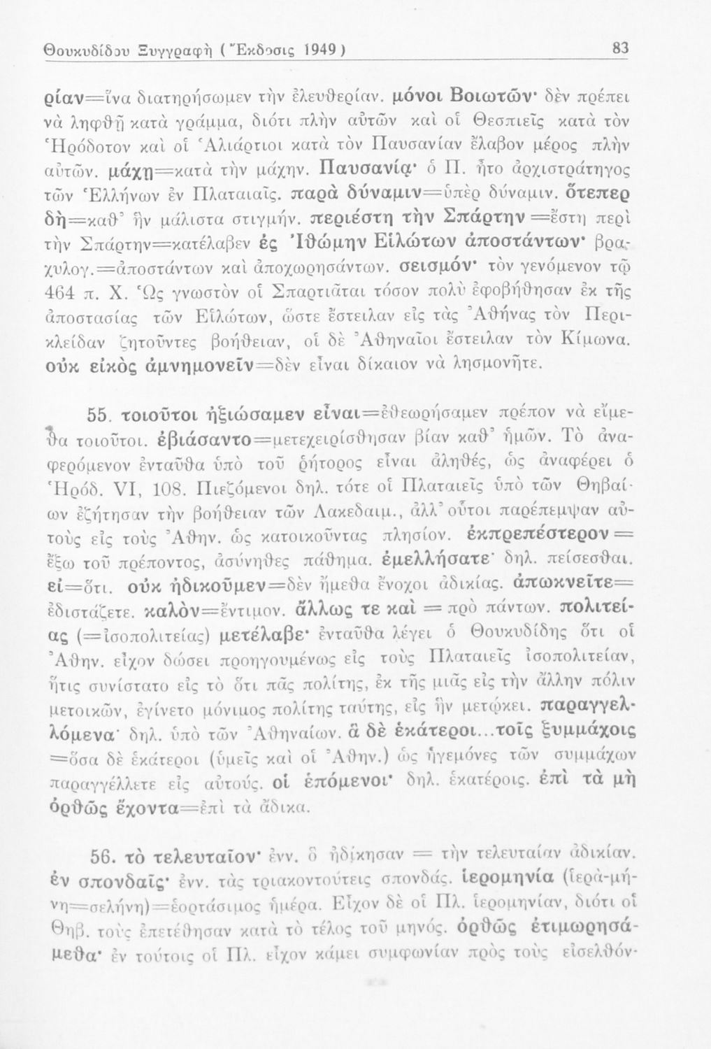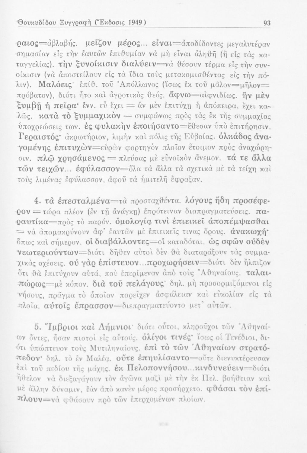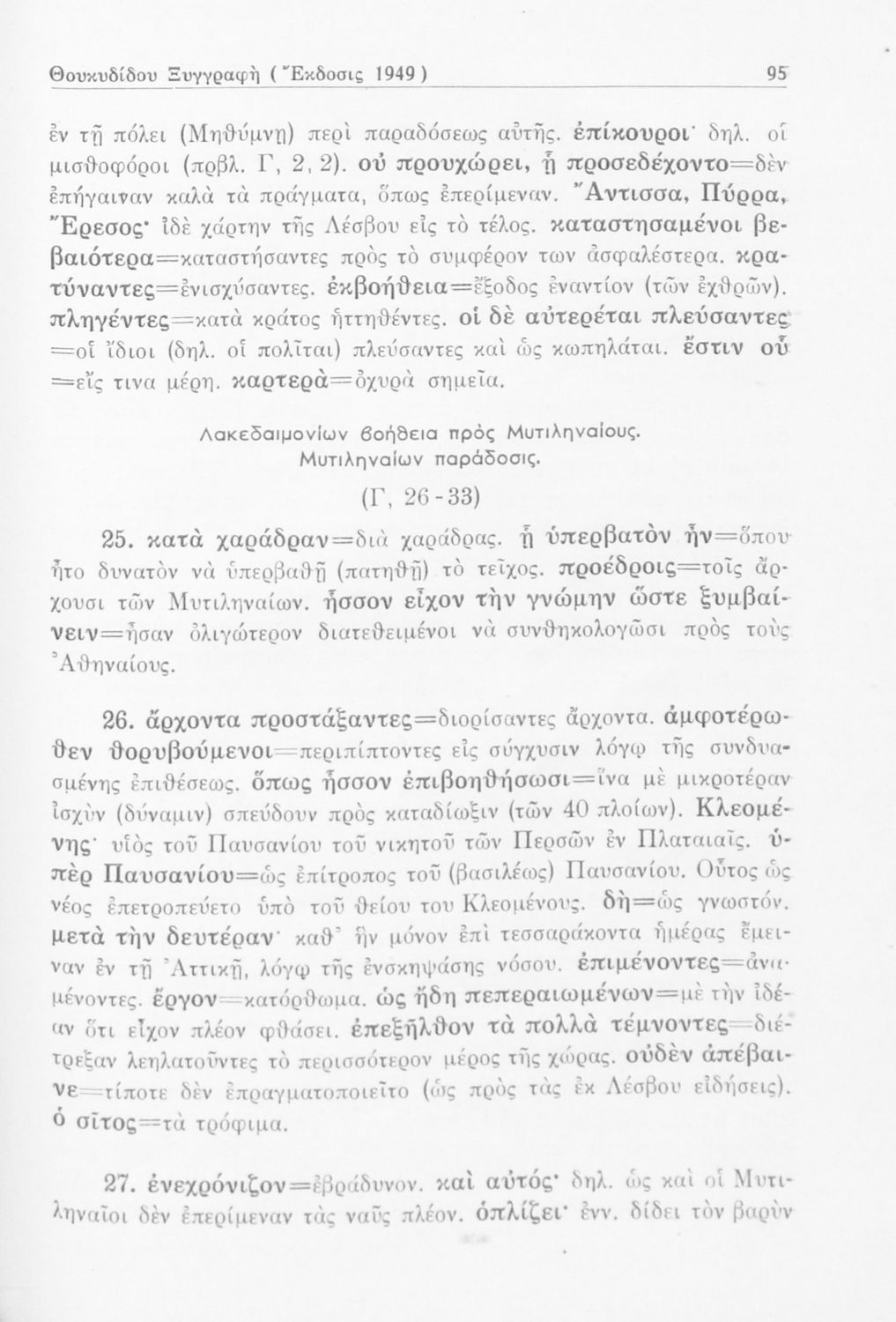 Σχολικό εγχειρίδιο Αρχαίων Ελληνικών Δ΄, Ε΄ και ΣΤ΄ Γυμνασίου που περιέχει εισαγωγή στη ζωή και το έργο του Θουκυδίδη, αποσπάσματα από τα Πλαταιϊκά, τα Λεσβιακά και τον Επιτάφιο του Περικλή και ερμηνευτικές σημειώσεις.