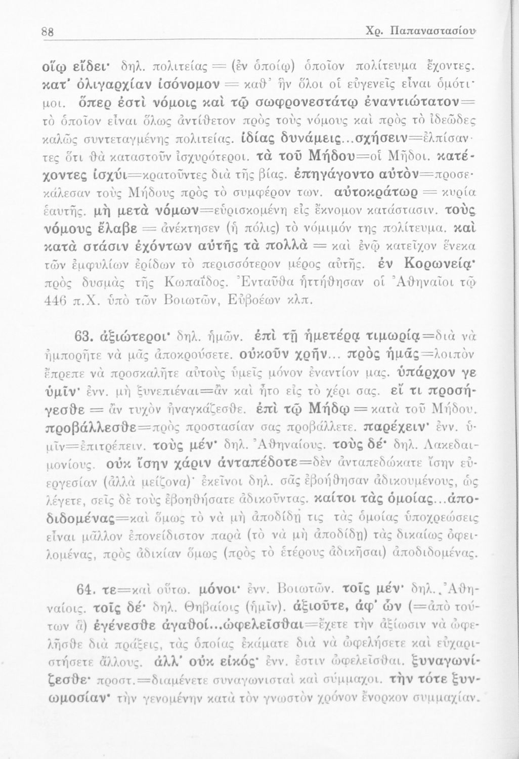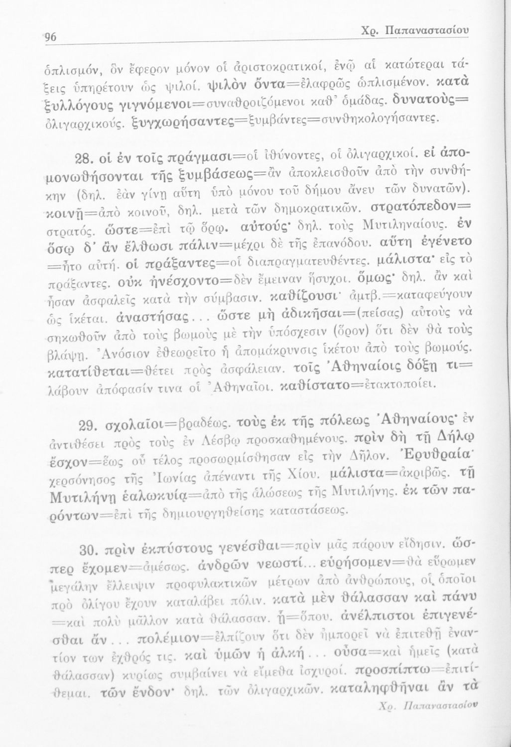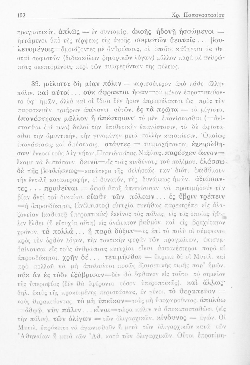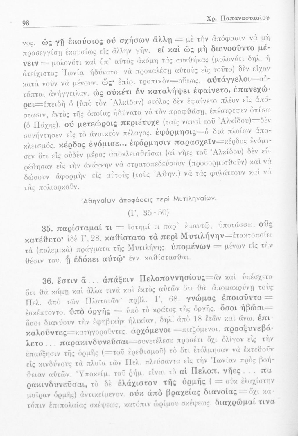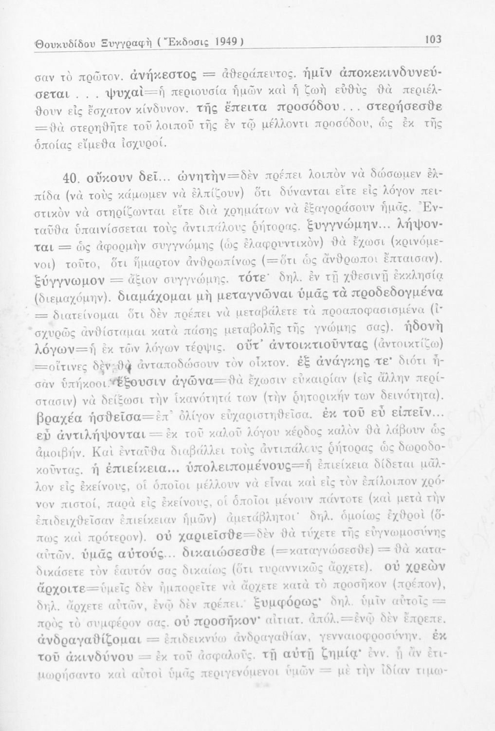 Σχολικό εγχειρίδιο Αρχαίων Ελληνικών Δ΄, Ε΄ και ΣΤ΄ Γυμνασίου που περιέχει εισαγωγή στη ζωή και το έργο του Θουκυδίδη, αποσπάσματα από τα Πλαταιϊκά, τα Λεσβιακά και τον Επιτάφιο του Περικλή και ερμηνευτικές σημειώσεις.