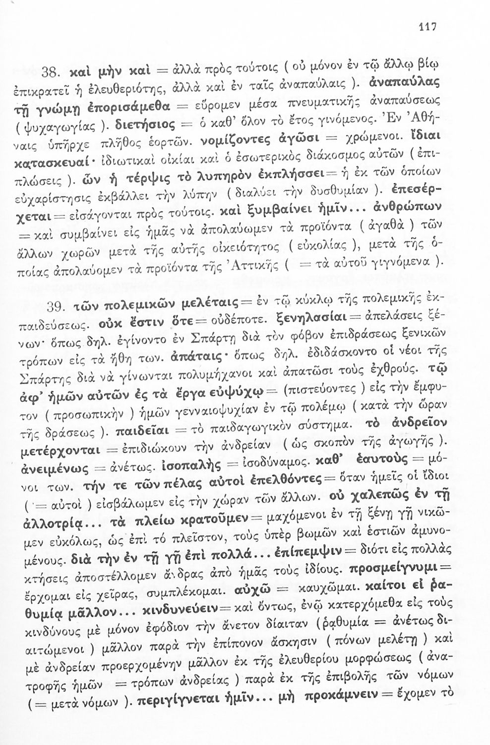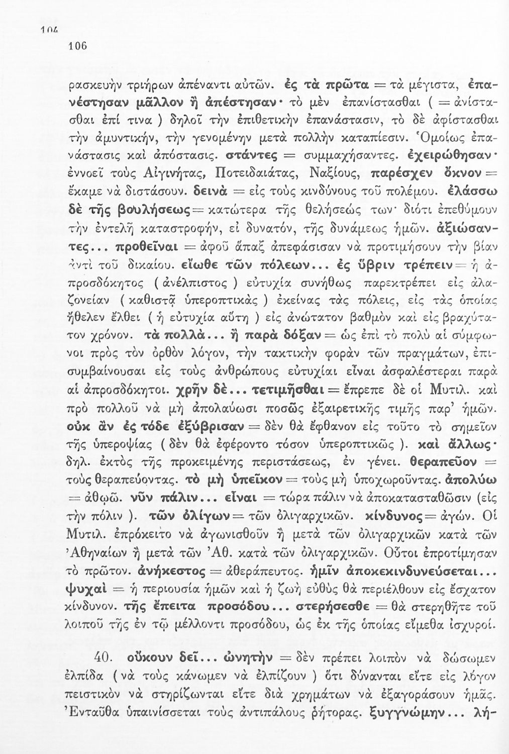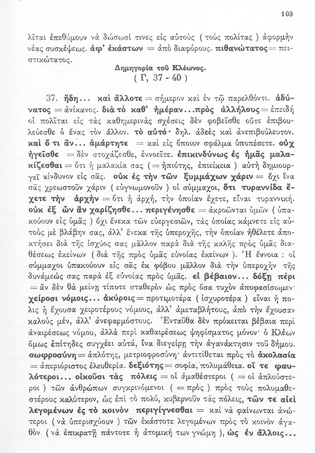 Σχολικό εγχειρίδιο Αρχαίων Ελληνικών Δ΄, Ε΄ και ΣΤ΄ Γυμνασίου που περιέχει εισαγωγή στη ζωή και το έργο του Θουκυδίδη, αποσπάσματα από τα Πλαταιϊκά, τα Λεσβιακά και τον Επιτάφιο του Περικλή και ερμηνευτικές σημειώσεις. Φέρει το σύμβολο της δικτατορίας.