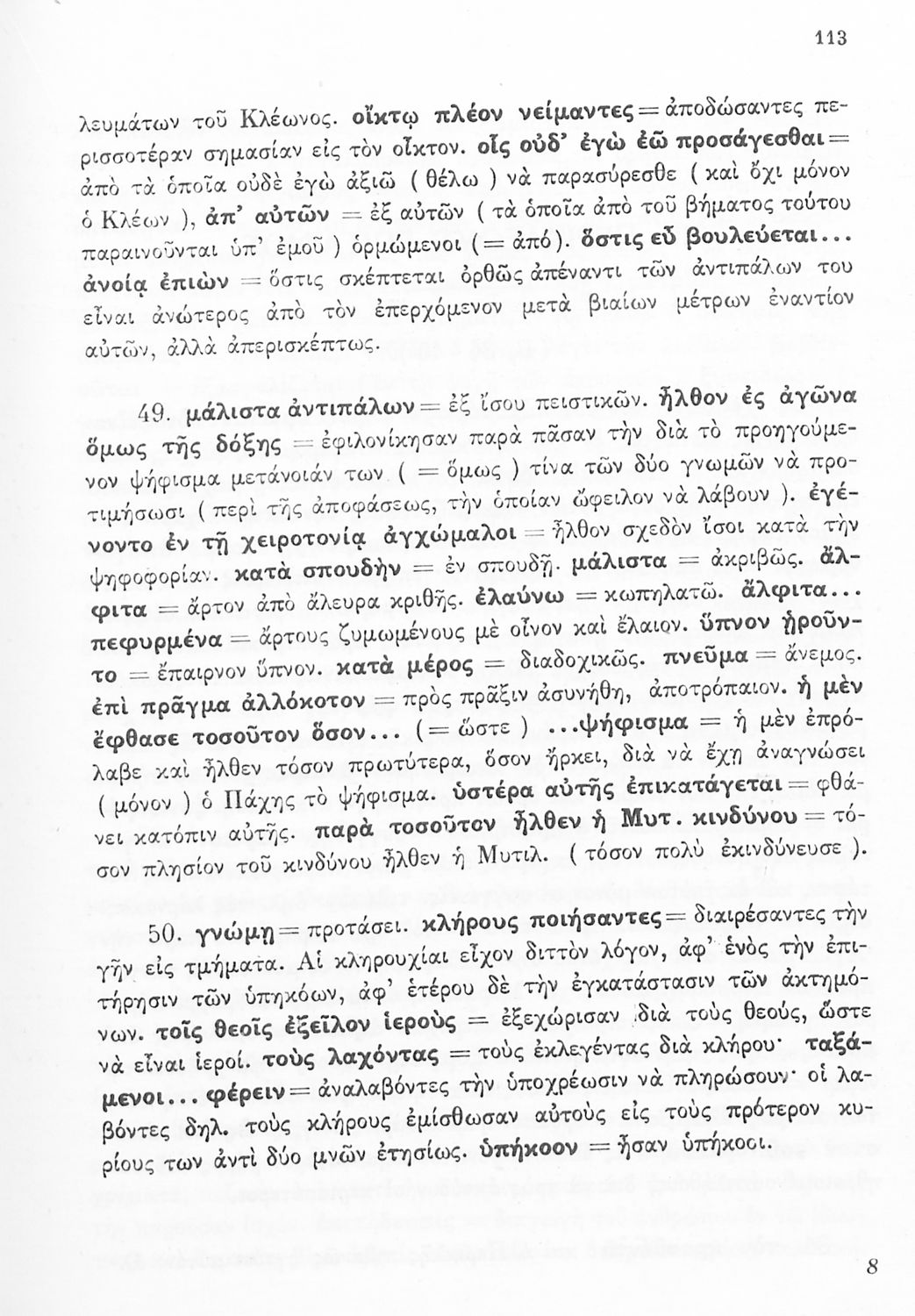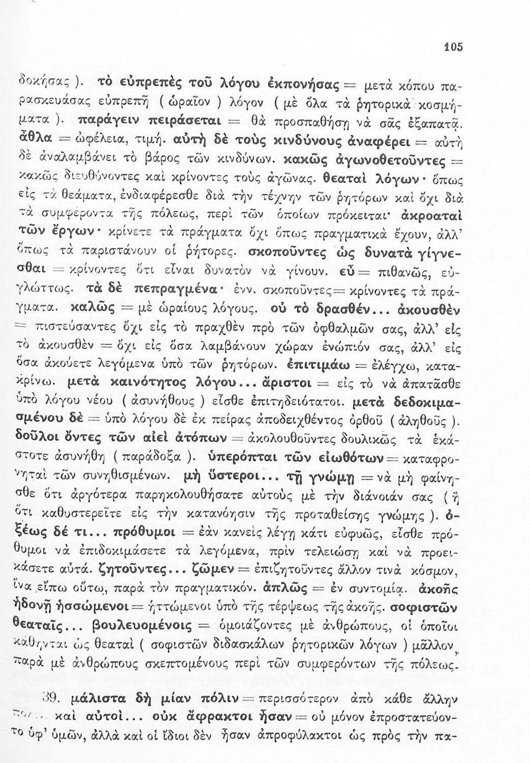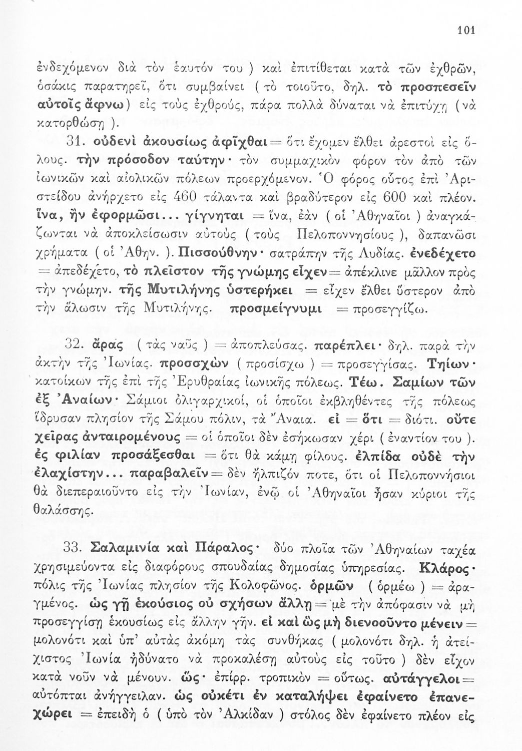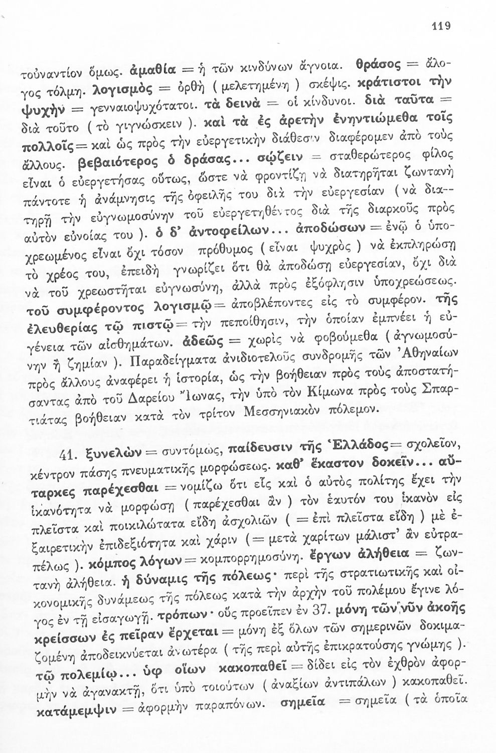 Σχολικό εγχειρίδιο Αρχαίων Ελληνικών Δ΄, Ε΄ και ΣΤ΄ Γυμνασίου που περιέχει εισαγωγή στη ζωή και το έργο του Θουκυδίδη, αποσπάσματα από τα Πλαταιϊκά, τα Λεσβιακά και τον Επιτάφιο του Περικλή και ερμηνευτικές σημειώσεις. Φέρει το σύμβολο της δικτατορίας.