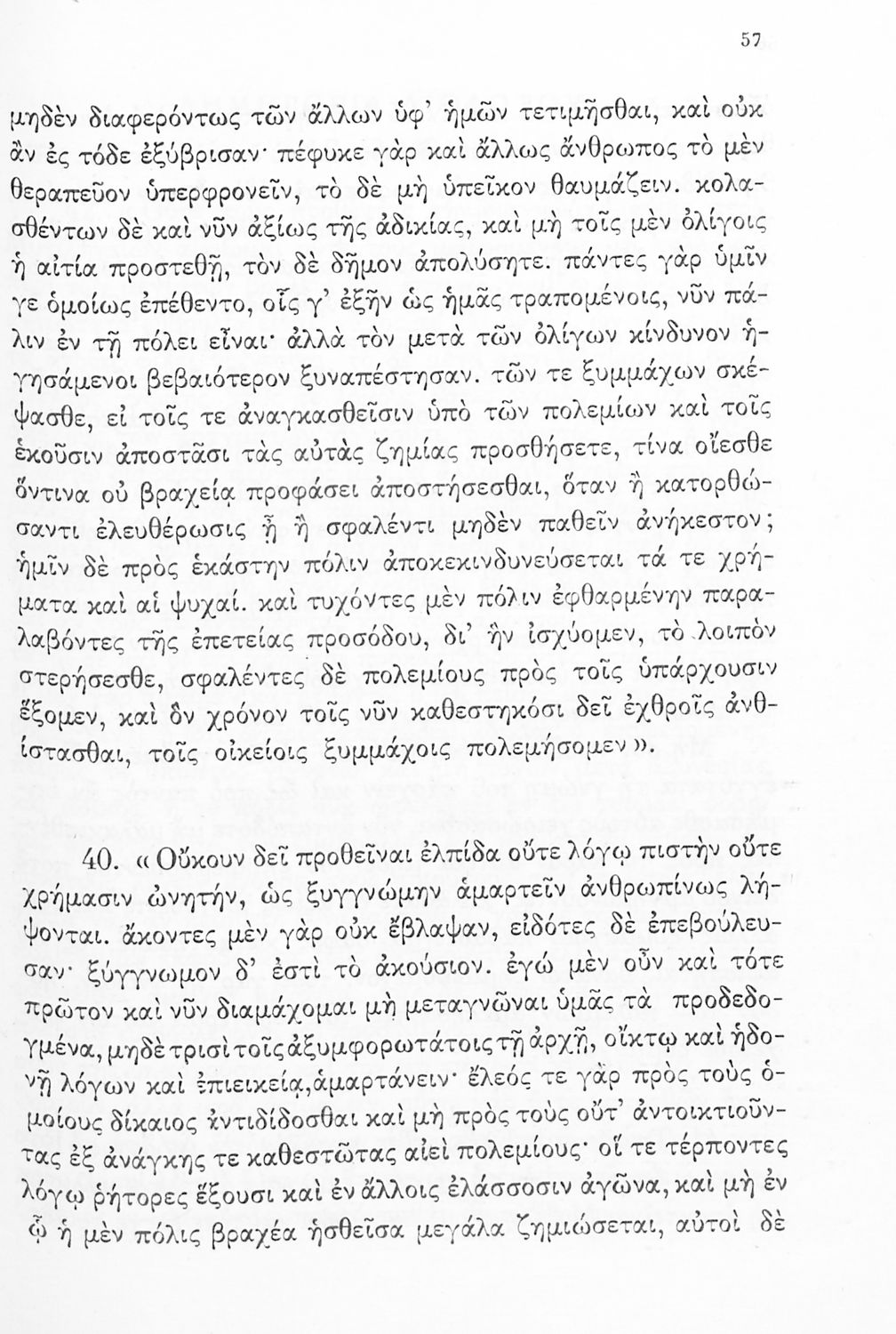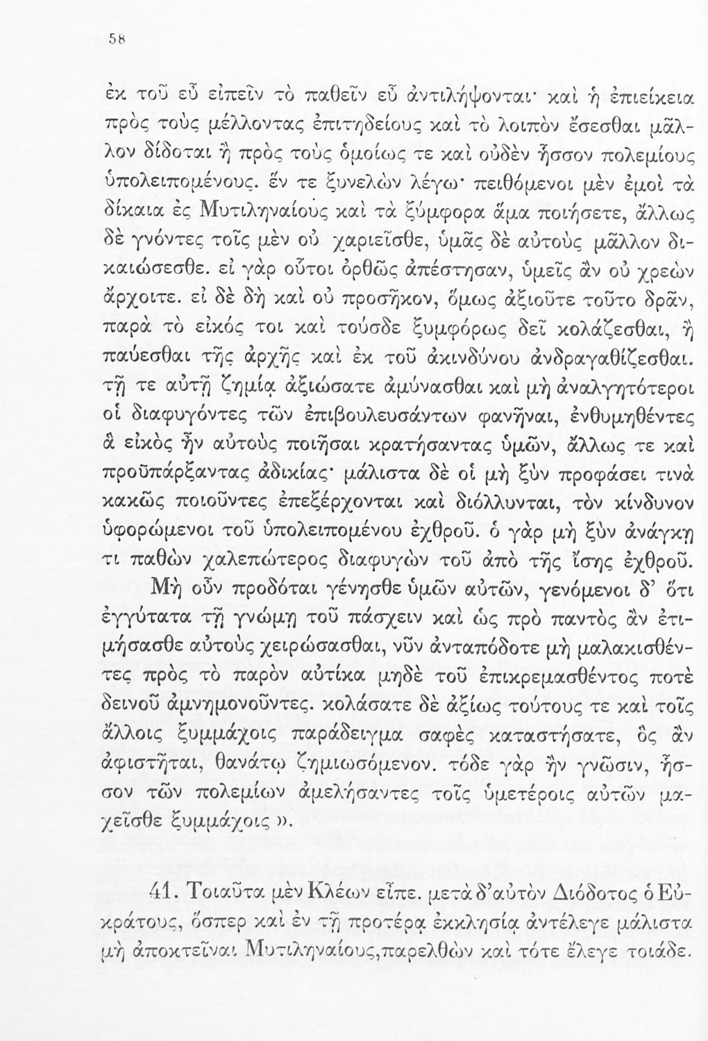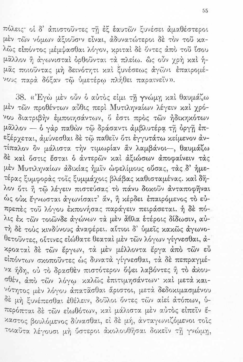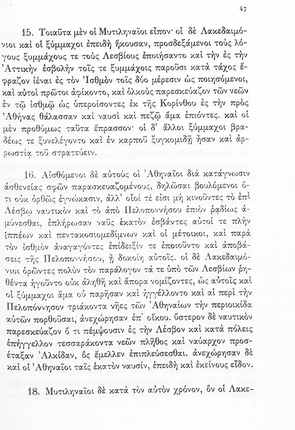 Σχολικό εγχειρίδιο Αρχαίων Ελληνικών Δ΄, Ε΄ και ΣΤ΄ Γυμνασίου που περιέχει εισαγωγή στη ζωή και το έργο του Θουκυδίδη, αποσπάσματα από τα Πλαταιϊκά, τα Λεσβιακά και τον Επιτάφιο του Περικλή και ερμηνευτικές σημειώσεις. Φέρει το σύμβολο της δικτατορίας.