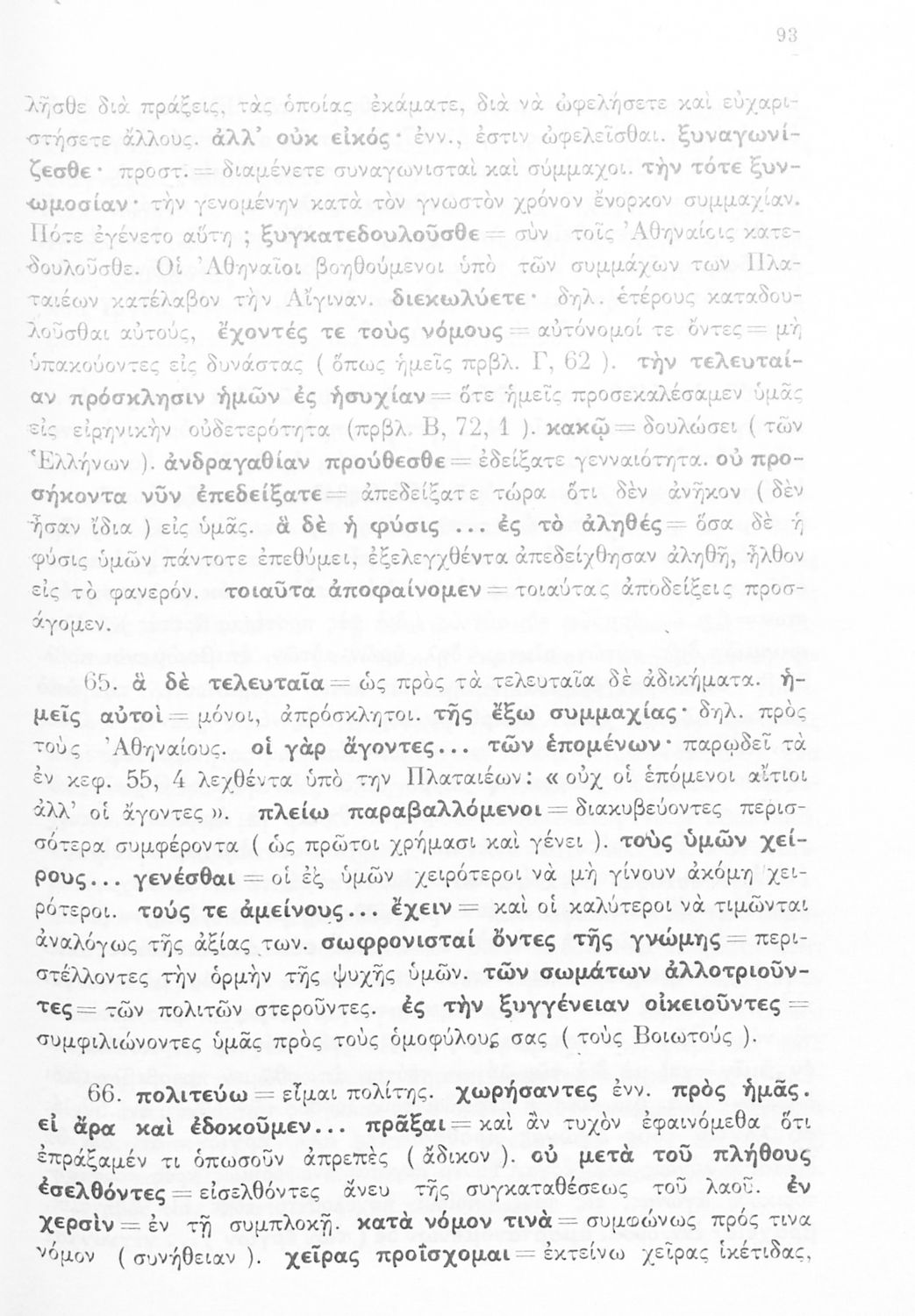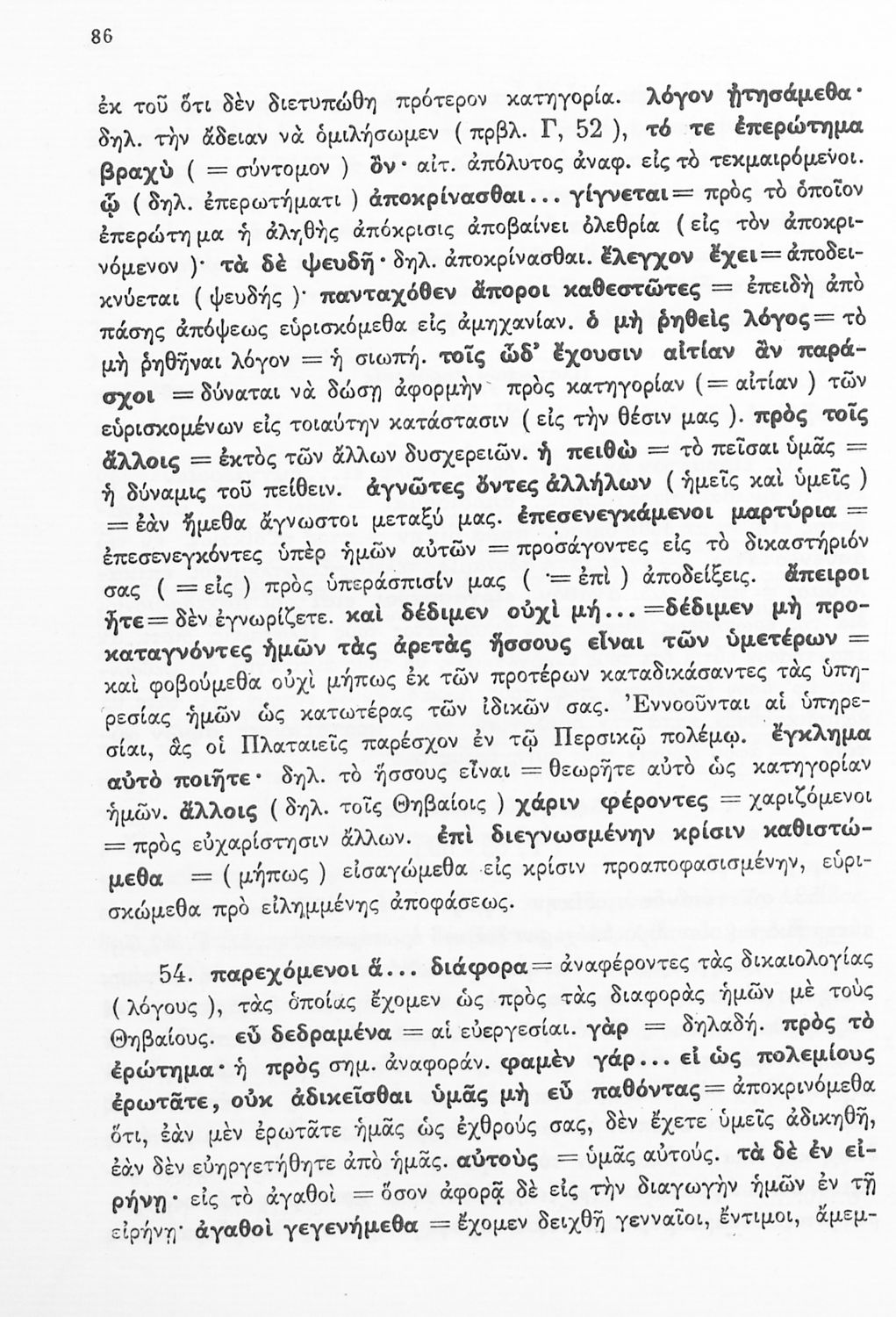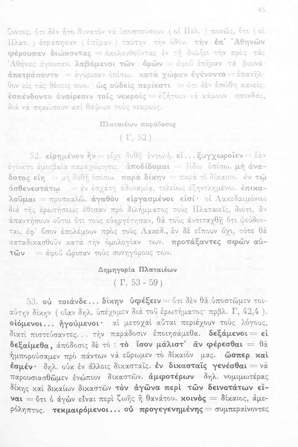 Μαθητικό βοήθημα Αρχαίων Ελληνικών ΣΤ΄ Γυμνασίου που περιλαμβάνει αποσπάσματα από τα Πλαταϊκά του Θουκυδίδη, μετάφραση, γραμματικά, συντακτικά και ερμηνευτικά σχόλια.