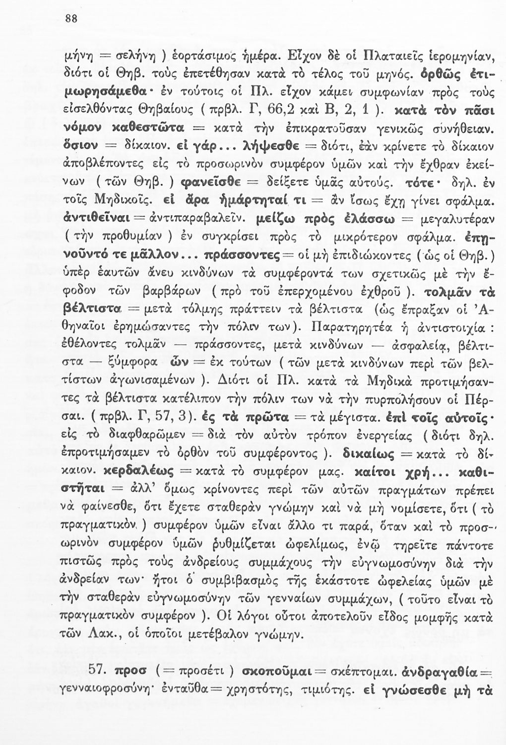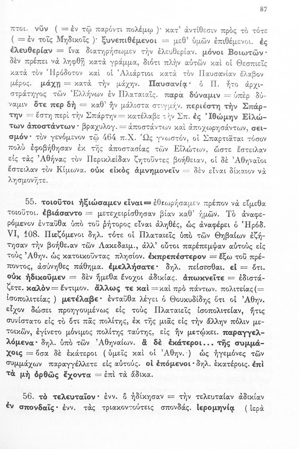 Σχολικό εγχειρίδιο Αρχαίων Ελληνικών για τις Δ΄, Ε΄ και ΣΤ΄ Γυμνασίου παλαιού τύπου που περιλαμβάνει σύντομο βιογραφικό σημείωμα του Θουκυδίδη, περιγραφή του ιστορικού πλαισίου, αποσπάσματα από τα Πλαταϊκά, τα