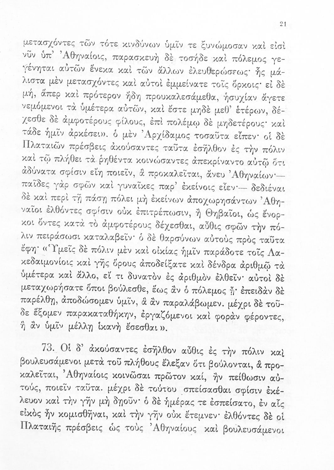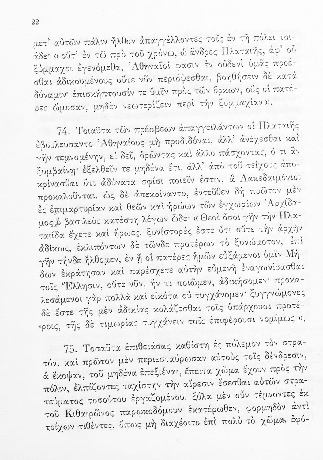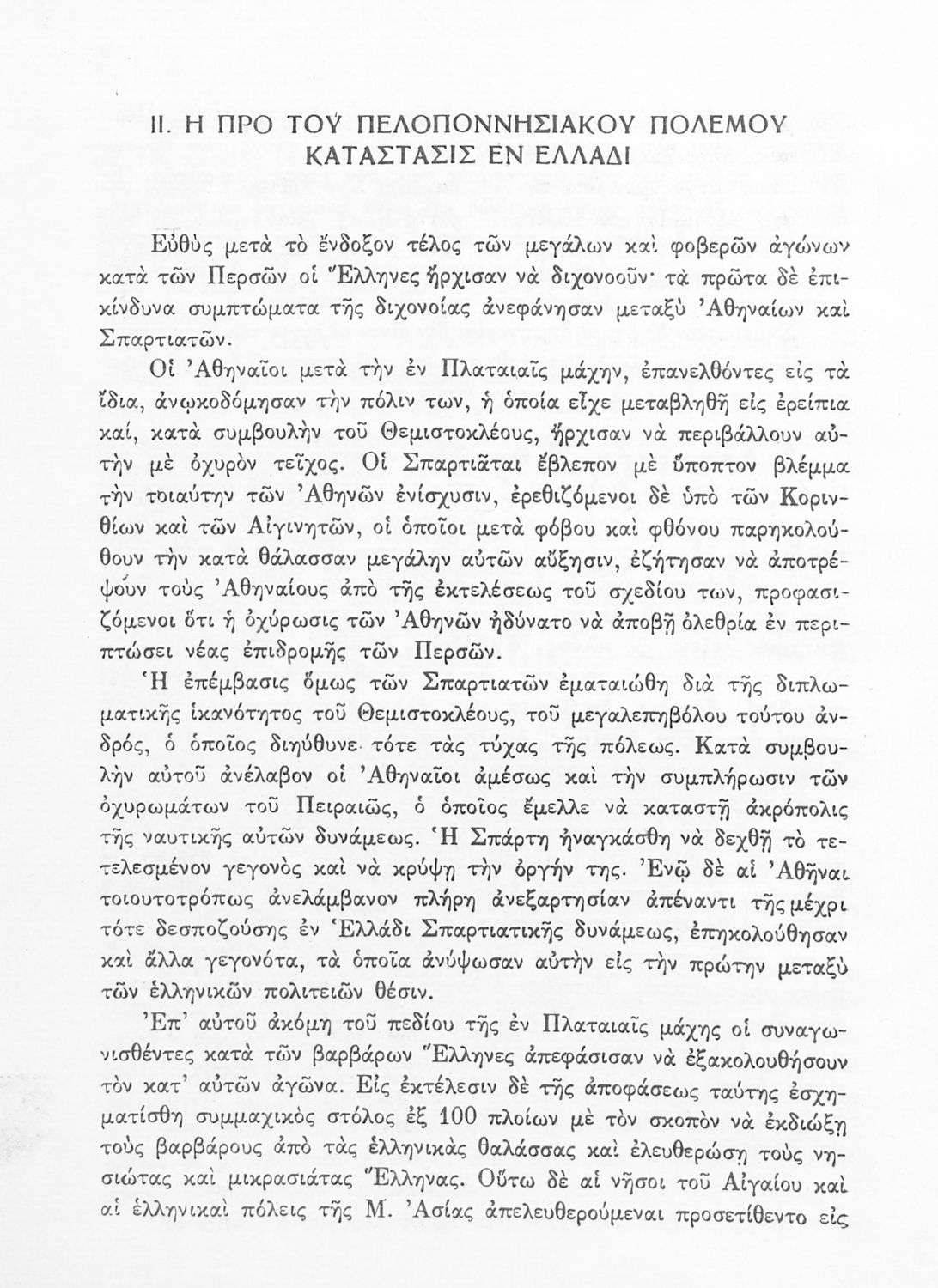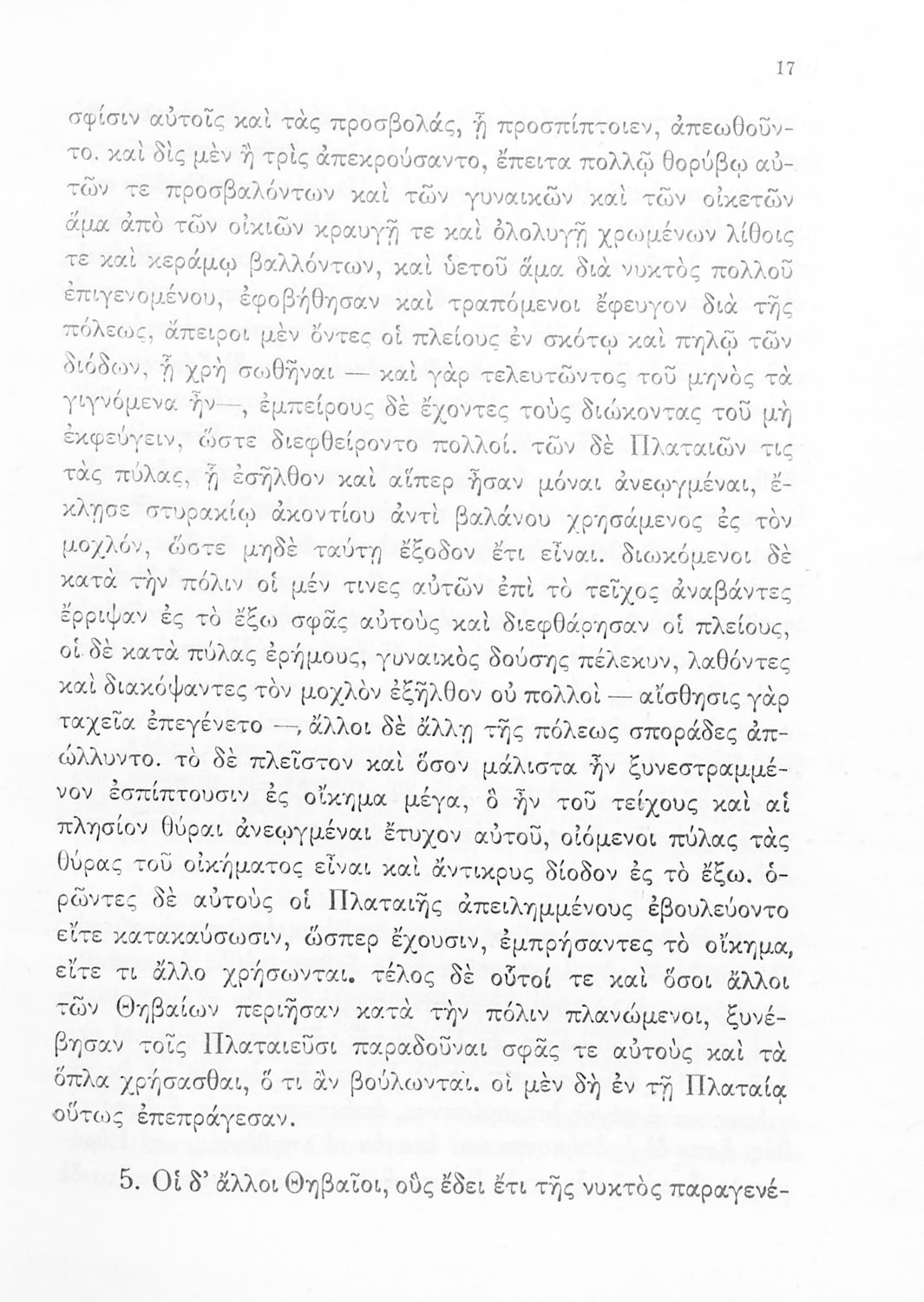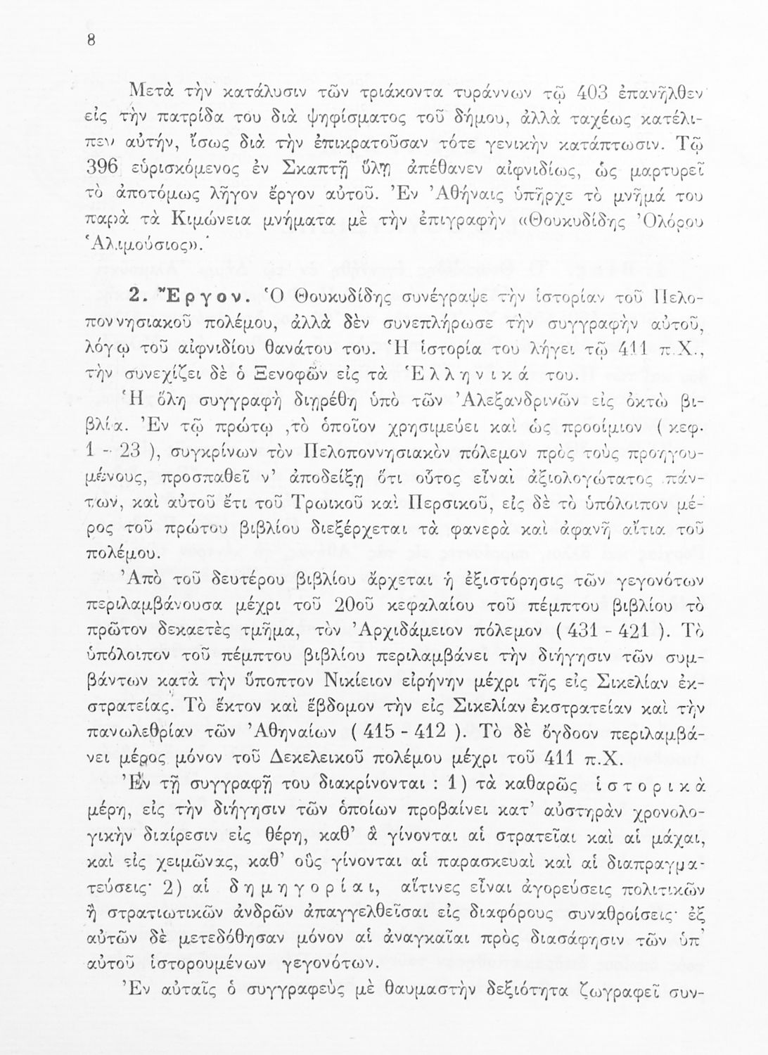 Σχολικό εγχειρίδιο Αρχαίων Ελληνικών Δ΄, Ε΄ και ΣΤ΄ Γυμνασίου που περιέχει εισαγωγή στη ζωή και το έργο του Θουκυδίδη, αποσπάσματα από τα Πλαταιϊκά, τα Λεσβιακά και τον Επιτάφιο του Περικλή και ερμηνευτικές σημειώσεις. Φέρει το σύμβολο της δικτατορίας.