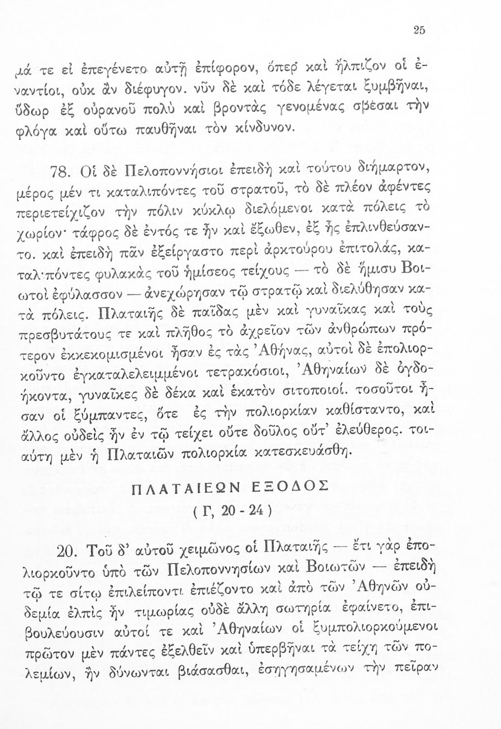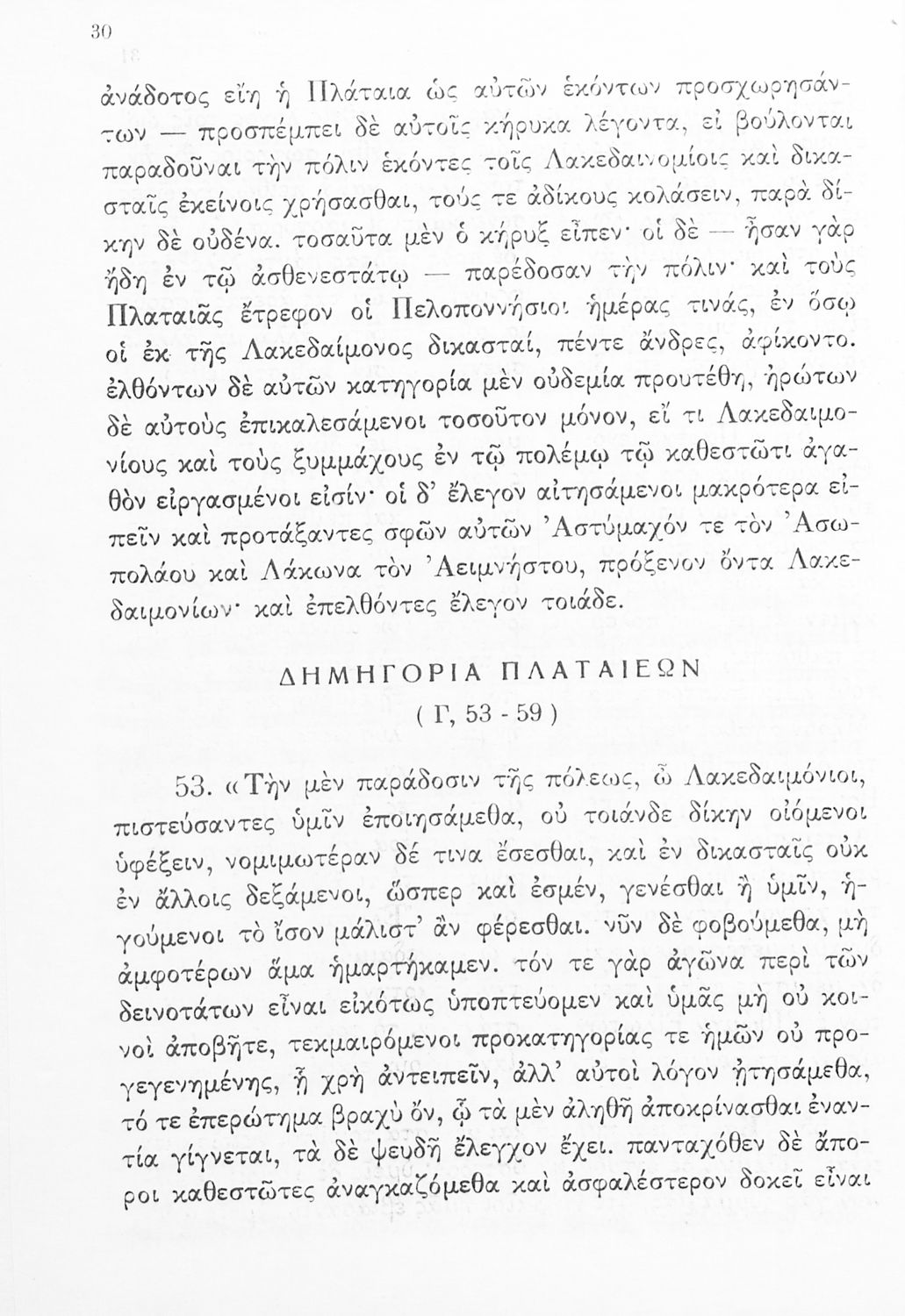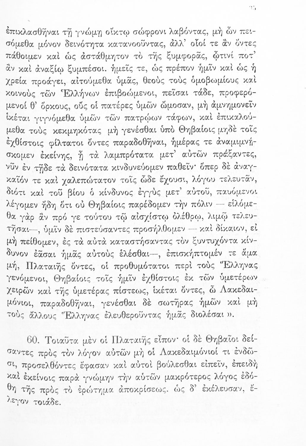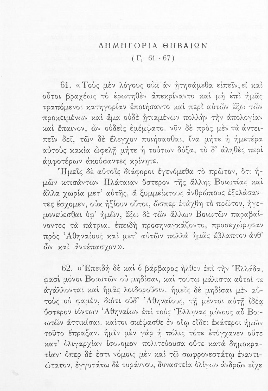 Σχολικό εγχειρίδιο Αρχαίων Ελληνικών Δ΄, Ε΄ και ΣΤ΄ Γυμνασίου που περιέχει εισαγωγή στη ζωή και το έργο του Θουκυδίδη, αποσπάσματα από τα Πλαταιϊκά, τα Λεσβιακά και τον Επιτάφιο του Περικλή και ερμηνευτικές σημειώσεις.