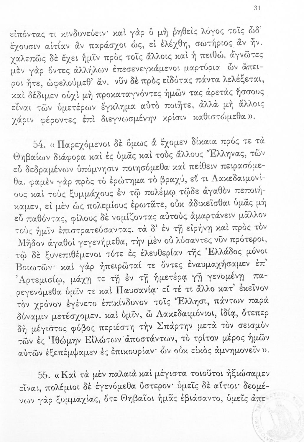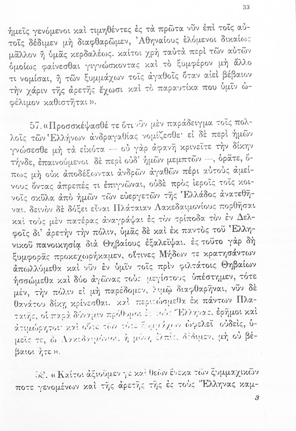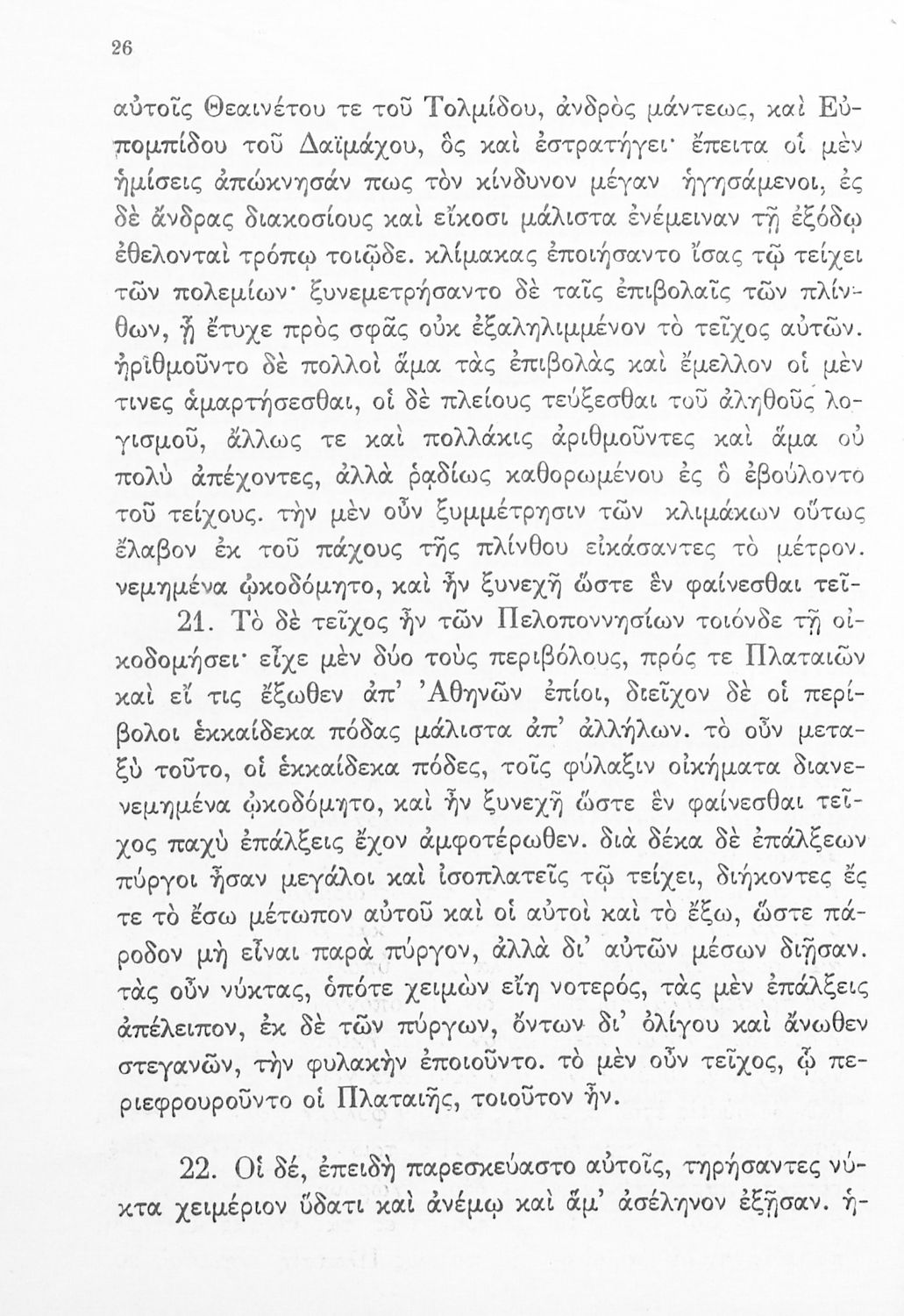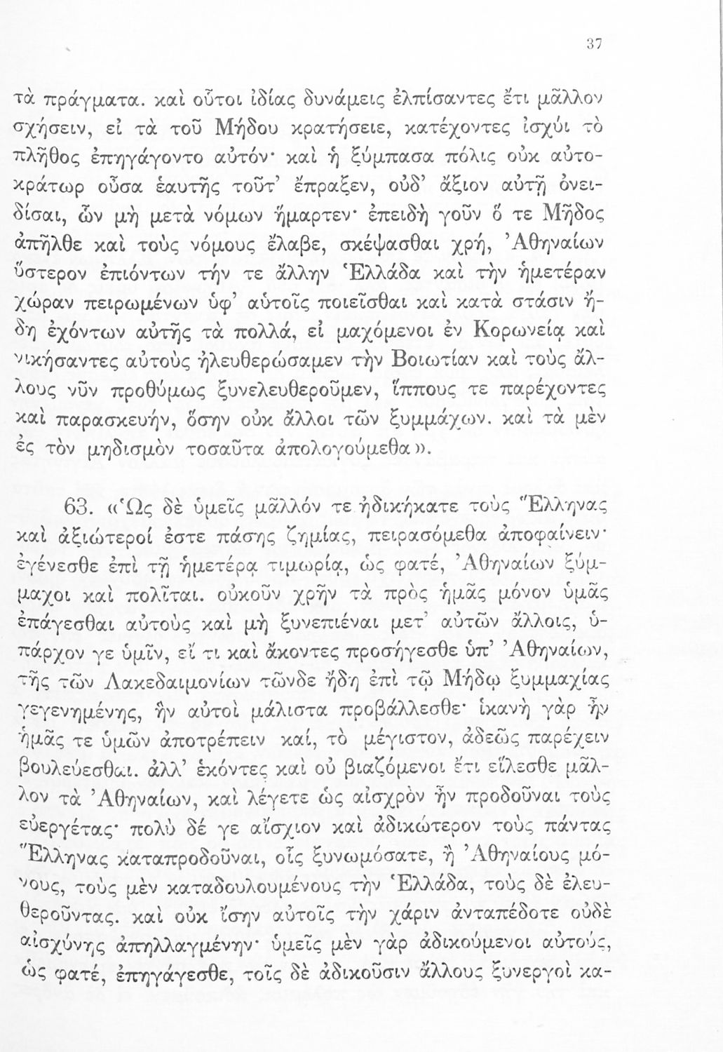 Σχολικό εγχειρίδιο Αρχαίων Ελληνικών Δ΄, Ε΄ και ΣΤ΄ Γυμνασίου που περιέχει εισαγωγή στη ζωή και το έργο του Θουκυδίδη, αποσπάσματα από τα Πλαταιϊκά, τα Λεσβιακά και τον Επιτάφιο του Περικλή και ερμηνευτικές σημειώσεις.