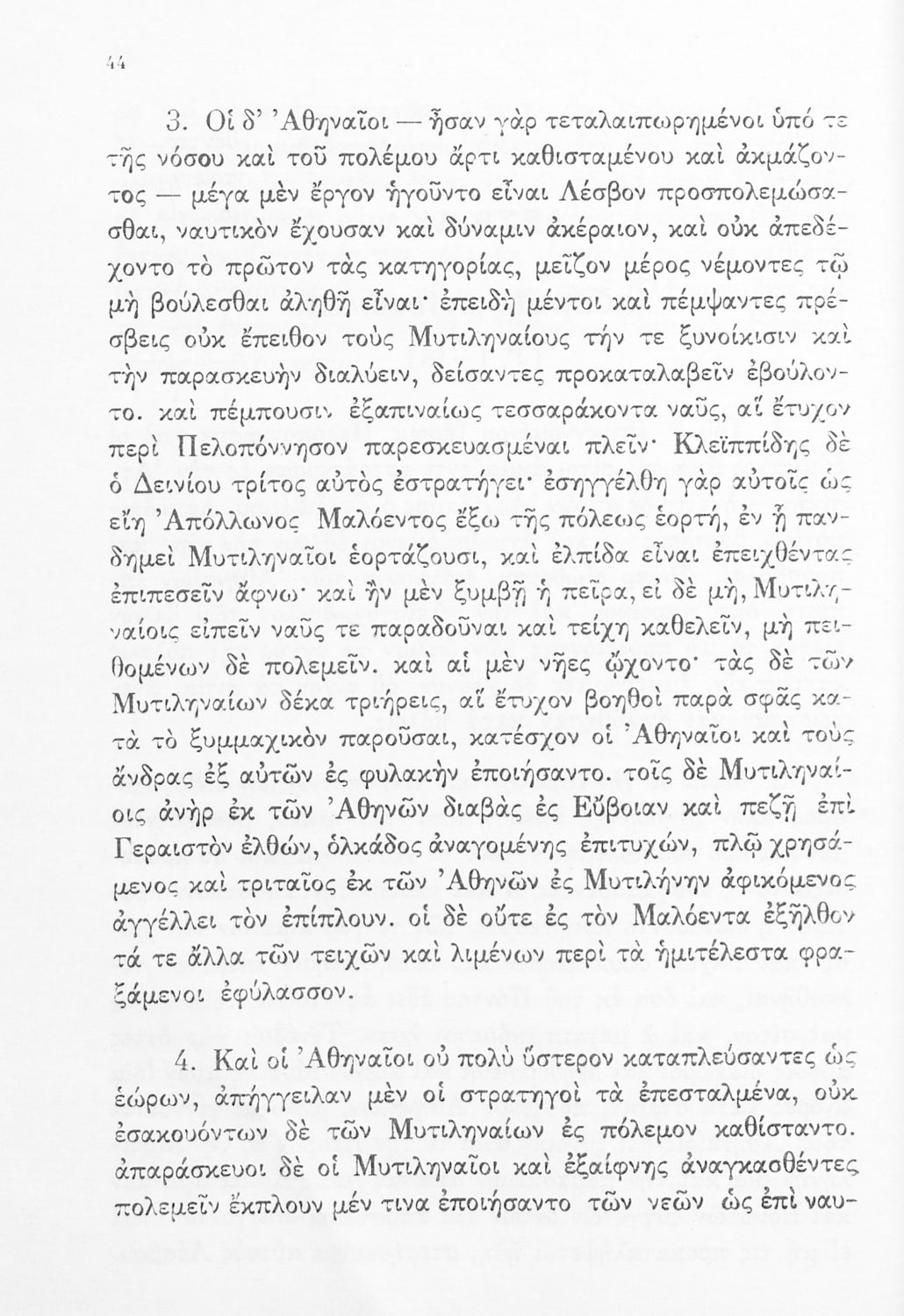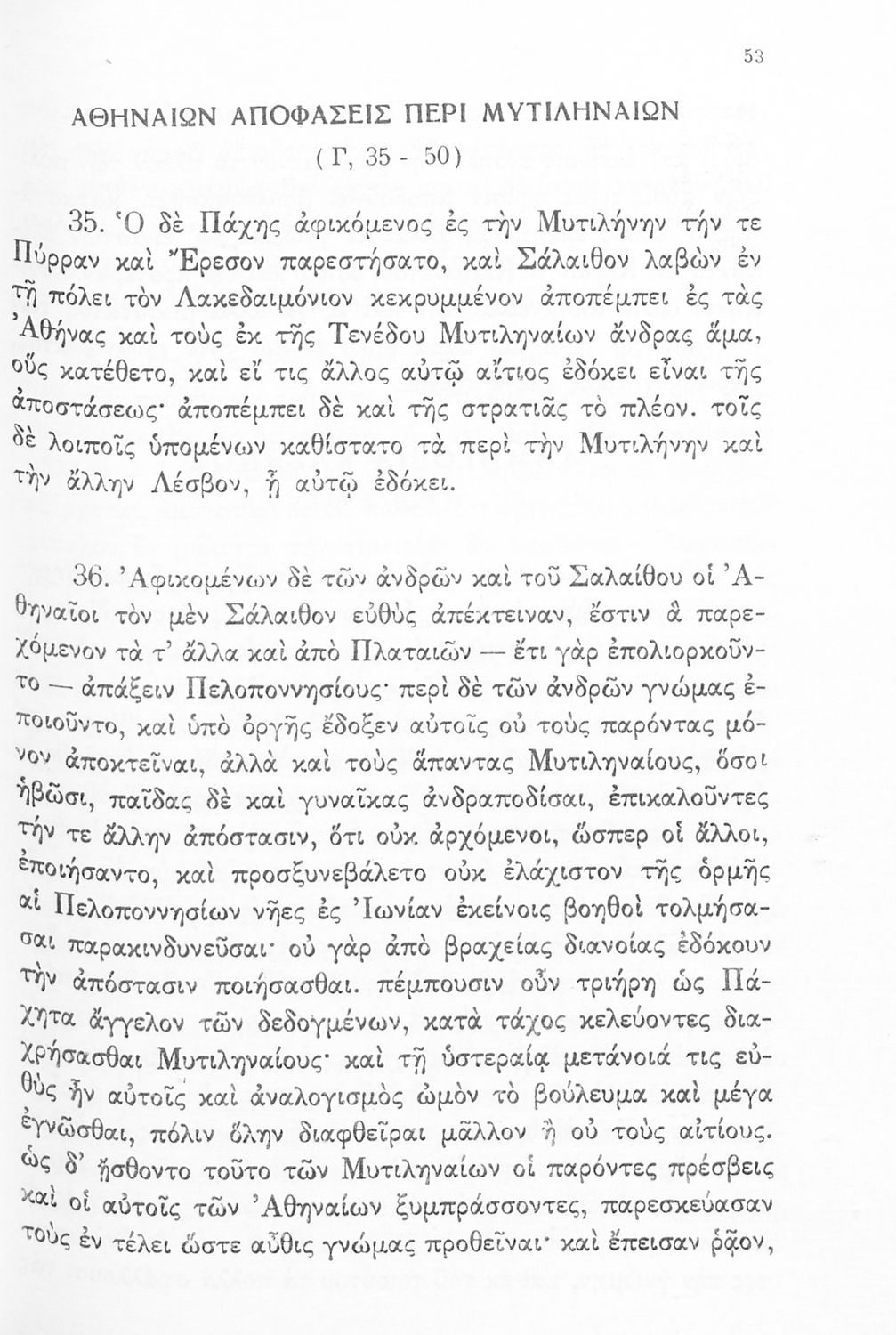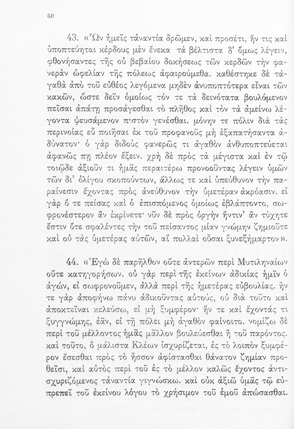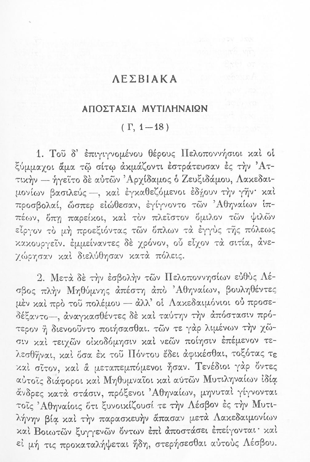 Σχολικό εγχειρίδιο Αρχαίων Ελληνικών Δ΄, Ε΄ και ΣΤ΄ Γυμνασίου που περιέχει εισαγωγή στη ζωή και το έργο του Θουκυδίδη, αποσπάσματα από τα Πλαταιϊκά, τα Λεσβιακά και τον Επιτάφιο του Περικλή και ερμηνευτικές σημειώσεις.