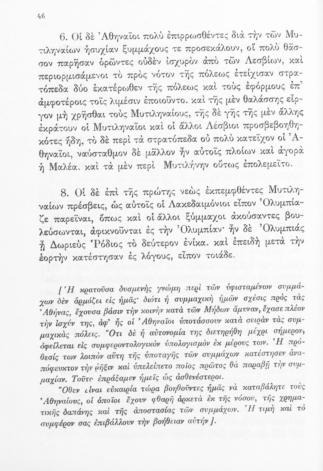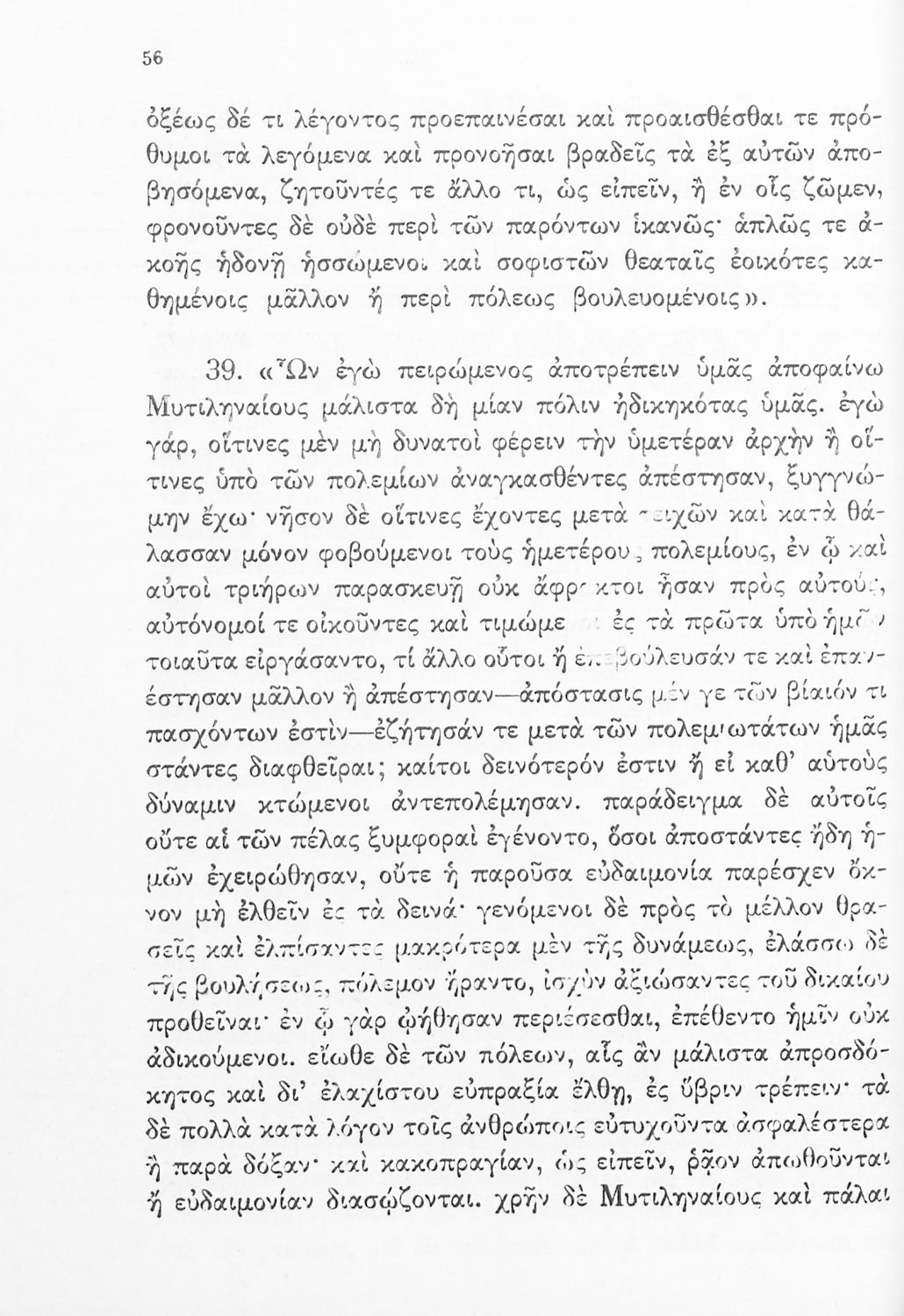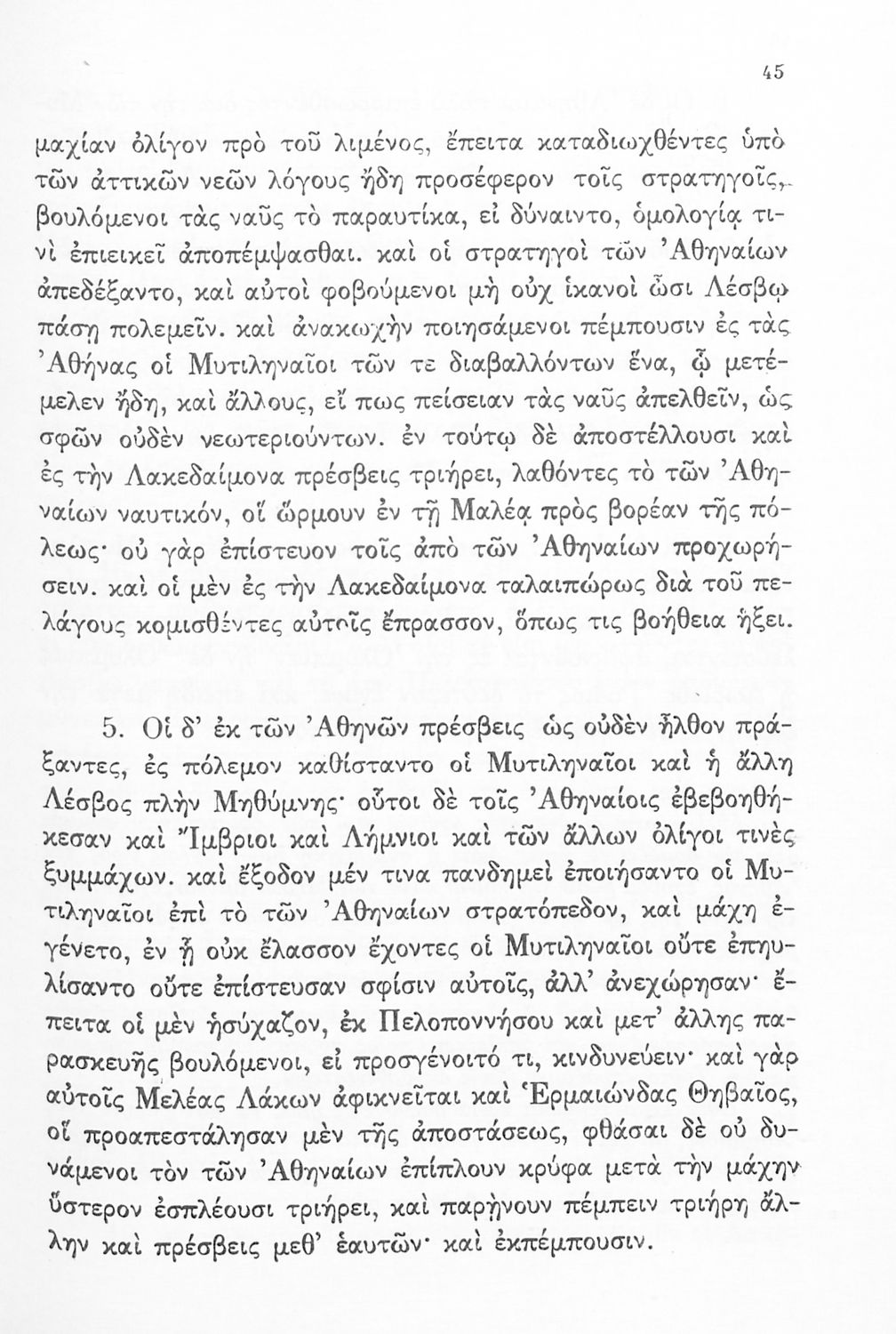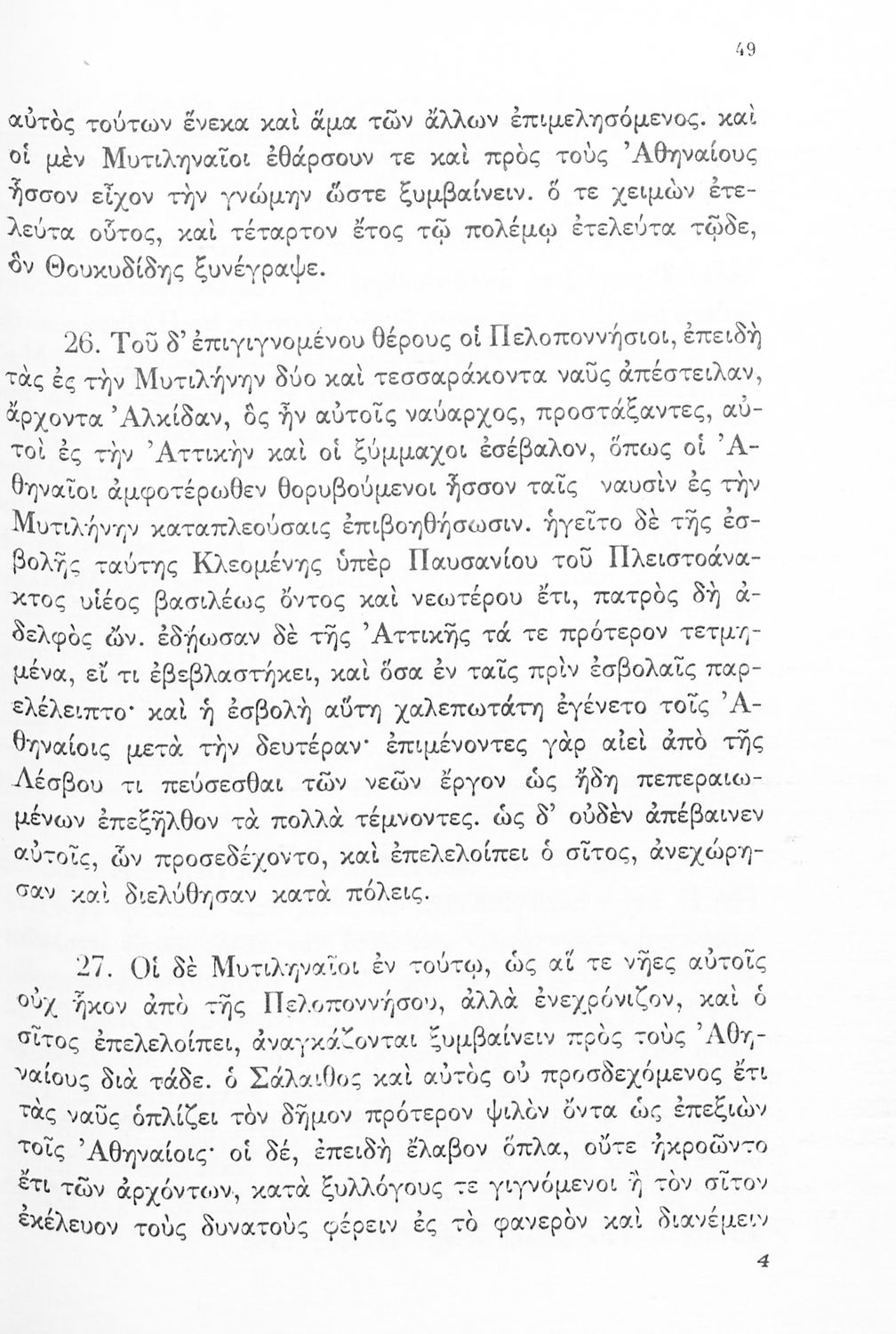 Σχολικό εγχειρίδιο Αρχαίων Ελληνικών Δ΄, Ε΄ και ΣΤ΄ Γυμνασίου που περιέχει εισαγωγή στη ζωή και το έργο του Θουκυδίδη, αποσπάσματα από τα Πλαταιϊκά, τα Λεσβιακά και τον Επιτάφιο του Περικλή και ερμηνευτικές σημειώσεις.