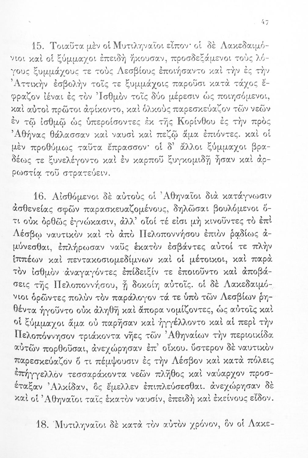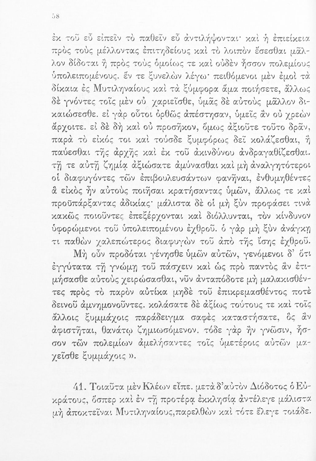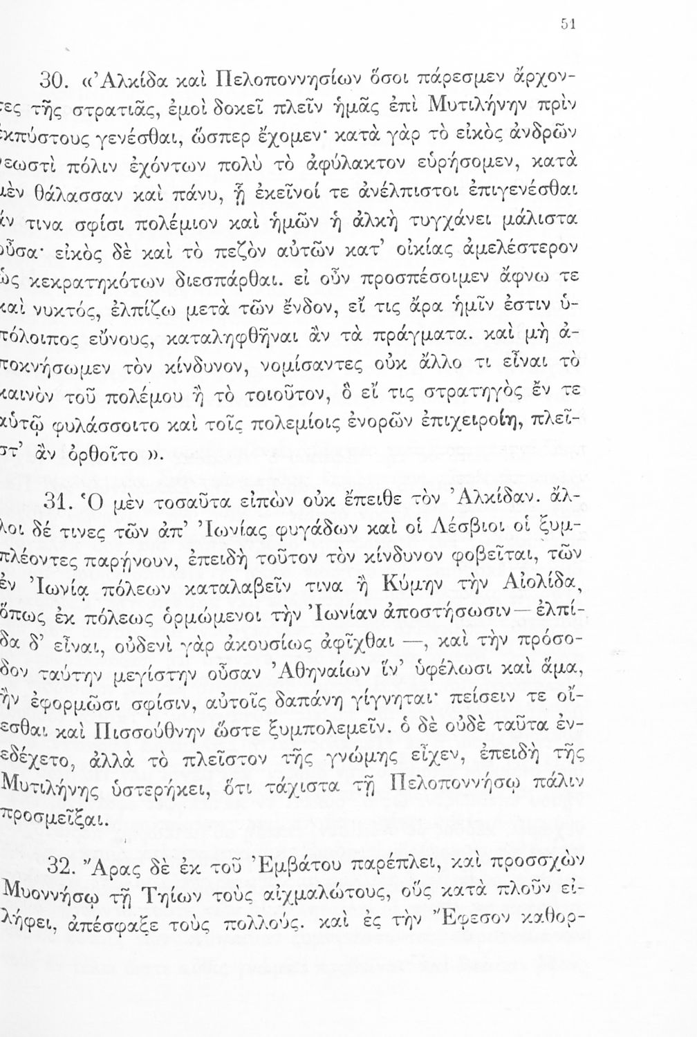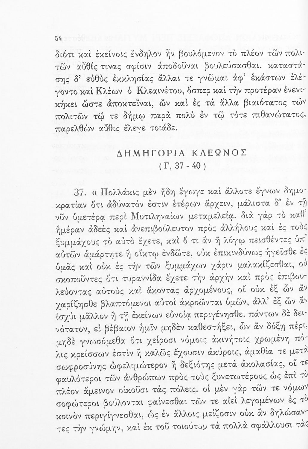 Σχολικό εγχειρίδιο Αρχαίων Ελληνικών Δ΄, Ε΄ και ΣΤ΄ Γυμνασίου που περιέχει εισαγωγή στη ζωή και το έργο του Θουκυδίδη, αποσπάσματα από τα Πλαταιϊκά, τα Λεσβιακά και τον Επιτάφιο του Περικλή και ερμηνευτικές σημειώσεις.