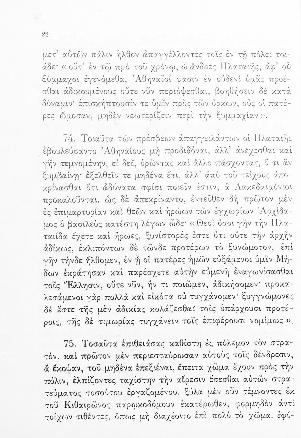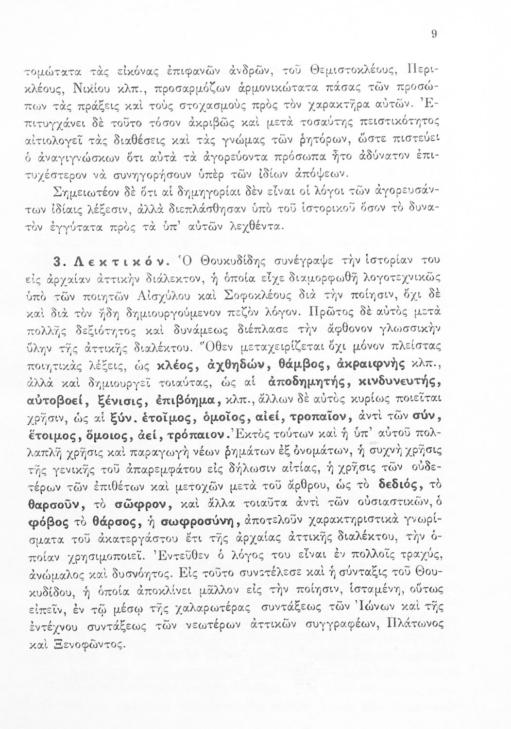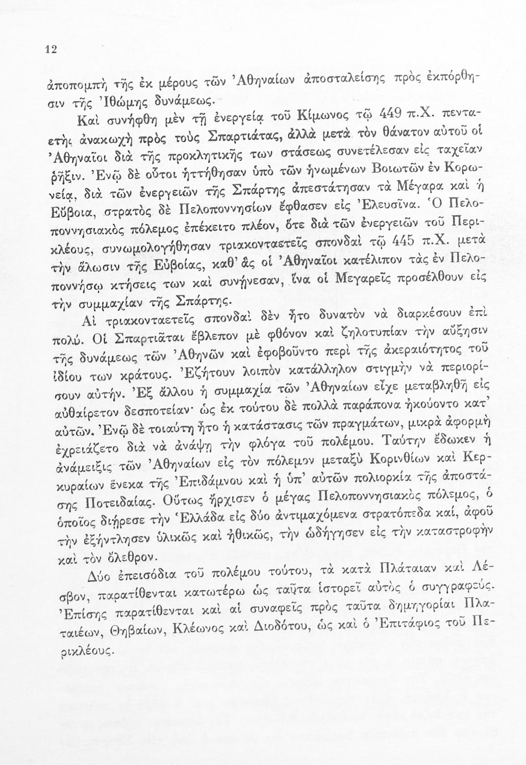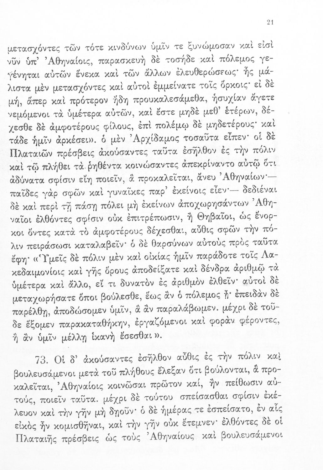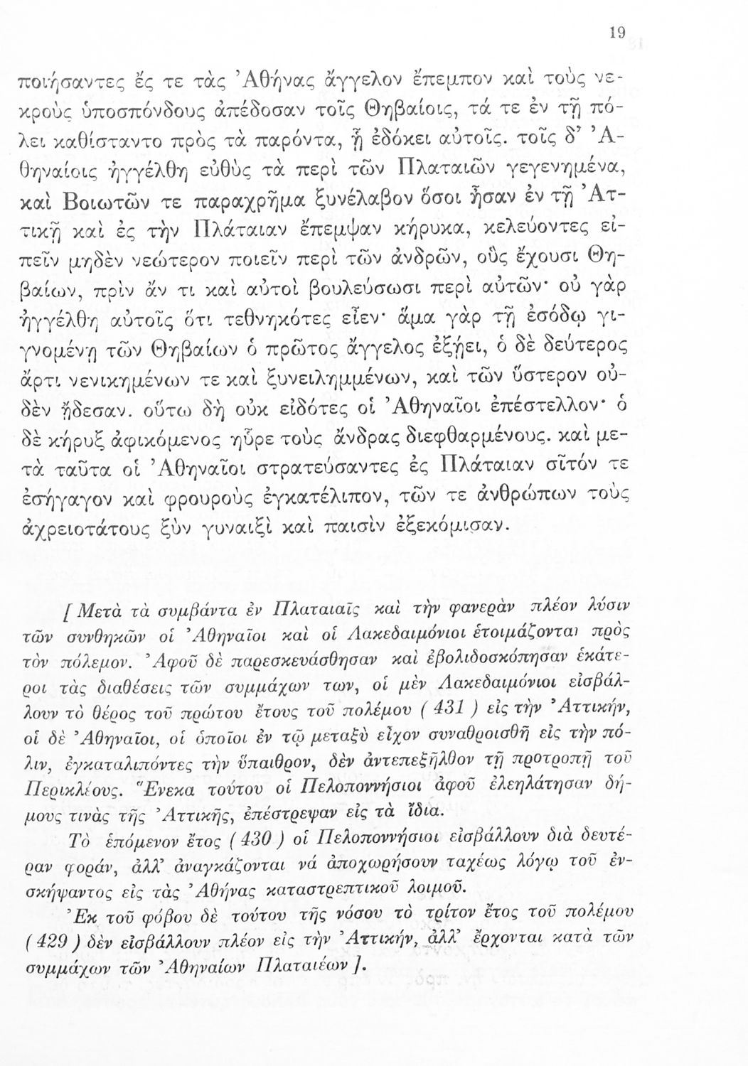 Σχολικό εγχειρίδιο Αρχαίων Ελληνικών Δ΄, Ε΄ και ΣΤ΄ Γυμνασίου που περιέχει εισαγωγή στη ζωή και το έργο του Θουκυδίδη, αποσπάσματα από τα Πλαταιϊκά, τα Λεσβιακά και τον Επιτάφιο του Περικλή και ερμηνευτικές σημειώσεις.