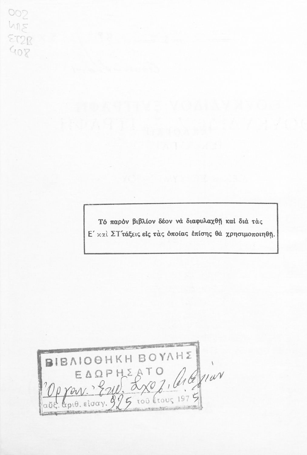Εντοπισμός πρωτοτύπου: Βιβλιοθήκη της Βουλής των Ελλήνων Κωδικός βιβλιοθήκης: 20556510 |