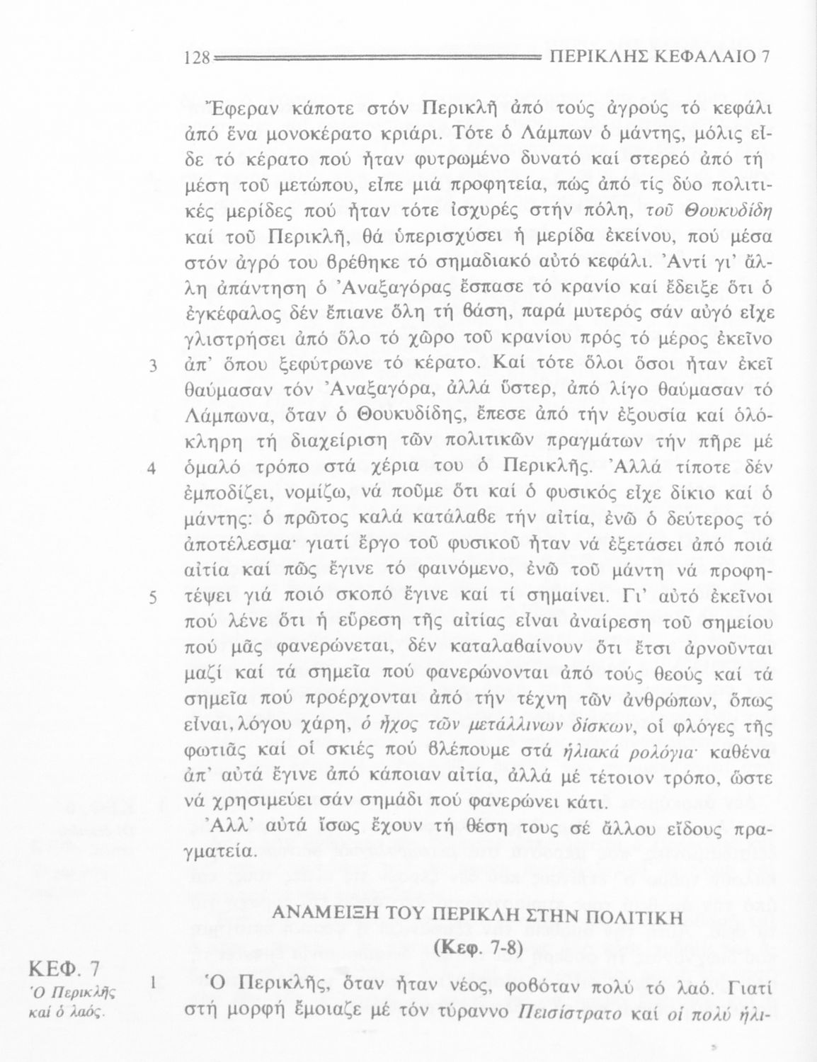Σχολικό εγχειρίδιο Αρχαίων Ελληνικών της Β' Γυμνασίου. Το βιβλίο περιλαμβάνει τέσσερις από τους “Βίους” του Πλούταρχου: του Σόλωνα, του Θεμιστοκλή, του Περικλή και του Φωκίωνα