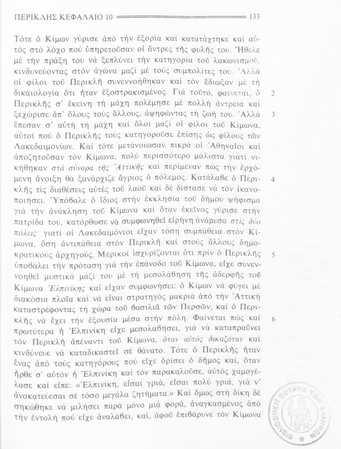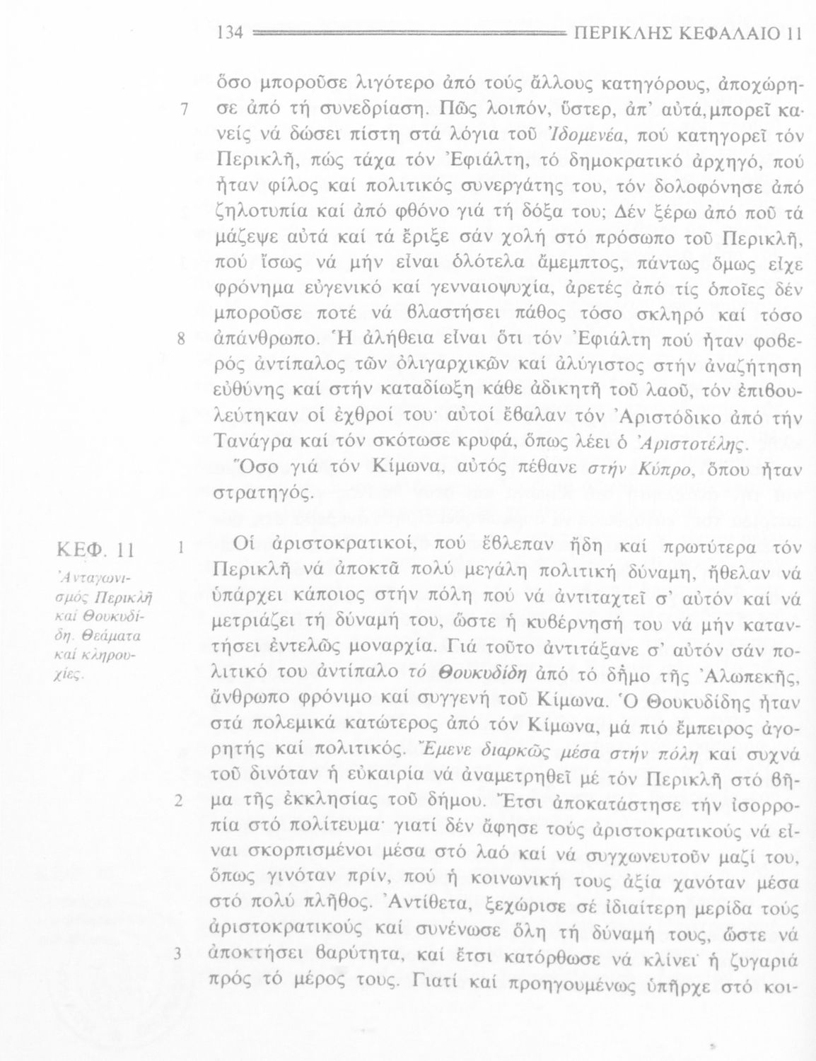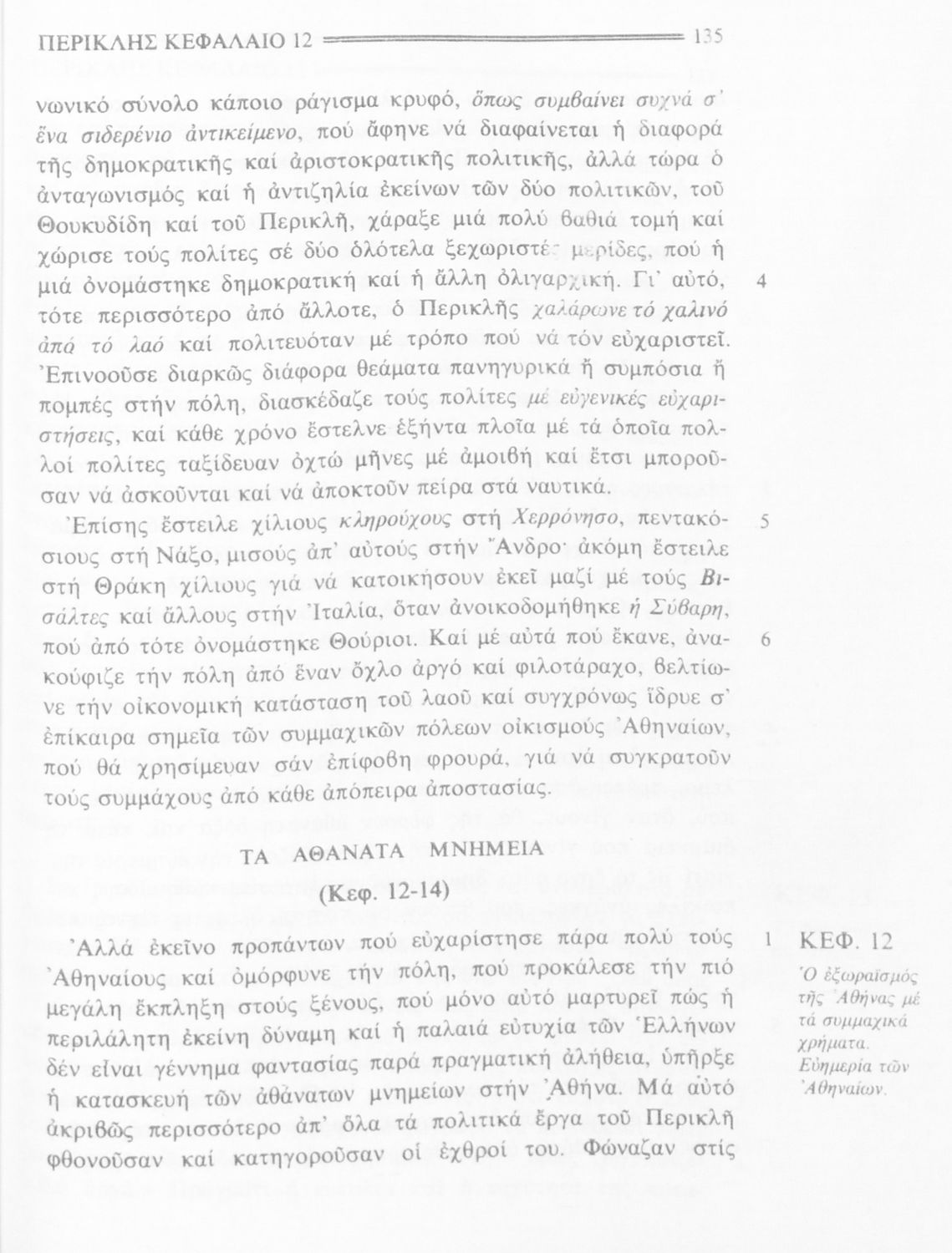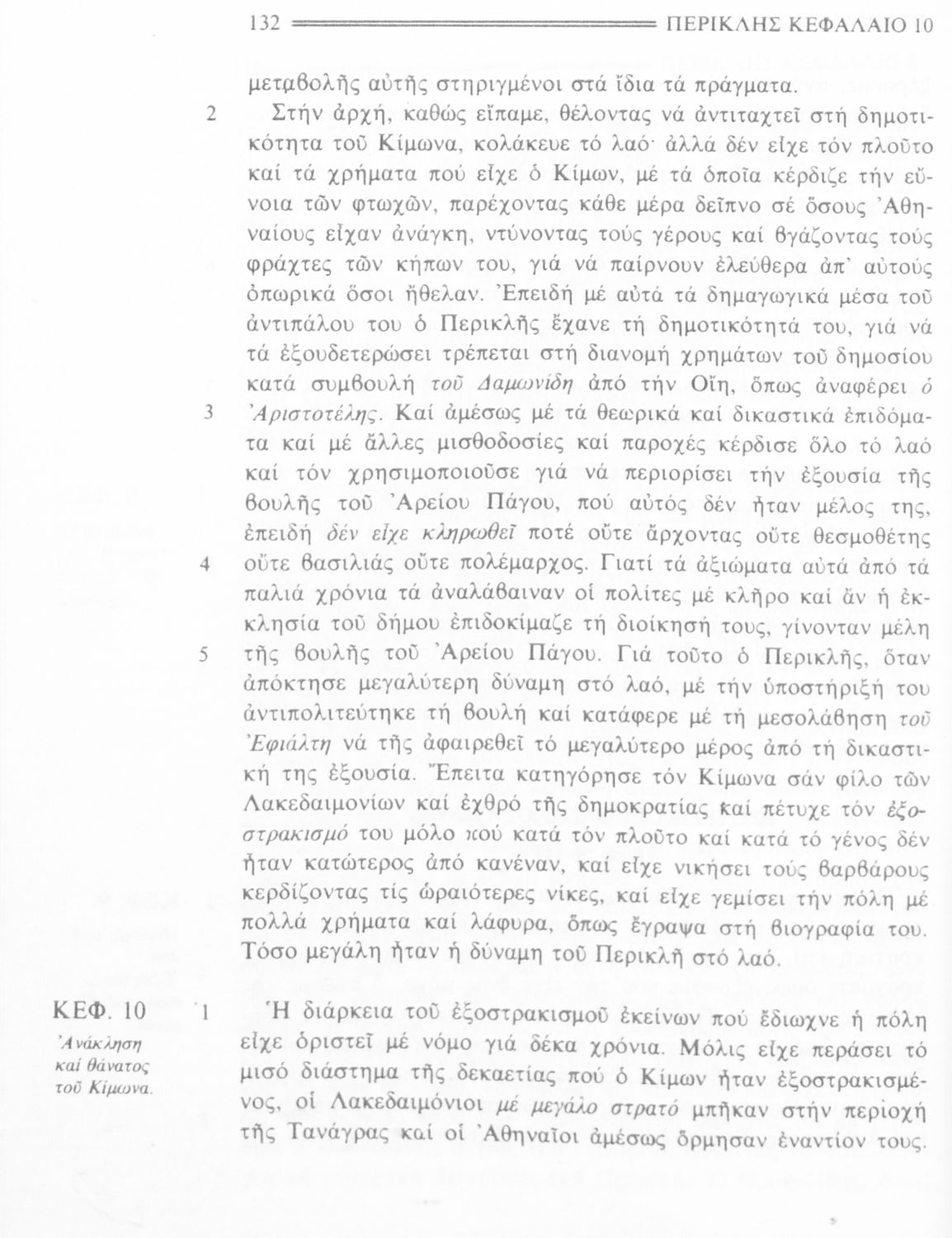 Σχολικό εγχειρίδιο Αρχαίων Ελληνικών Β΄ Γυμνασίου που περιέχει μετάφραση του έργο του Πλούταρχου Θεμιστοκλής και Περικλής, εισαγωγή και ερμηνευτικά σχόλια.