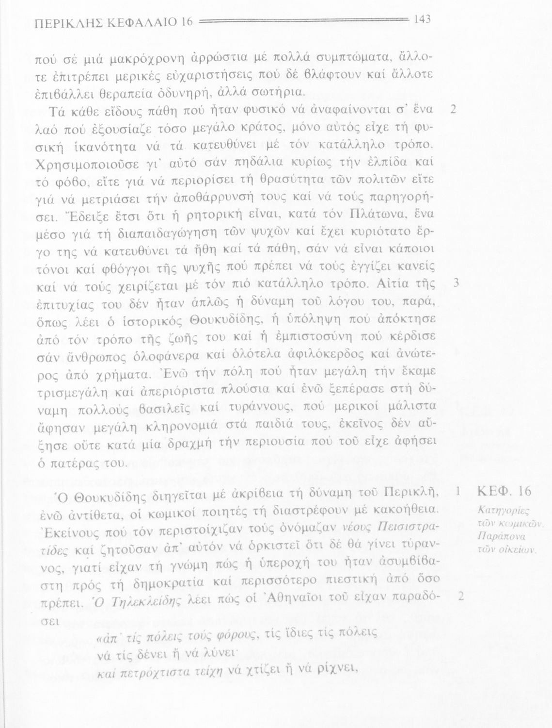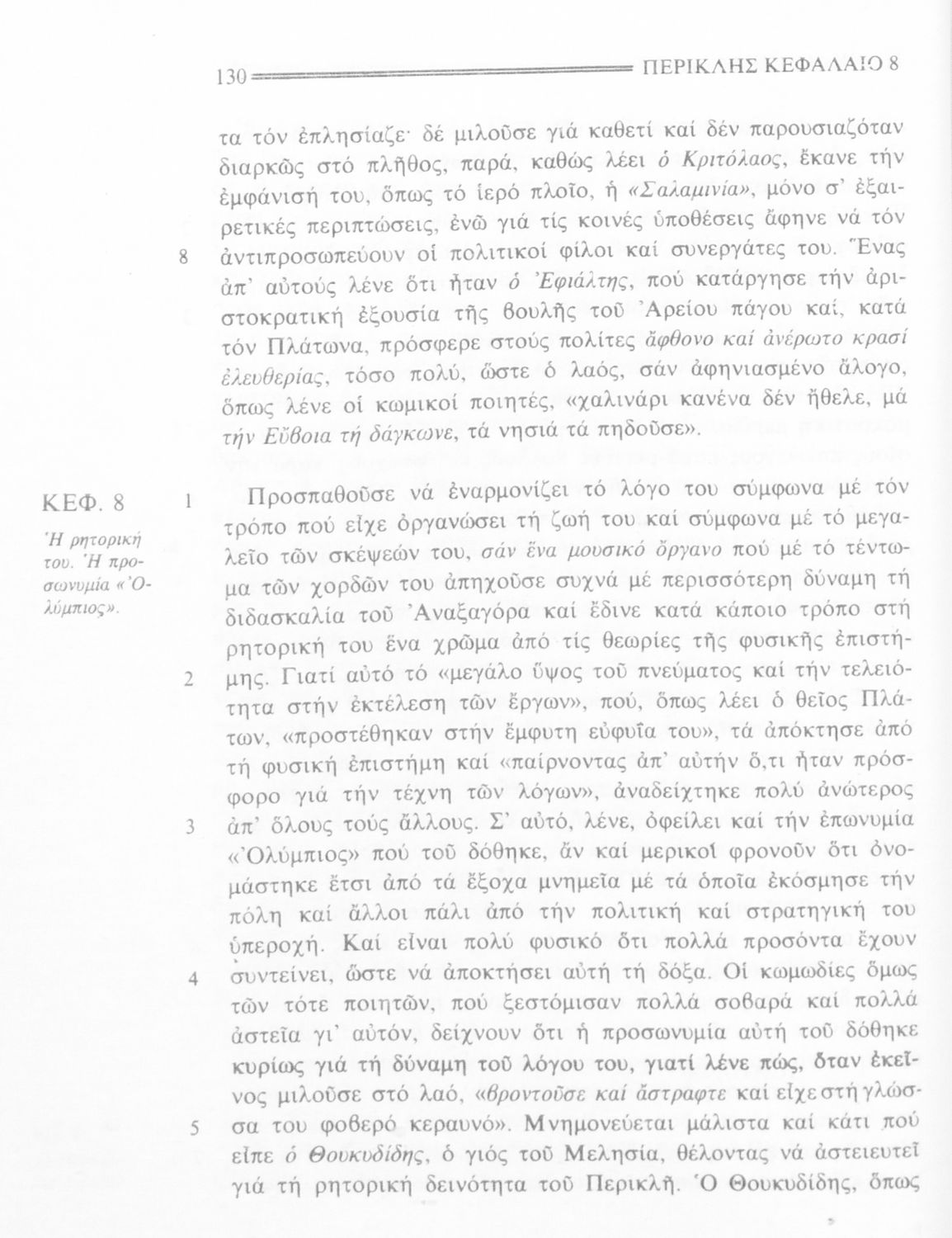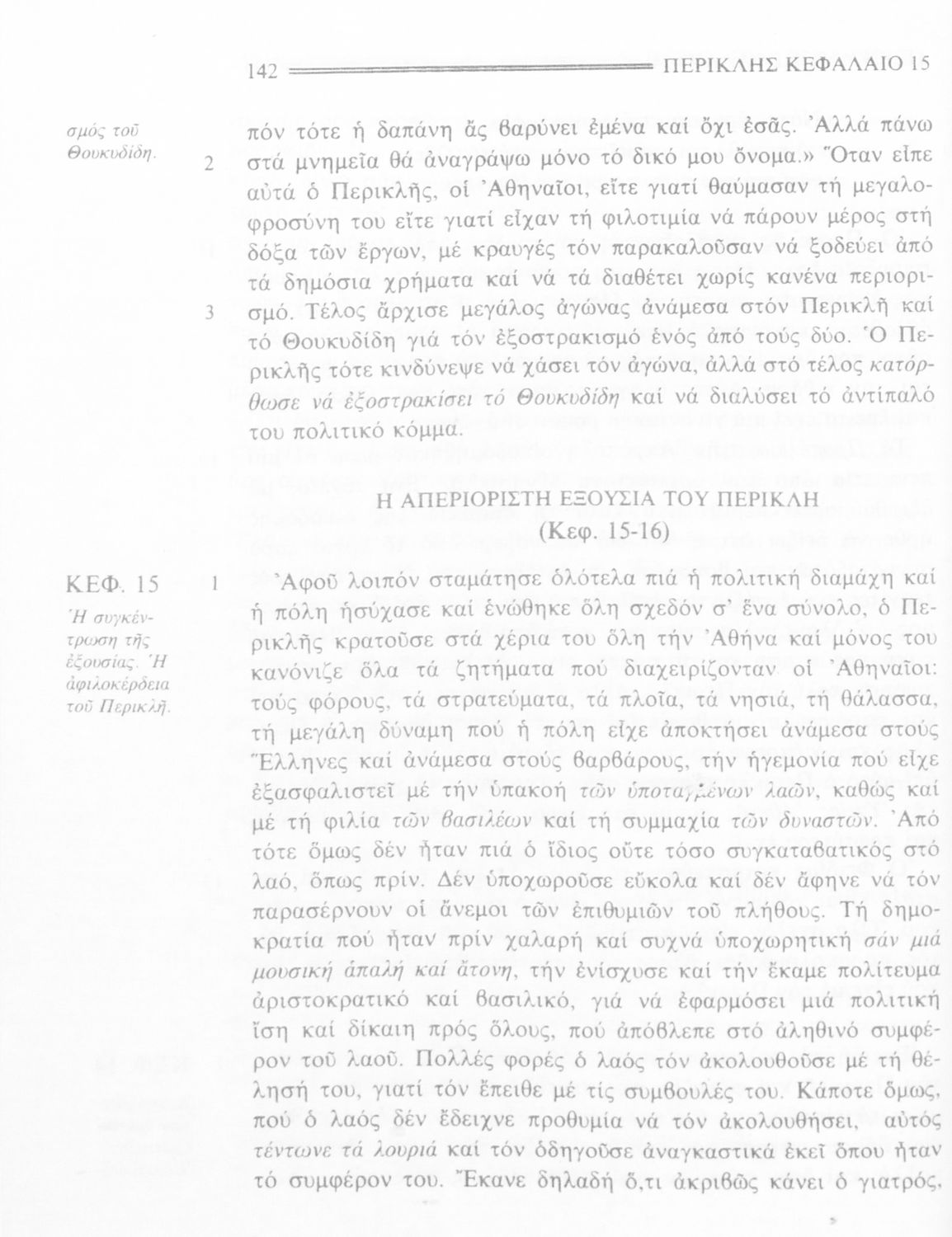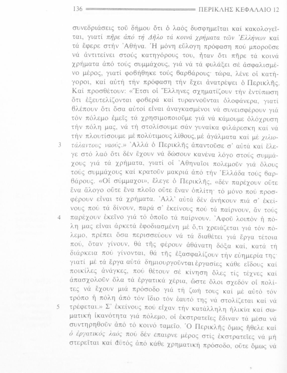 Σχολικό εγχειρίδιο Αρχαίων Ελληνικών Β΄ Γυμνασίου που περιέχει μετάφραση του έργο του Πλούταρχου Θεμιστοκλής και Περικλής, εισαγωγή και ερμηνευτικά σχόλια.