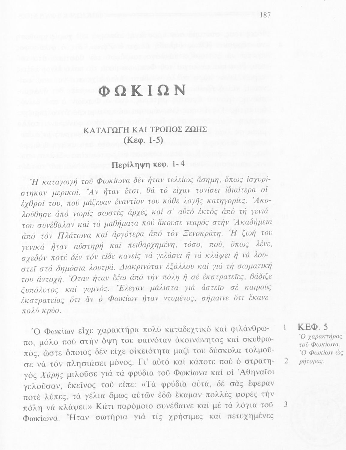 Σχολικό εγχειρίδιο Αρχαίων Ελληνικών της Β' Γυμνασίου. Το βιβλίο περιλαμβάνει τέσσερις από τους “Βίους” του Πλούταρχου: του Σόλωνα, του Θεμιστοκλή, του Περικλή και του Φωκίωνα