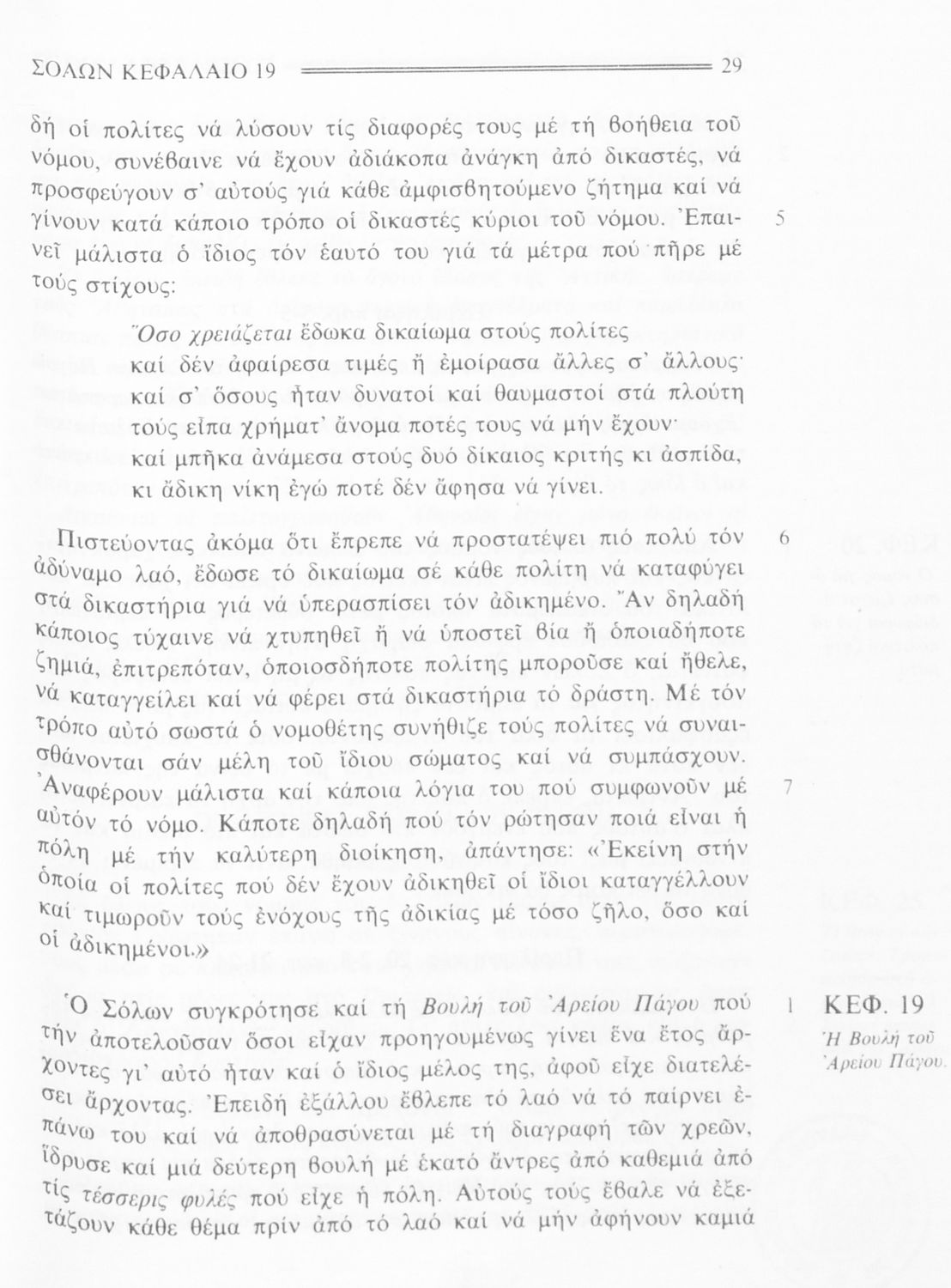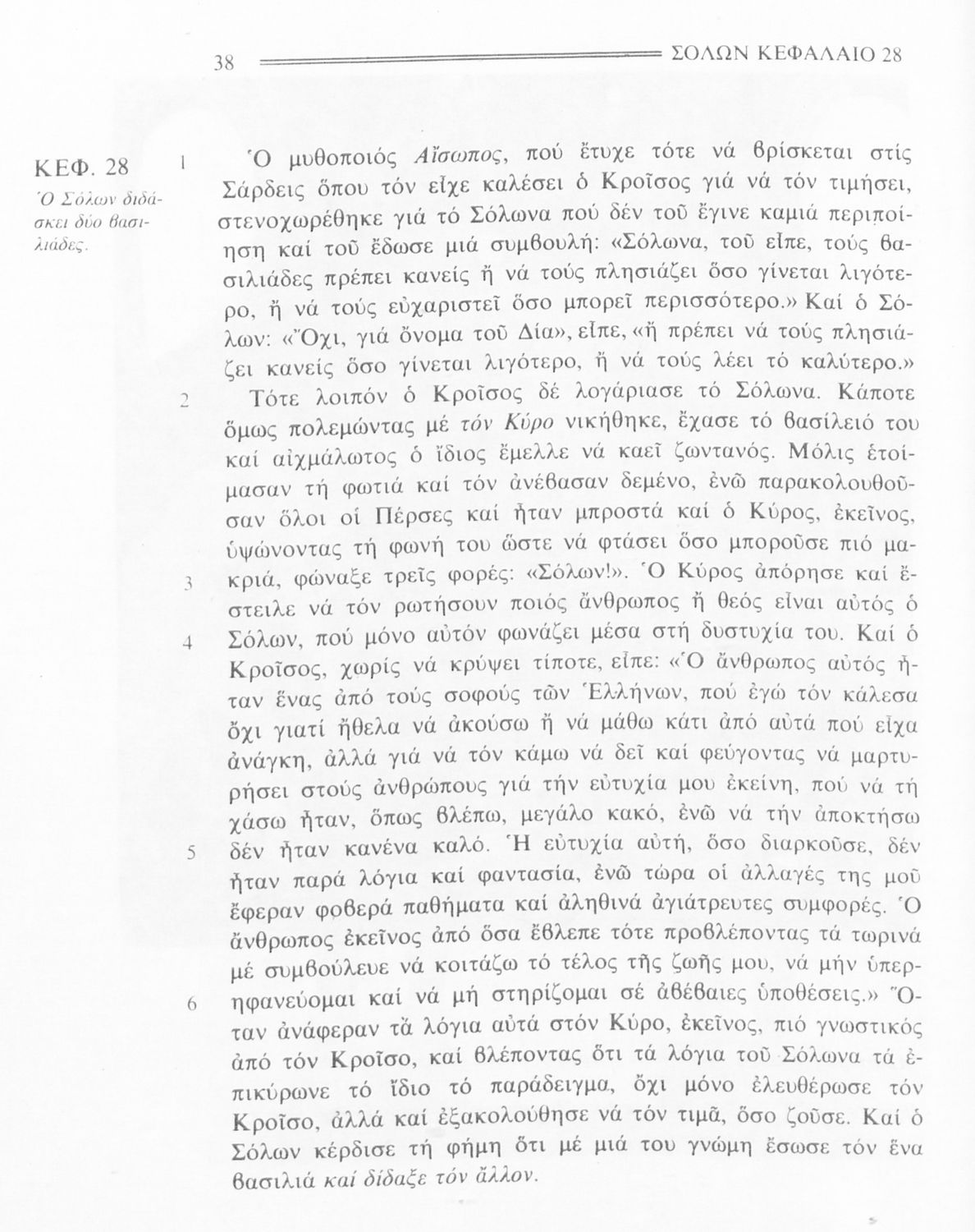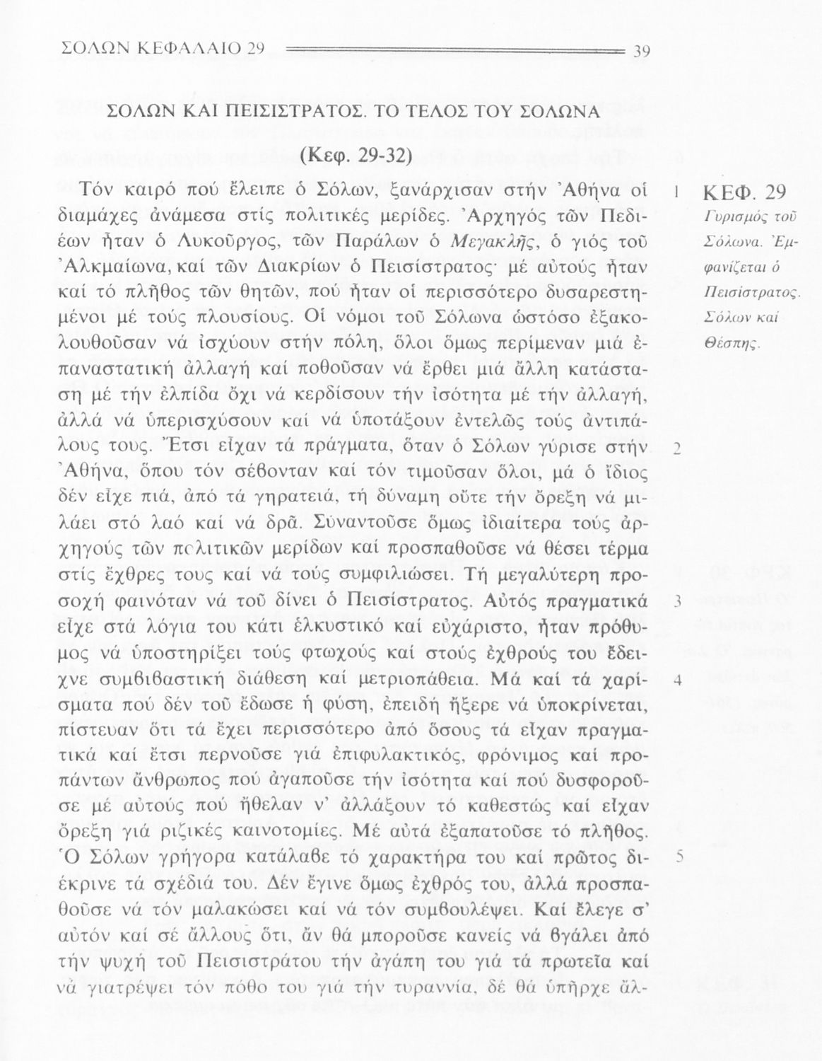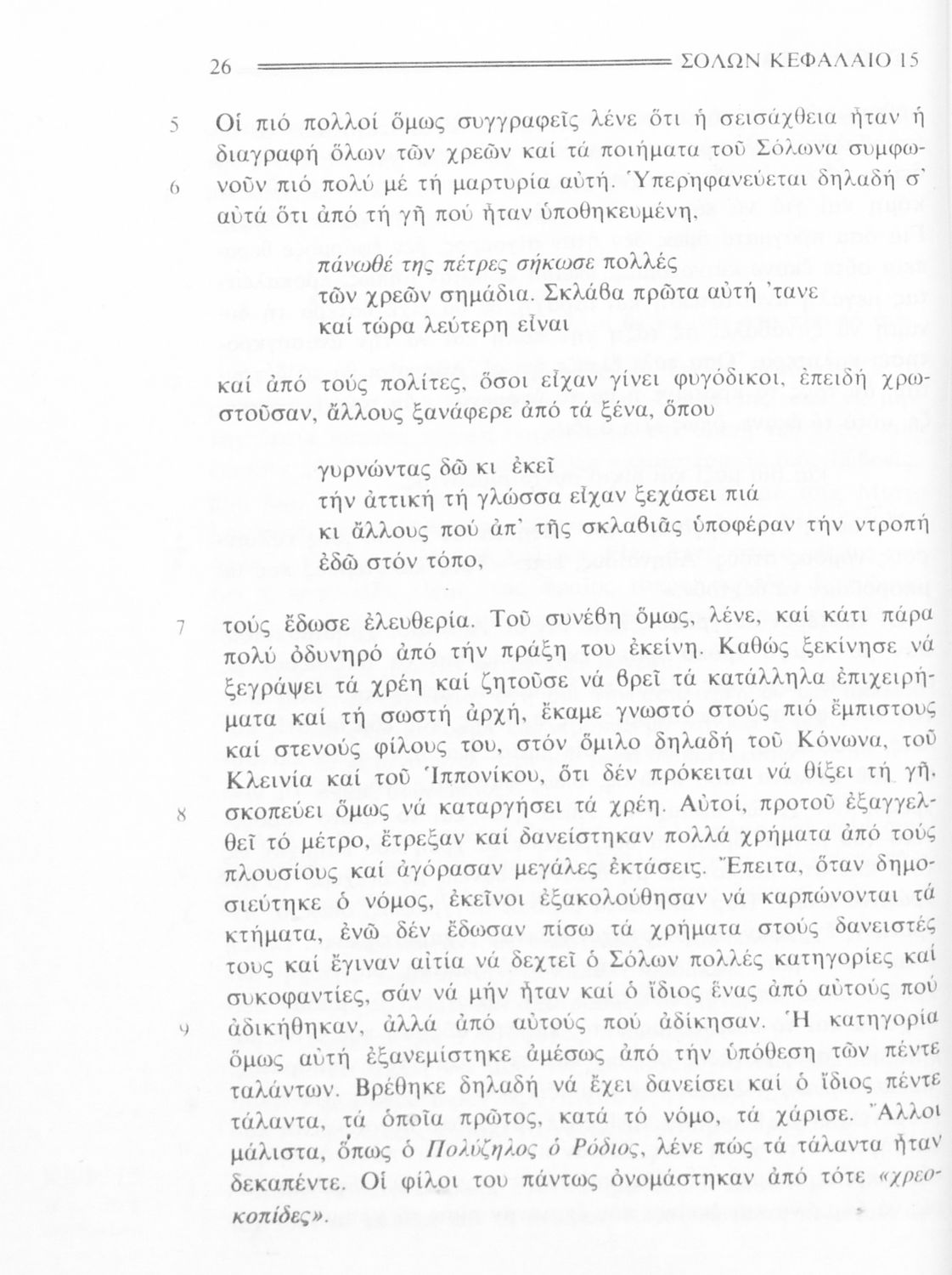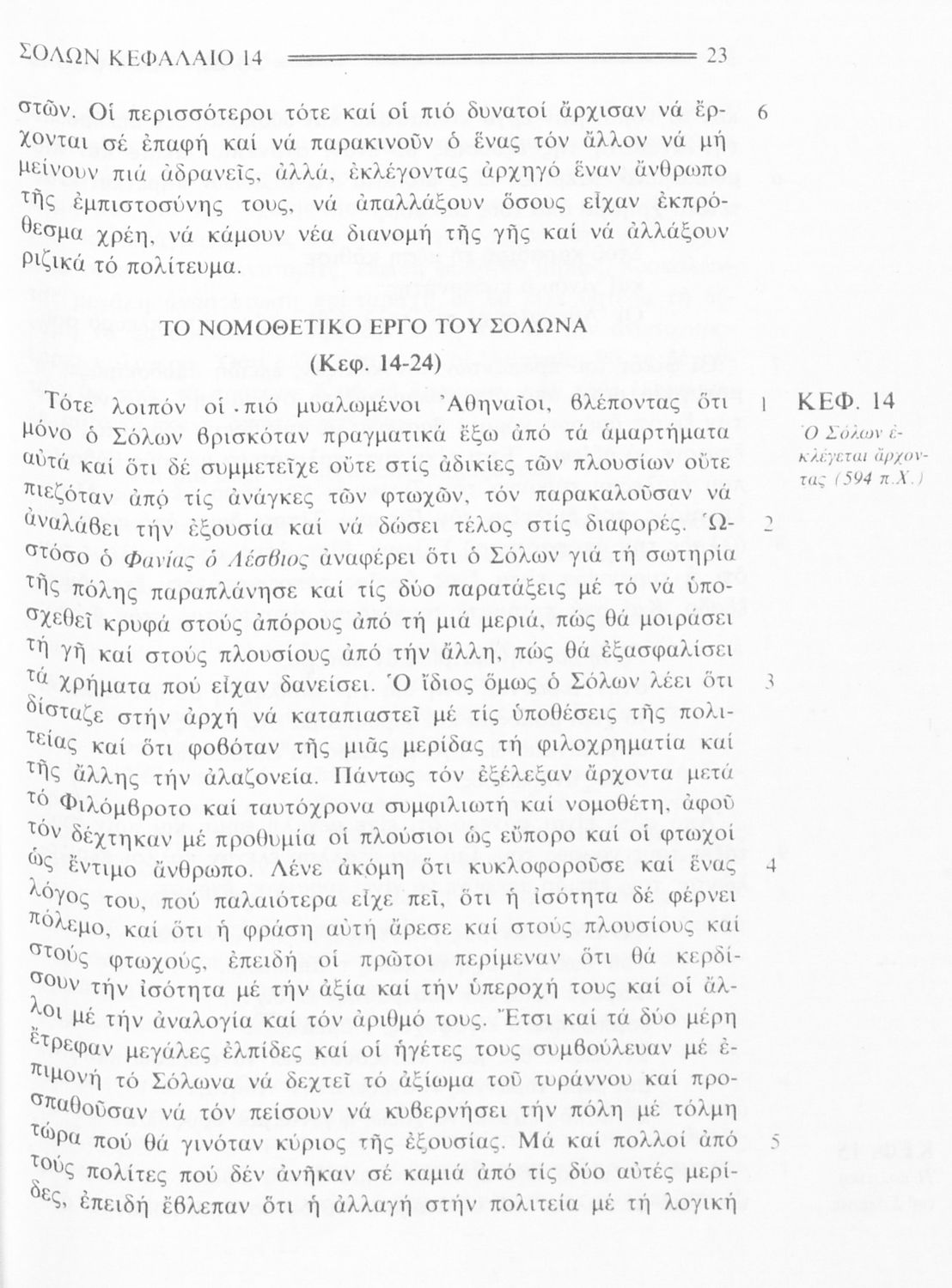 Σχολικό εγχειρίδιο Αρχαίων Ελληνικών. Αρχικά ένα εισαγωγικό σημείωμα αναφέρεται στη ζωή και το έργο του Πλουτάρχου. Ακολουθούν από το έργο του "Παράλληλοι Βίοι", σε μετάφραση, οι βιογραφίες του Σόλωνα, του ...