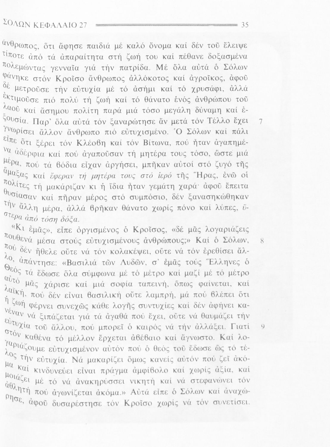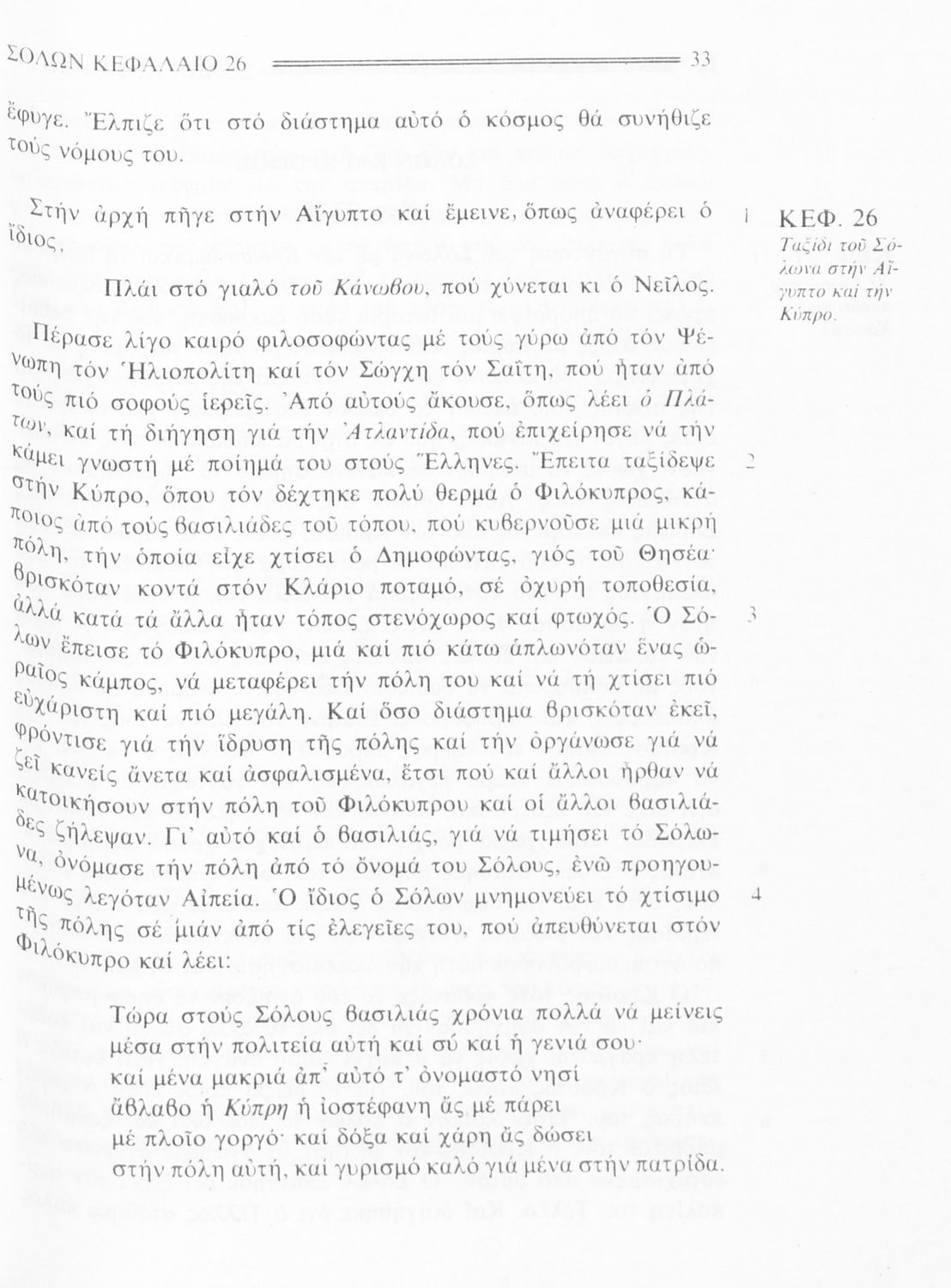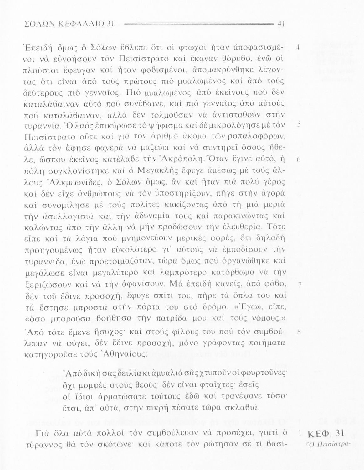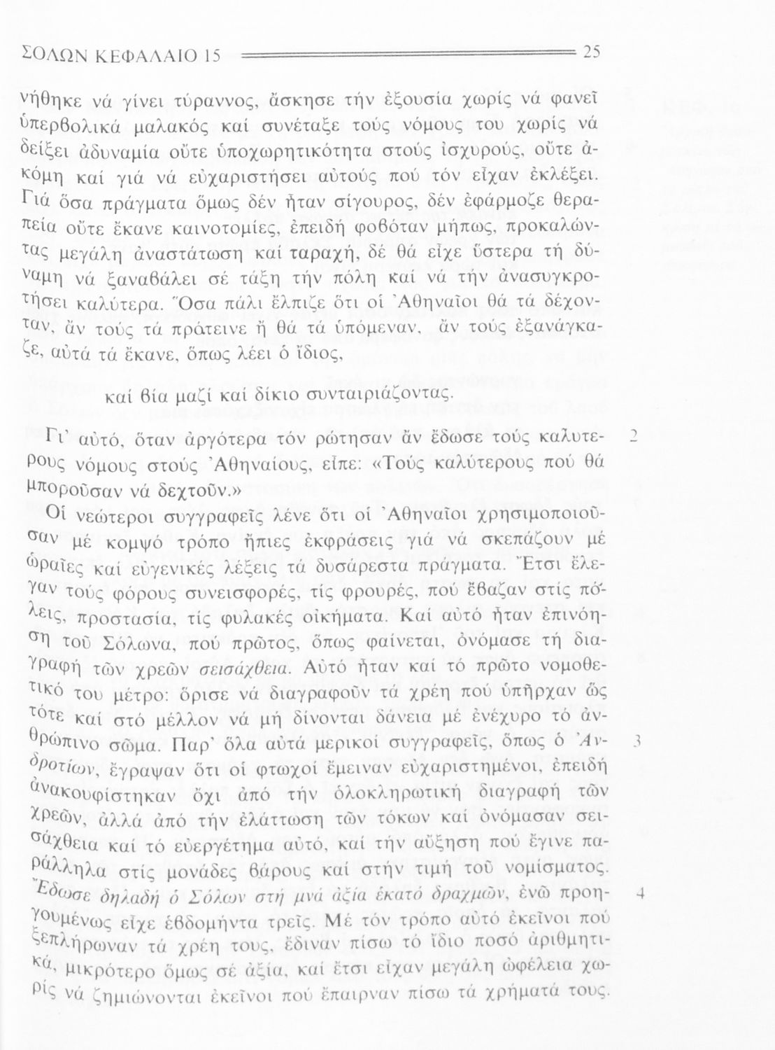 Σχολικό εγχειρίδιο Αρχαίων Ελληνικών. Αρχικά ένα εισαγωγικό σημείωμα αναφέρεται στη ζωή και το έργο του Πλουτάρχου. Ακολουθούν από το έργο του "Παράλληλοι Βίοι", σε μετάφραση, οι βιογραφίες του Σόλωνα, του ...