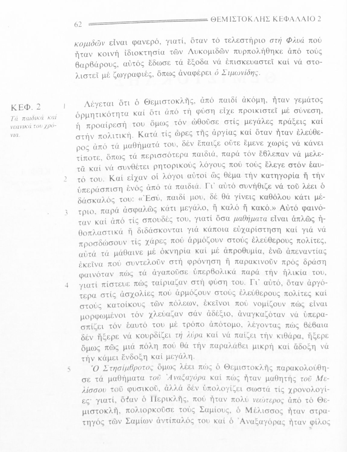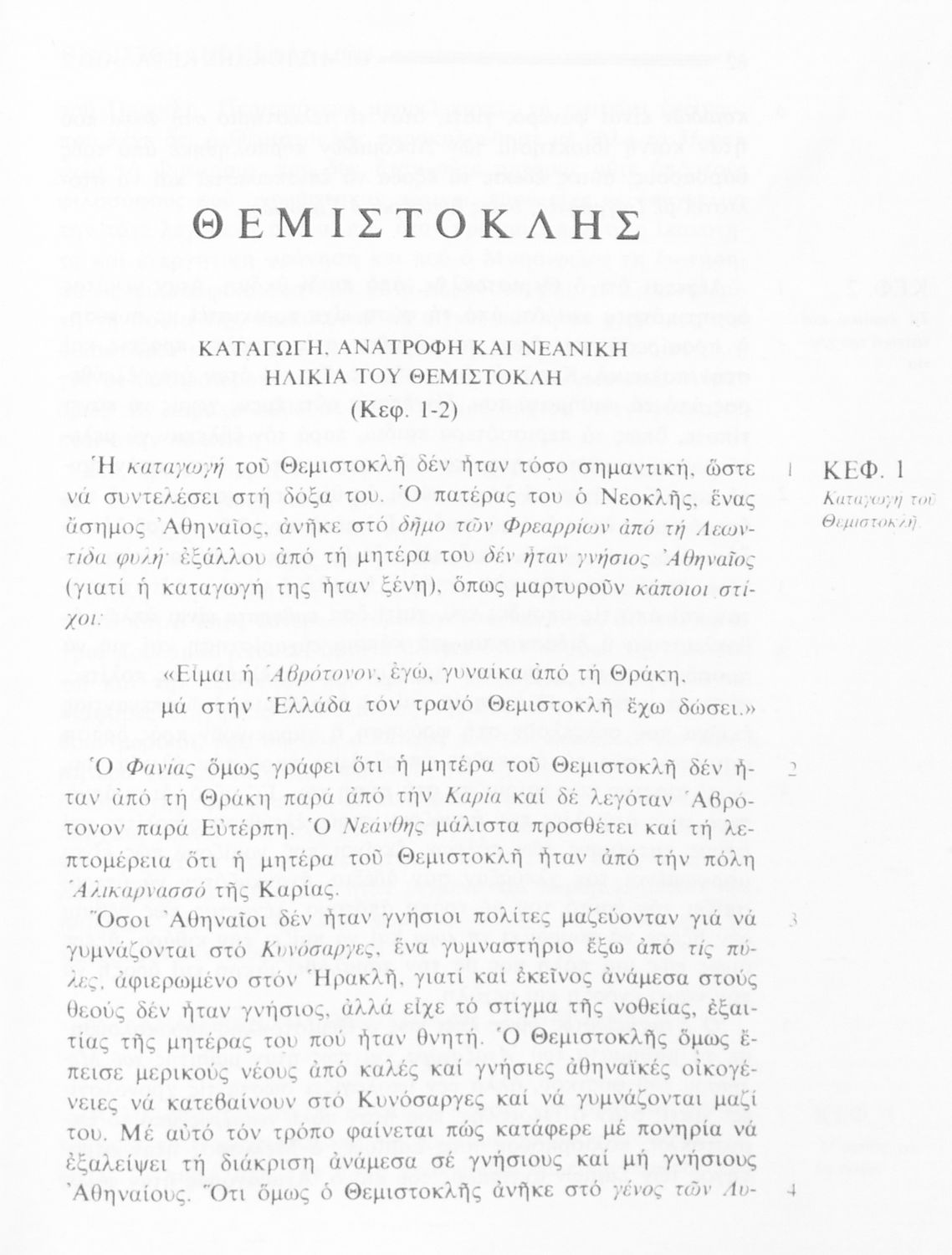 Σχολικό εγχειρίδιο Αρχαίων Ελληνικών της Β' Γυμνασίου. Το βιβλίο περιλαμβάνει τέσσερις από τους “Βίους” του Πλούταρχου: του Σόλωνα, του Θεμιστοκλή, του Περικλή και του Φωκίωνα