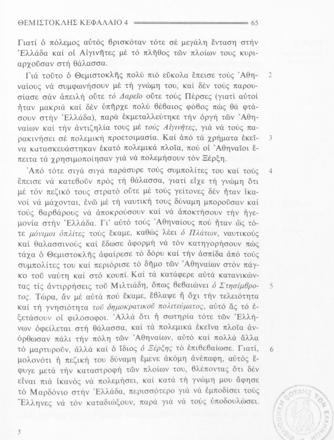 Βαθμίδα εκπαίδευσης: Δευτεροβάθμια Τάξη: Β' Γυμνασίου Μάθημα: Αρχαία Ελληνικά Γλώσσα: Δημοτική Παρουσίαση περιεχομένου: Σχολικό εγχειρίδιο Αρχαίων Ελληνικών της Β' Γυμνασίου. Το βιβλίο περιλαμβάνει τέσσερις από τους “Βίους” του Πλούταρχου: του Σόλωνα, του Θεμιστοκλή, του Περικλή και του Φωκίωνα |