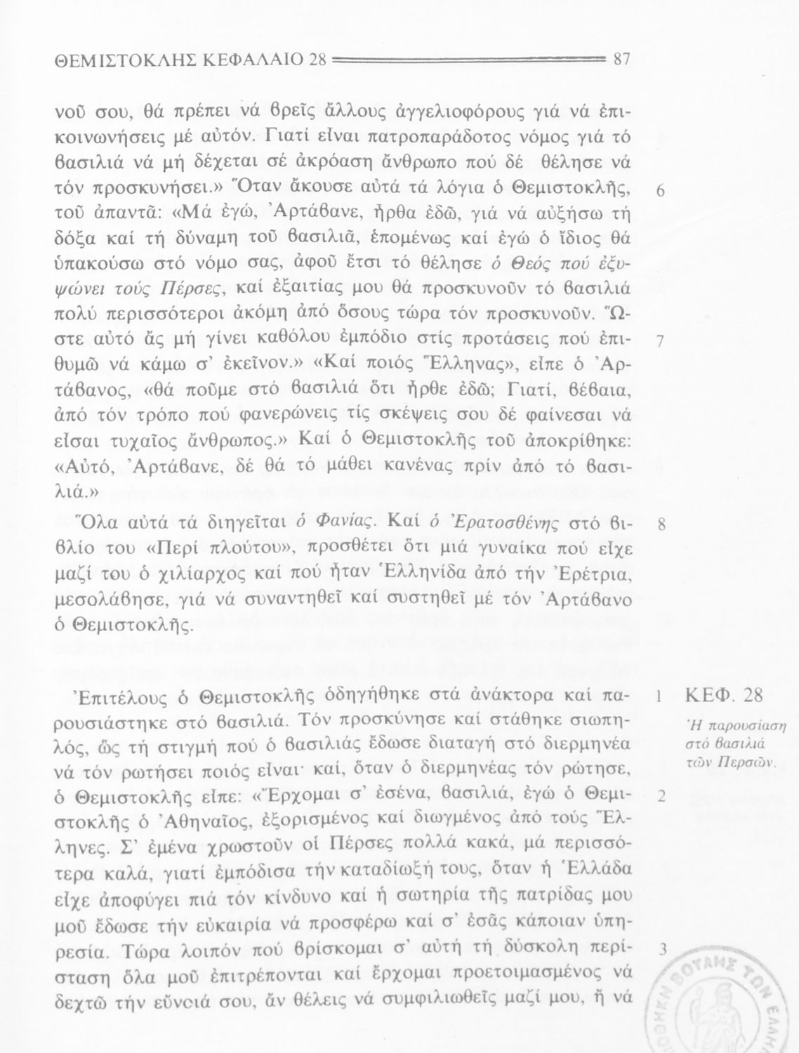 Σχολικό εγχειρίδιο Αρχαίων Ελληνικών της Β' Γυμνασίου. Το βιβλίο περιλαμβάνει τέσσερις από τους “Βίους” του Πλούταρχου: του Σόλωνα, του Θεμιστοκλή, του Περικλή και του Φωκίωνα