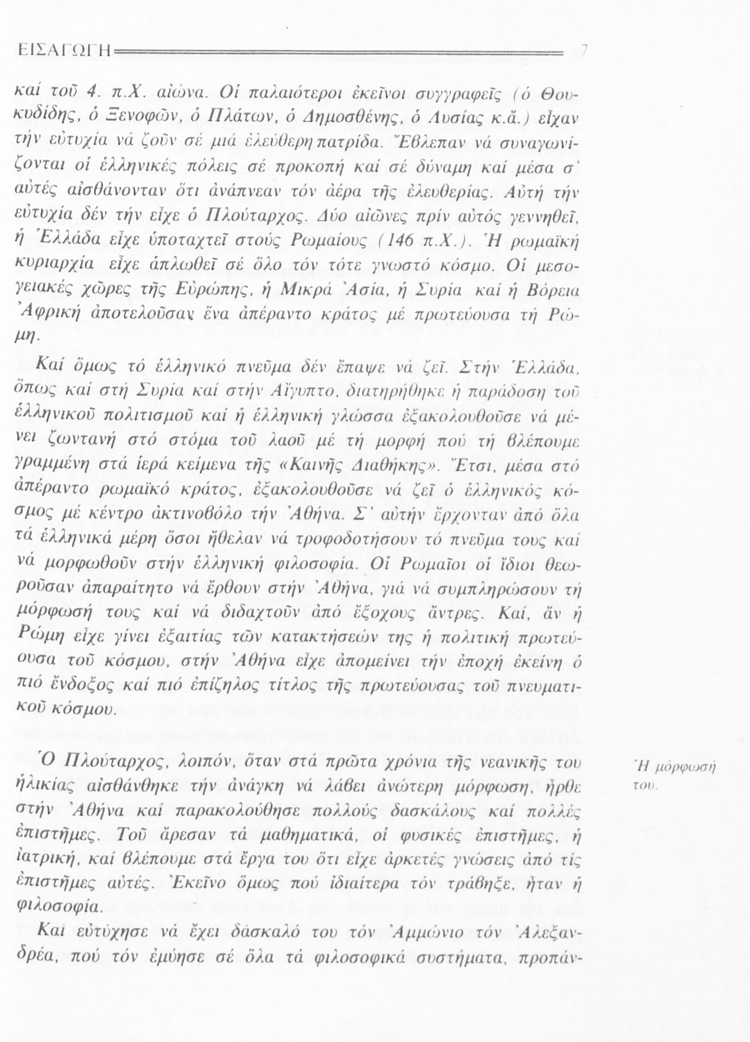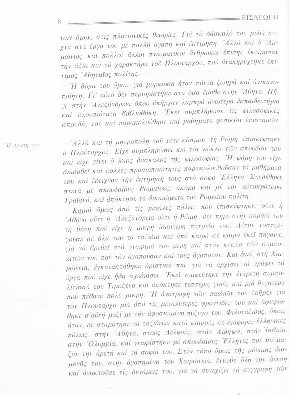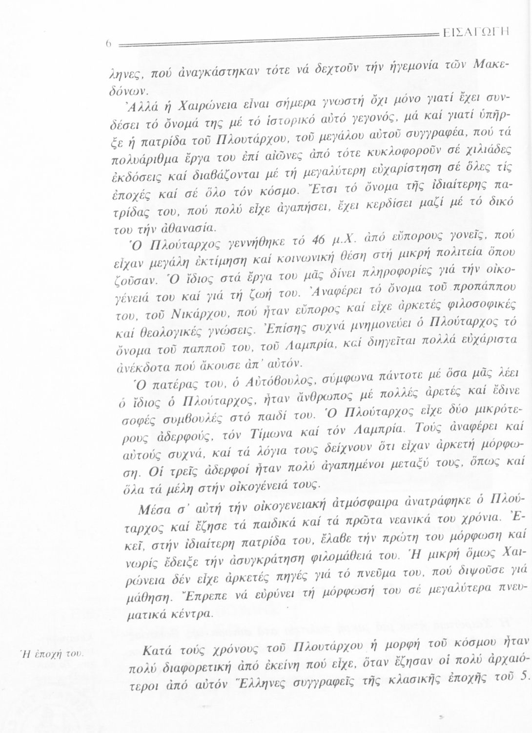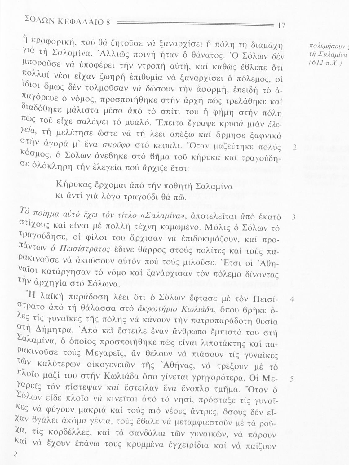 Σχολικό εγχειρίδιο Αρχαίων Ελληνικών της Β' Γυμνασίου. Το βιβλίο περιλαμβάνει τέσσερις από τους “Βίους” του Πλούταρχου: του Σόλωνα, του Θεμιστοκλή, του Περικλή και του Φωκίωνα