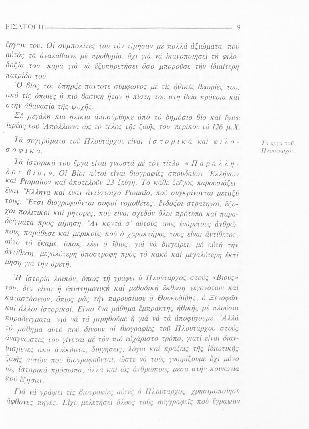Σχολικό εγχειρίδιο Αρχαίων Ελληνικών για τις Β΄ Γυμνασίου και Γ΄ Αστικού Σχολείου που περιλαμβάνει αποσπάσματα από το έργο του Πλούταρχου Βίοι Παράλληλοι και ερμηνευτικά και πραγματολογικά σχόλια.