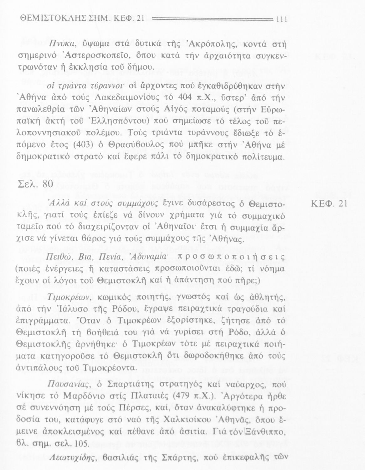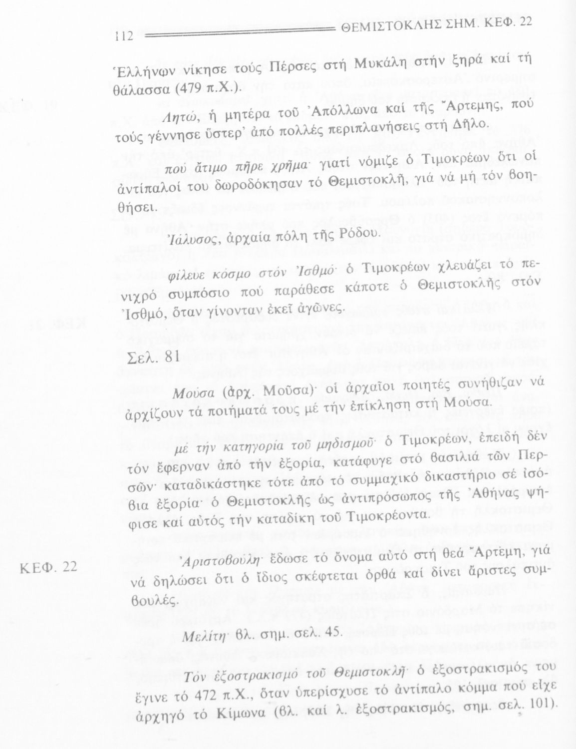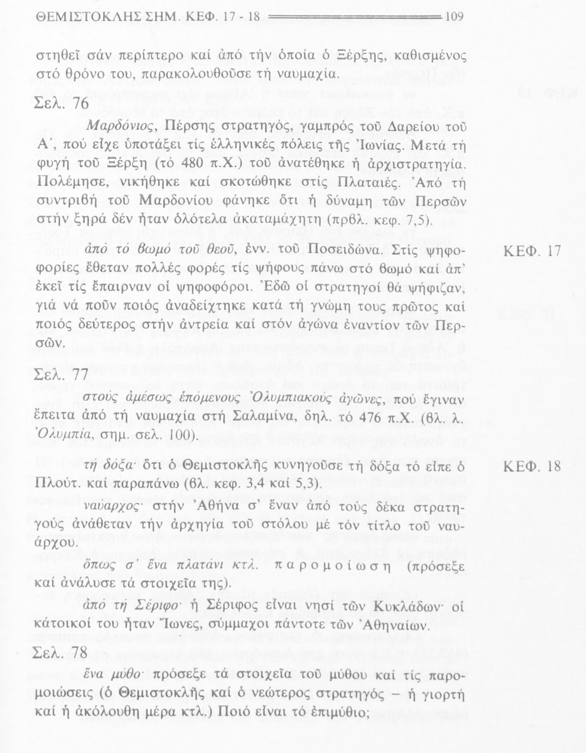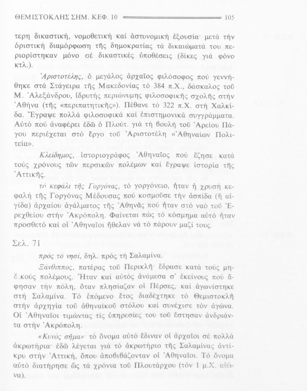 Σχολικό εγχειρίδιο Αρχαίων Ελληνικών Β΄ Γυμνασίου που περιέχει μετάφραση του έργο του Πλούταρχου Θεμιστοκλής και Περικλής, εισαγωγή και ερμηνευτικά σχόλια.