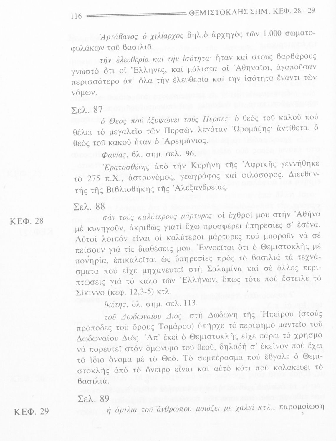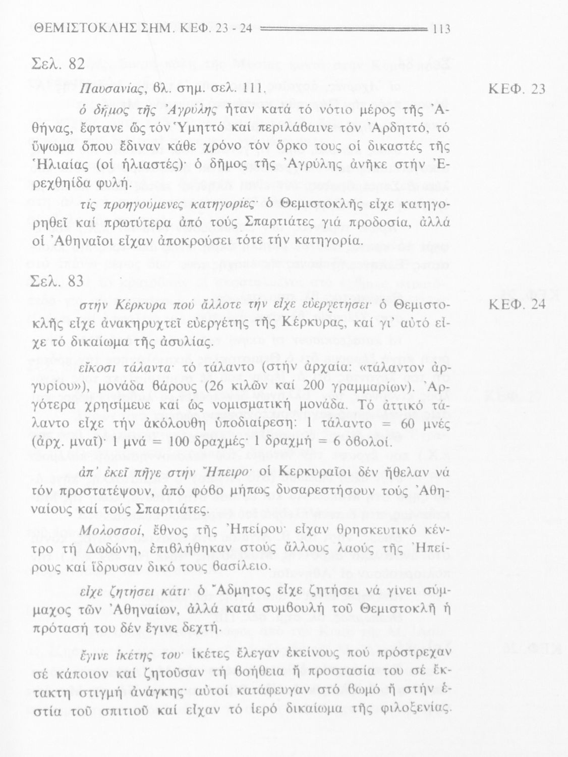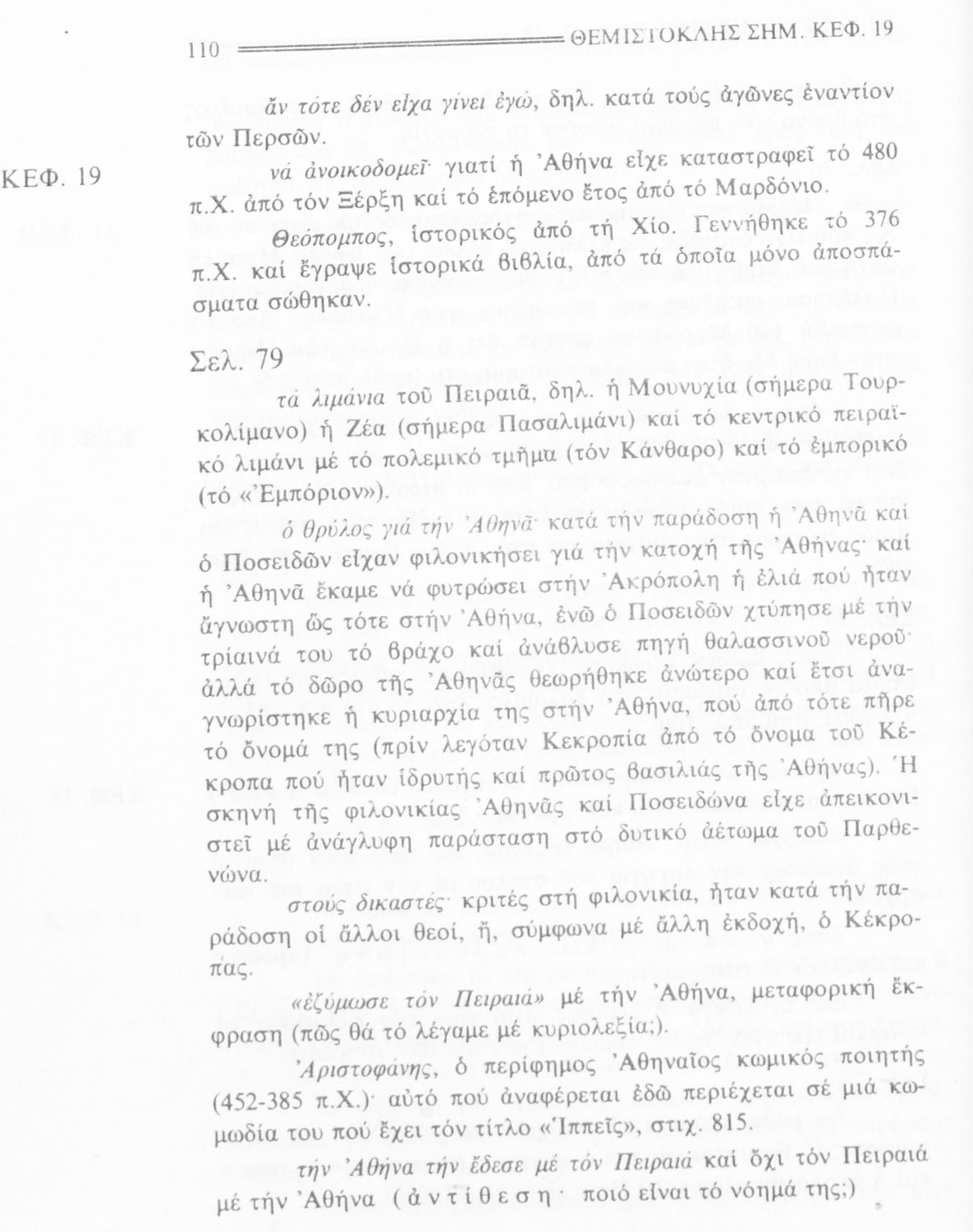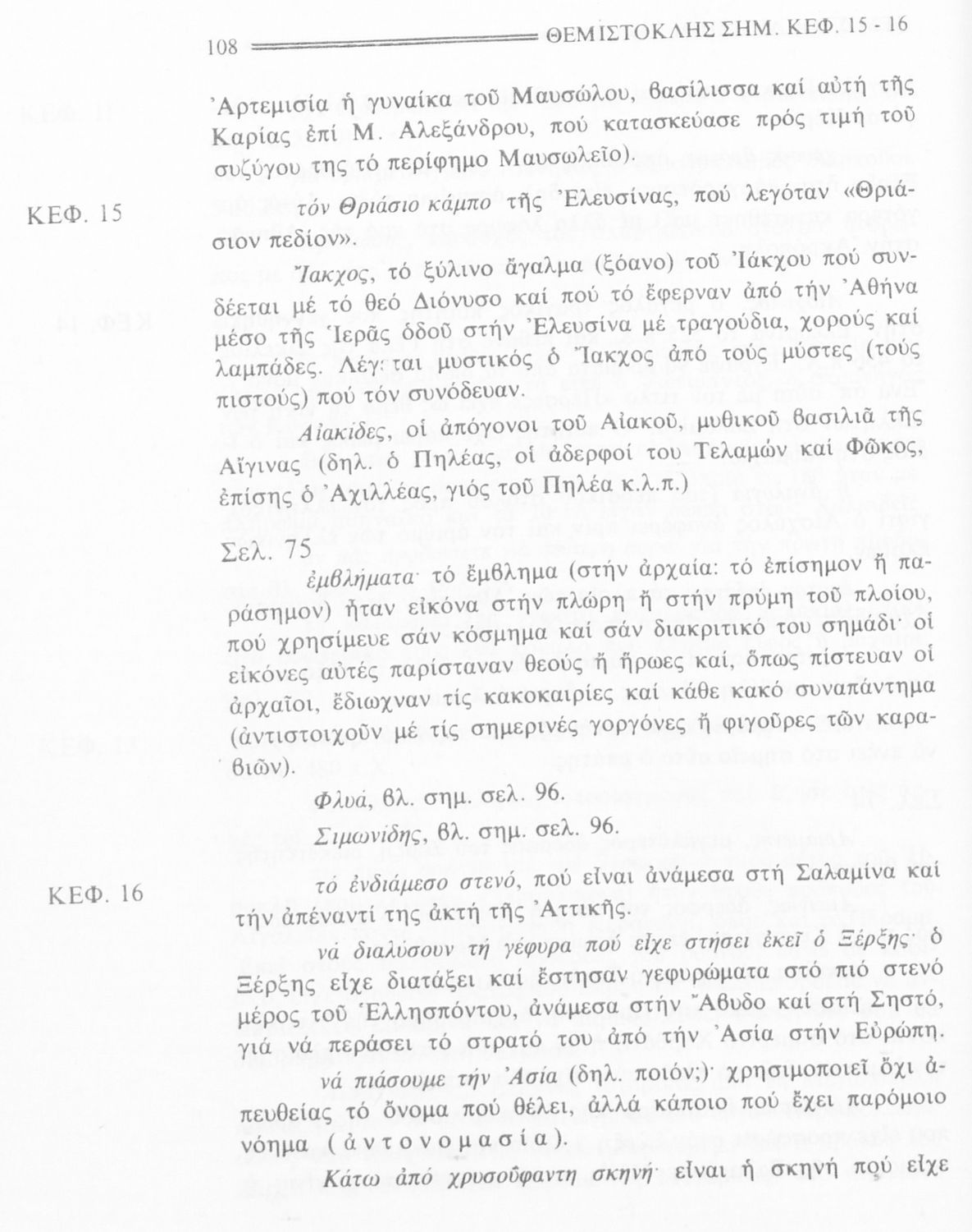 Σχολικό εγχειρίδιο Αρχαίων Ελληνικών Β΄ Γυμνασίου που περιέχει μετάφραση του έργο του Πλούταρχου Θεμιστοκλής και Περικλής, εισαγωγή και ερμηνευτικά σχόλια.