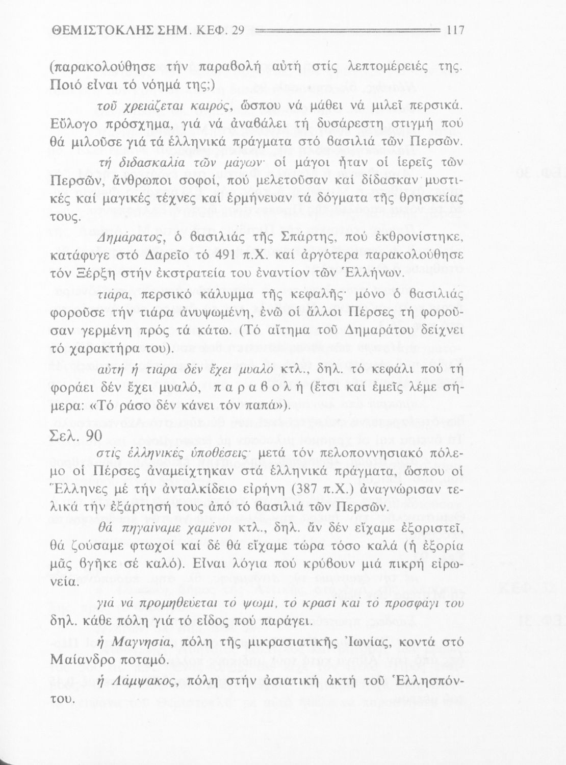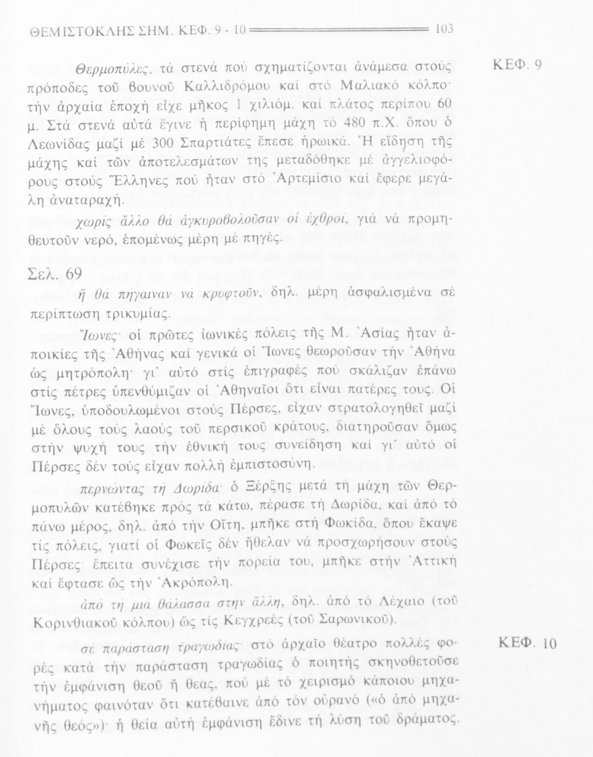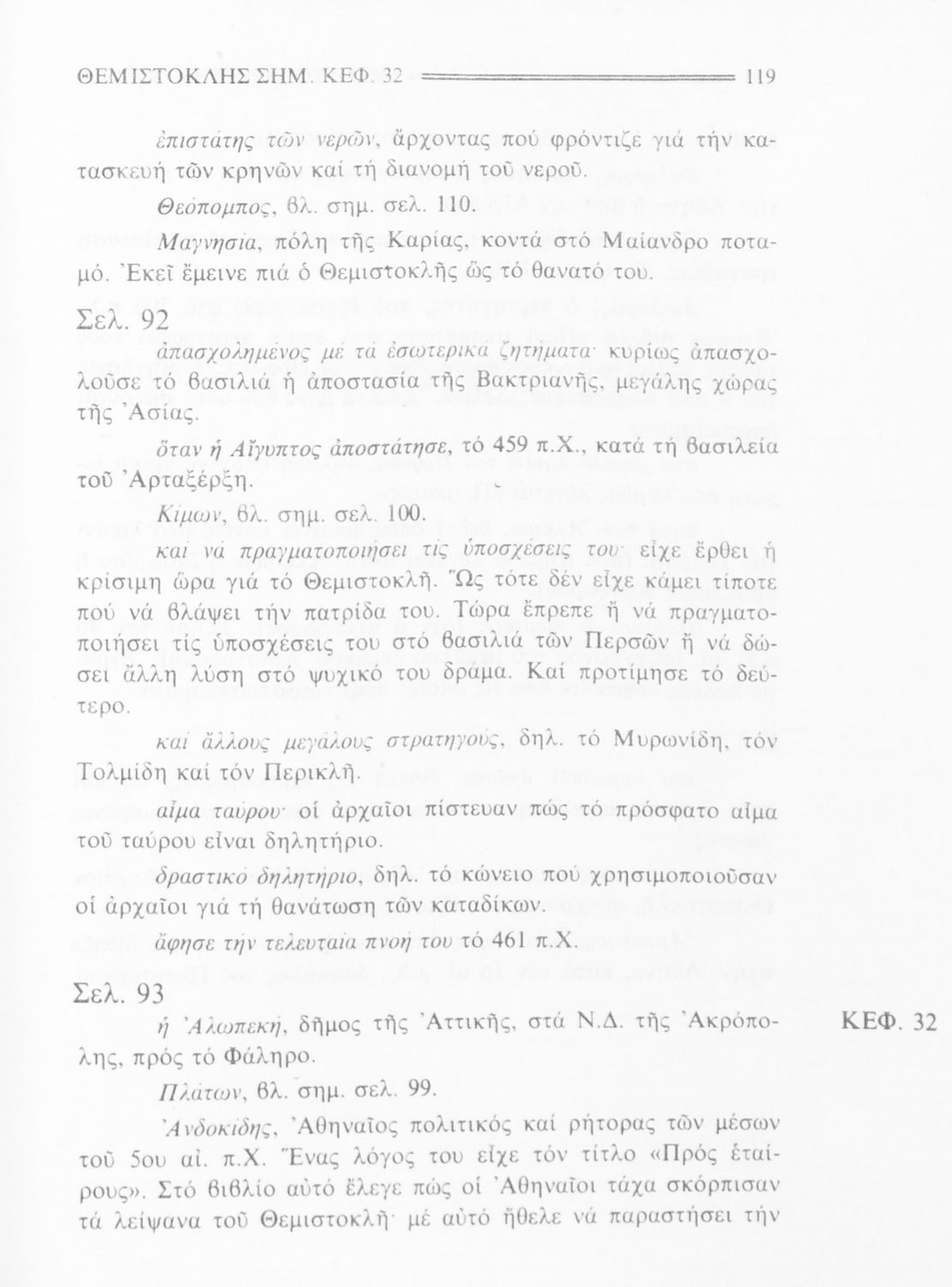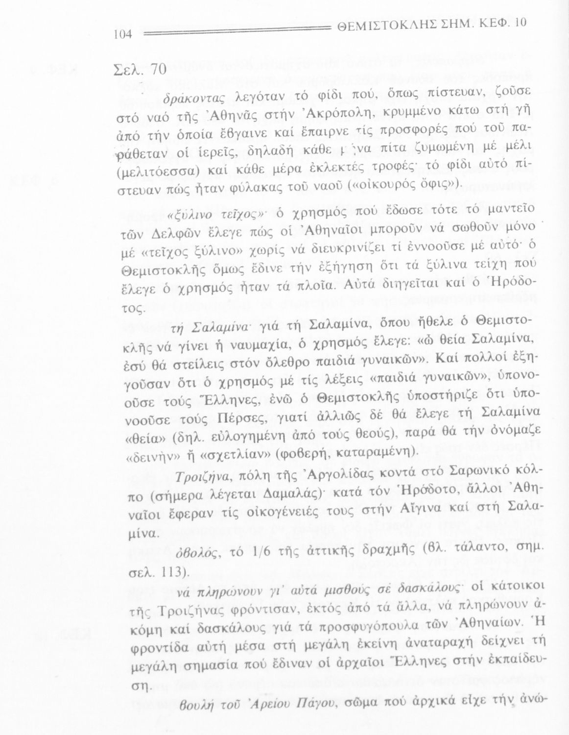 Σχολικό εγχειρίδιο Αρχαίων Ελληνικών Β΄ Γυμνασίου που περιέχει μετάφραση του έργο του Πλούταρχου Θεμιστοκλής και Περικλής, εισαγωγή και ερμηνευτικά σχόλια.