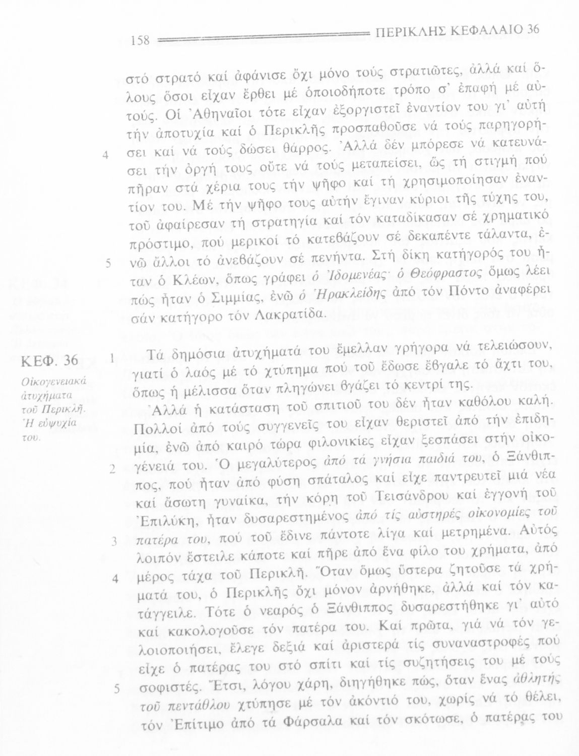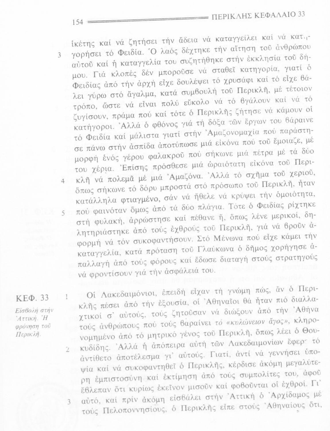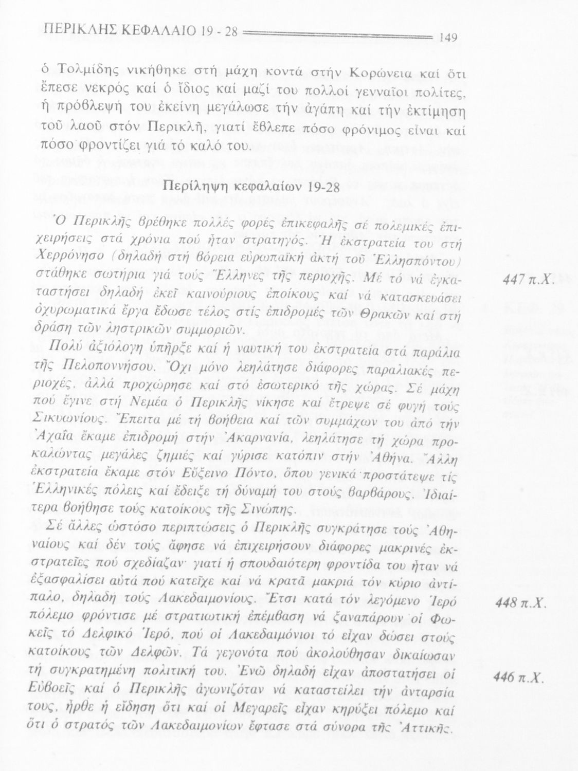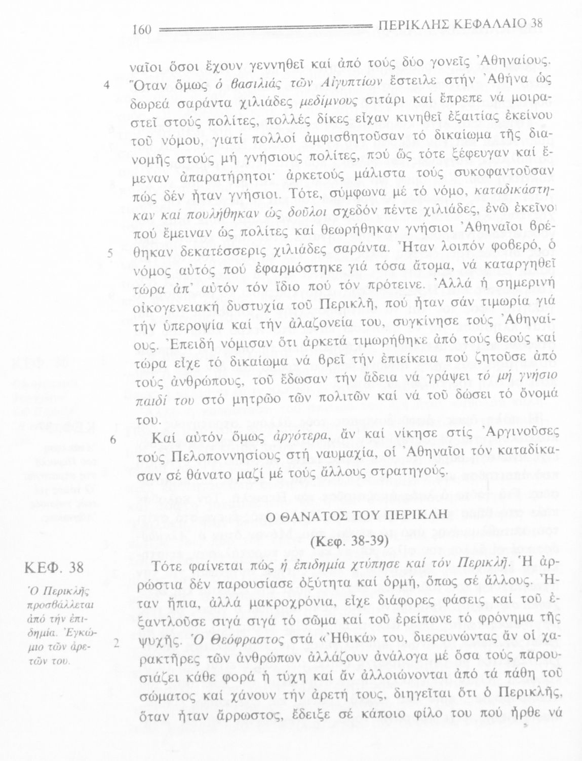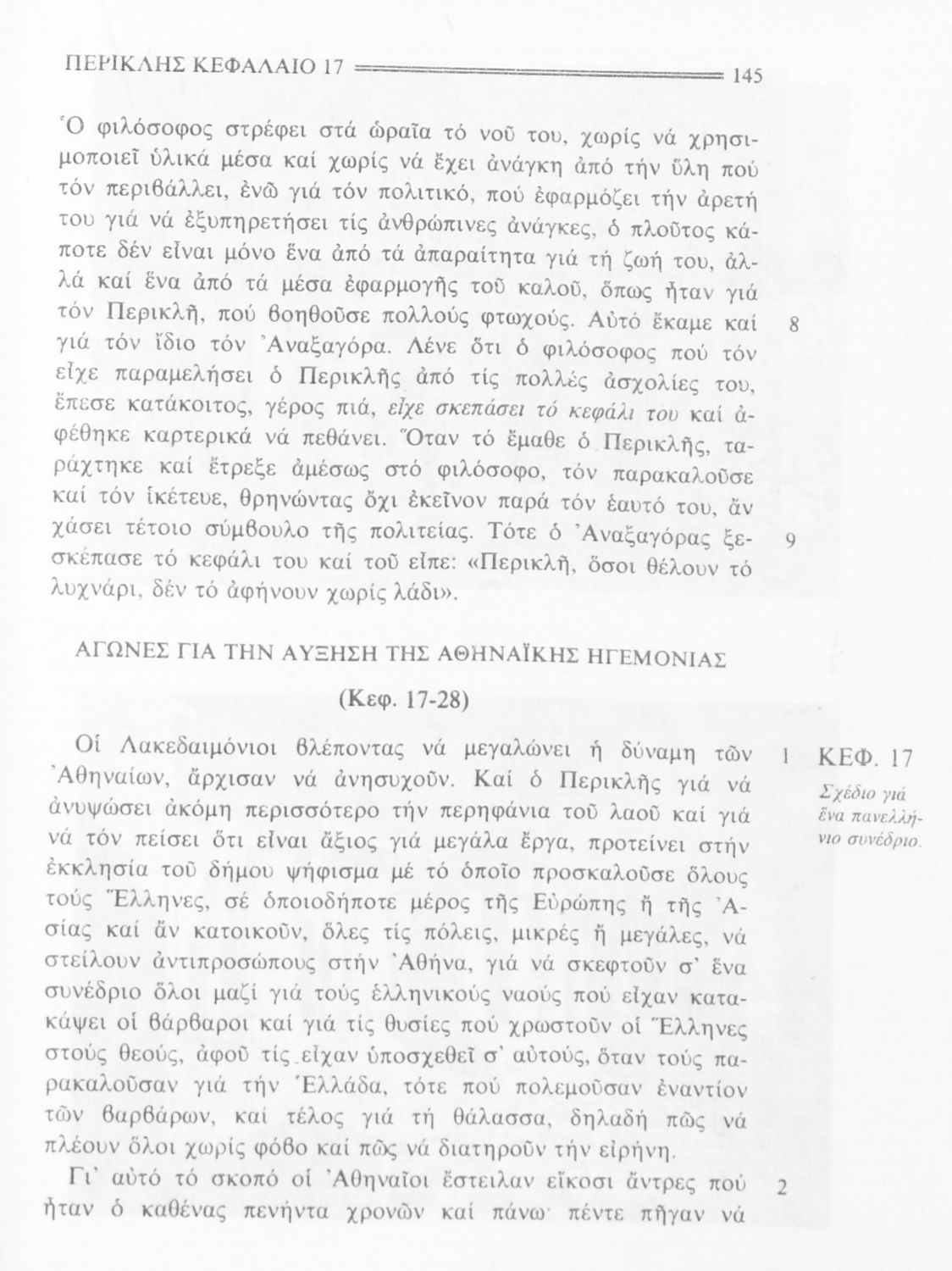 Σχολικό εγχειρίδιο Αρχαίων Ελληνικών Β΄ Γυμνασίου που περιέχει μετάφραση του έργο του Πλούταρχου Θεμιστοκλής και Περικλής, εισαγωγή και ερμηνευτικά σχόλια.