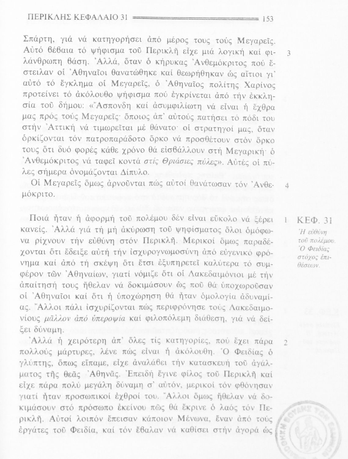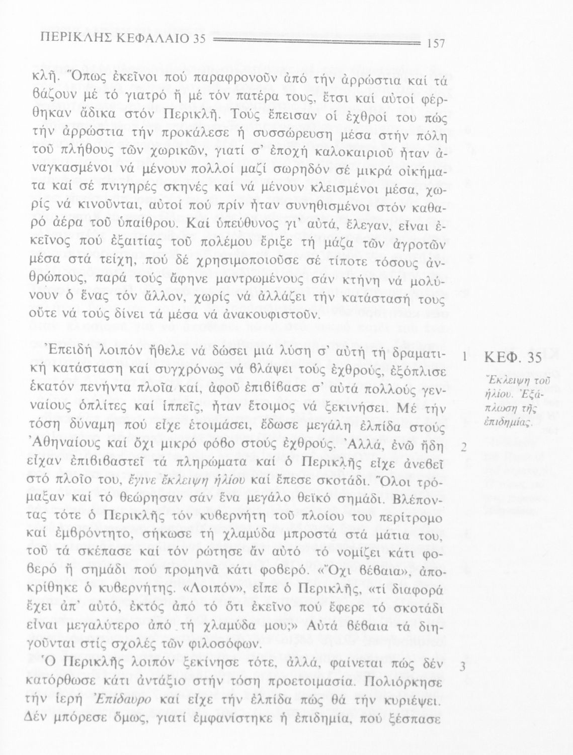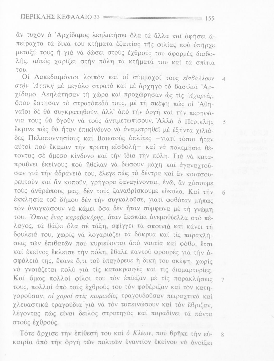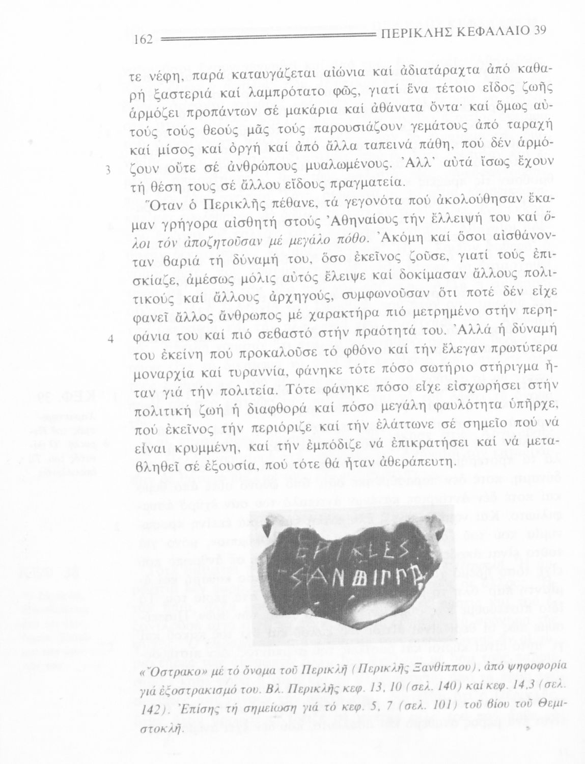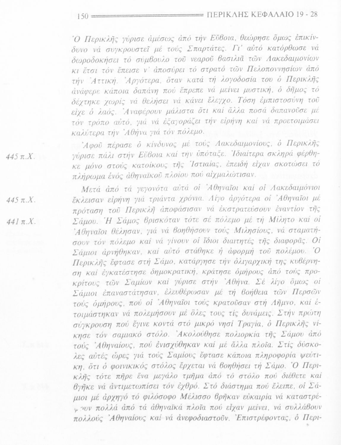 Σχολικό εγχειρίδιο Αρχαίων Ελληνικών Β΄ Γυμνασίου που περιέχει μετάφραση του έργο του Πλούταρχου Θεμιστοκλής και Περικλής, εισαγωγή και ερμηνευτικά σχόλια.