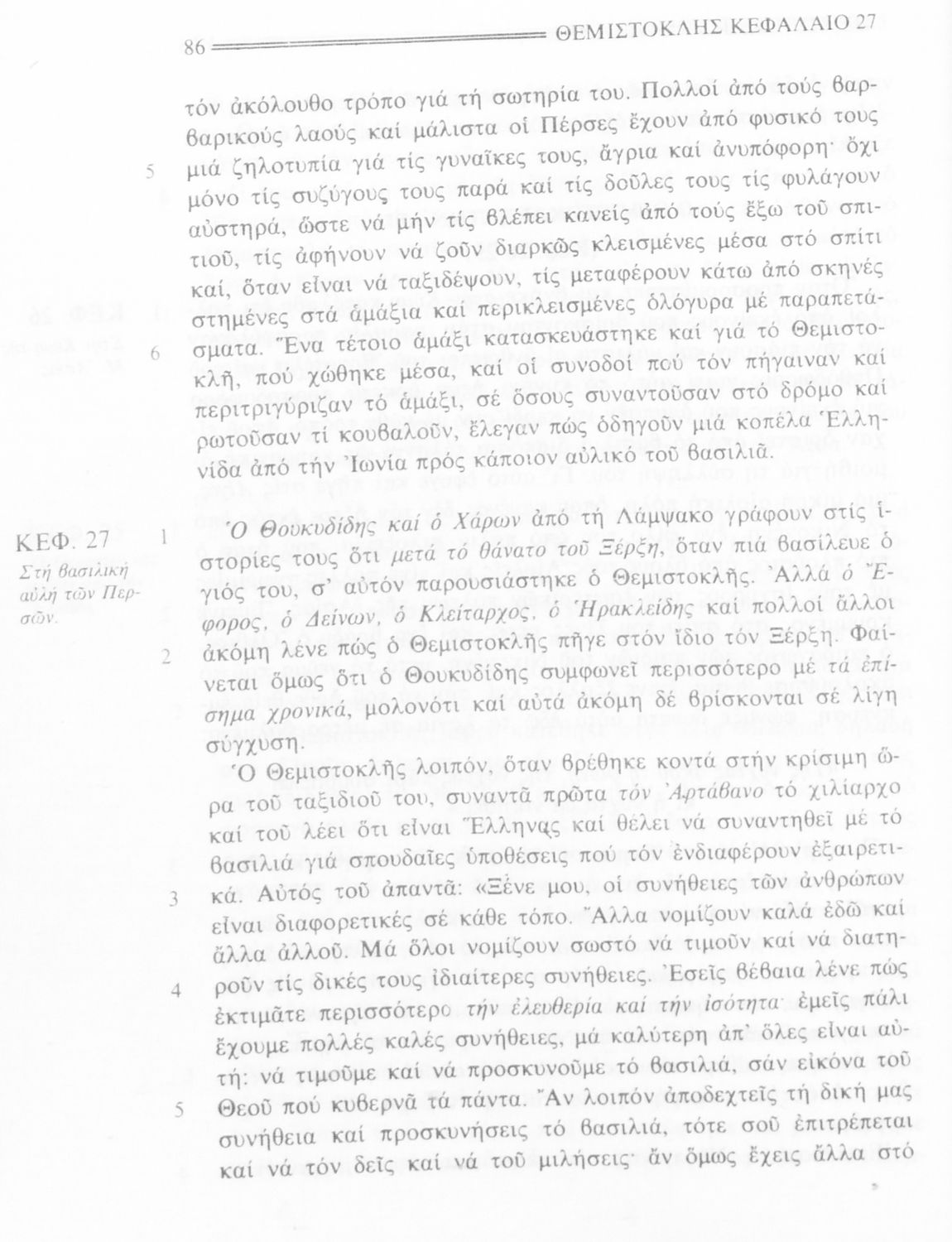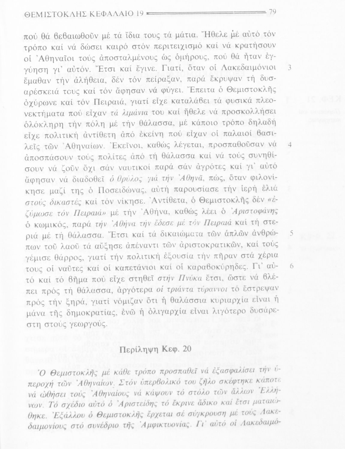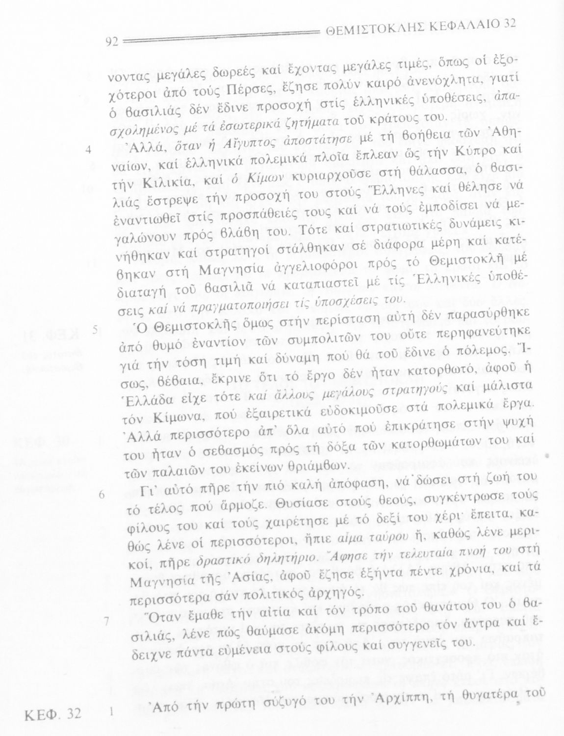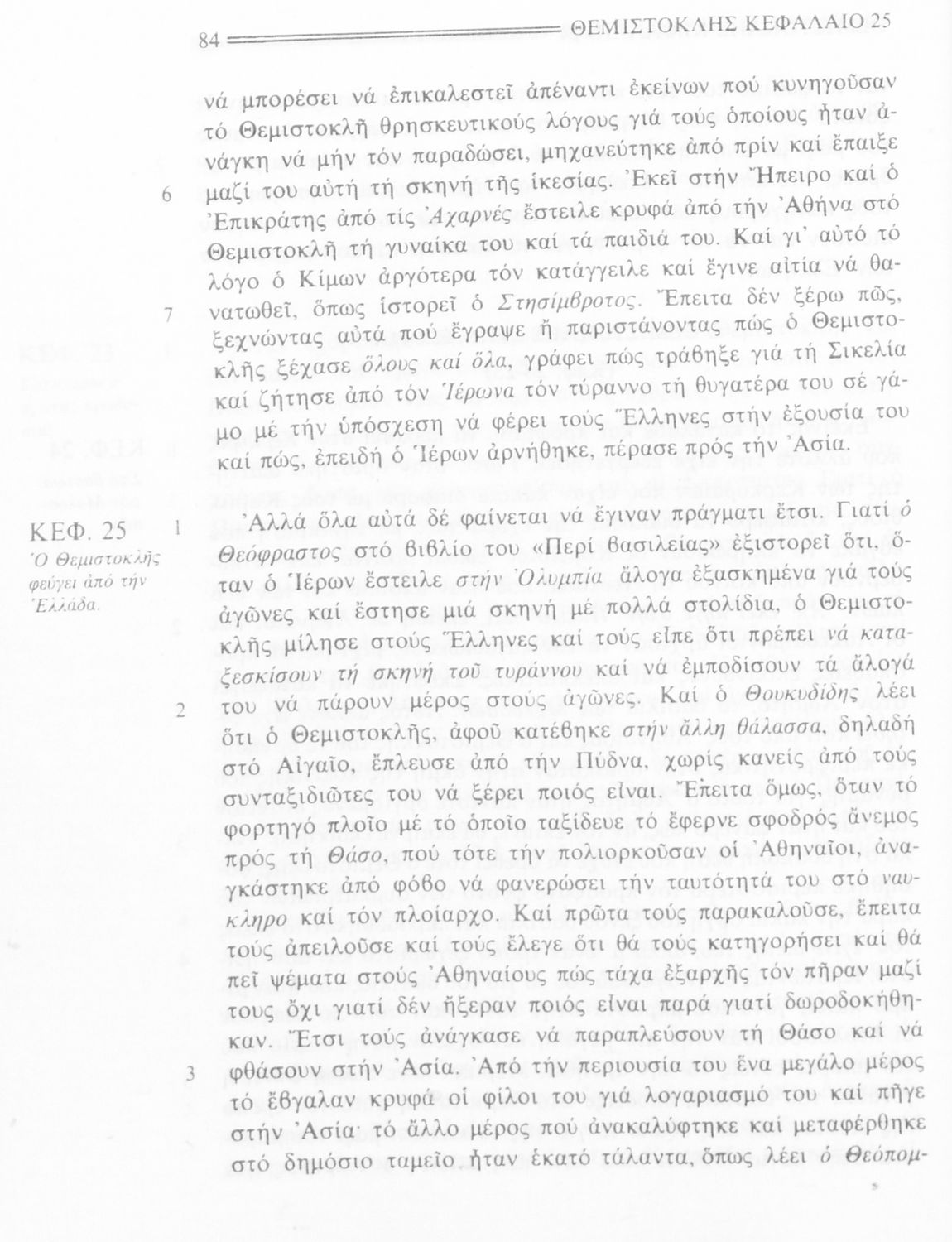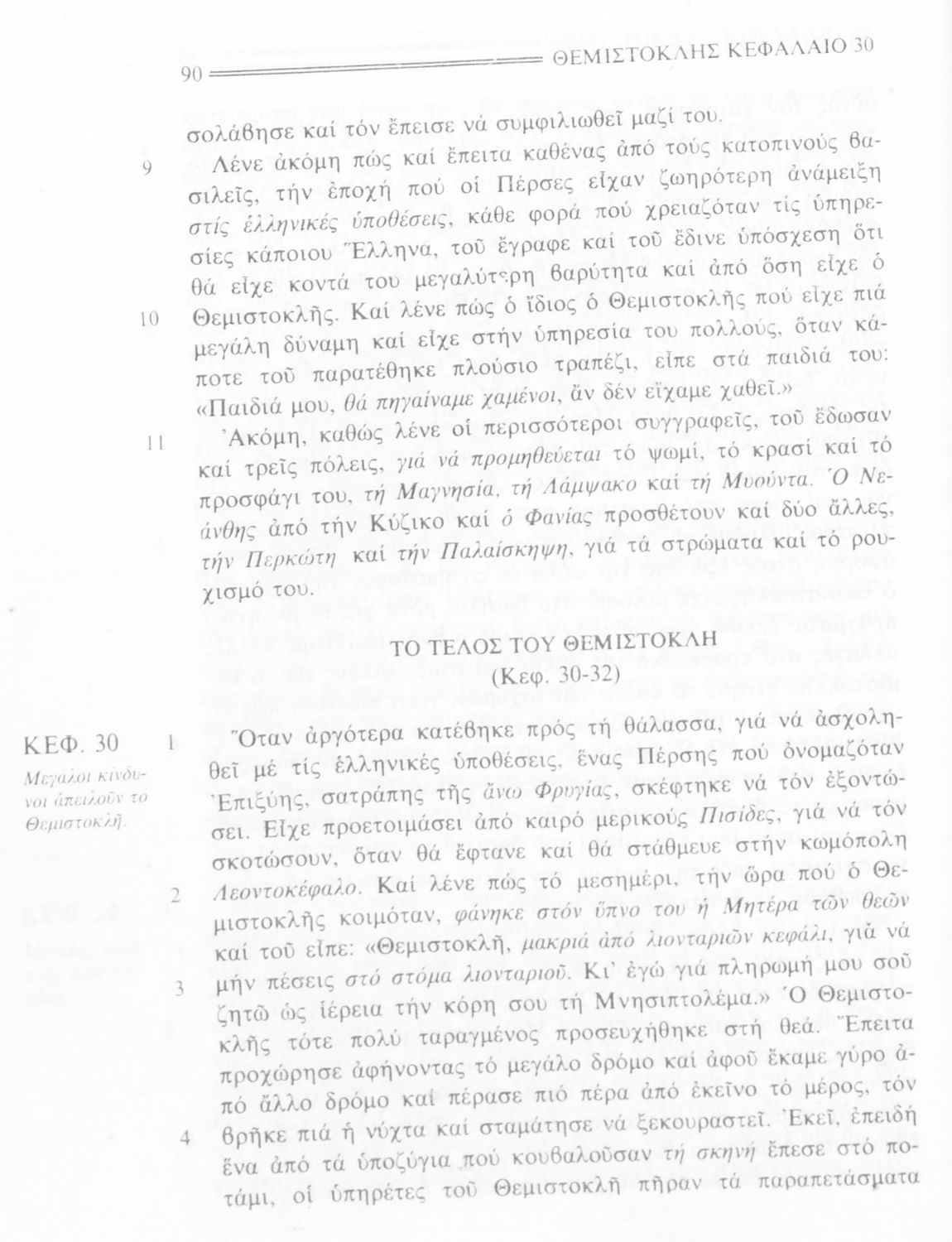 Σχολικό εγχειρίδιο Αρχαίων Ελληνικών Β΄ Γυμνασίου που περιέχει μετάφραση του έργο του Πλούταρχου Θεμιστοκλής και Περικλής, εισαγωγή και ερμηνευτικά σχόλια.