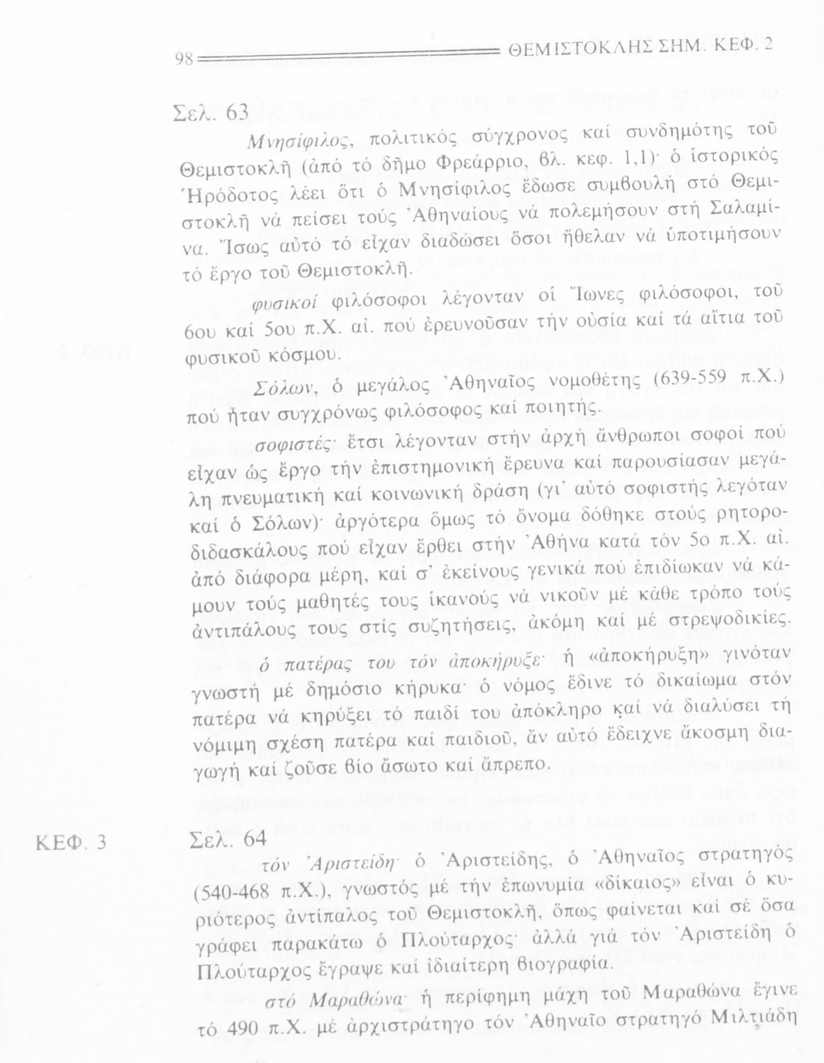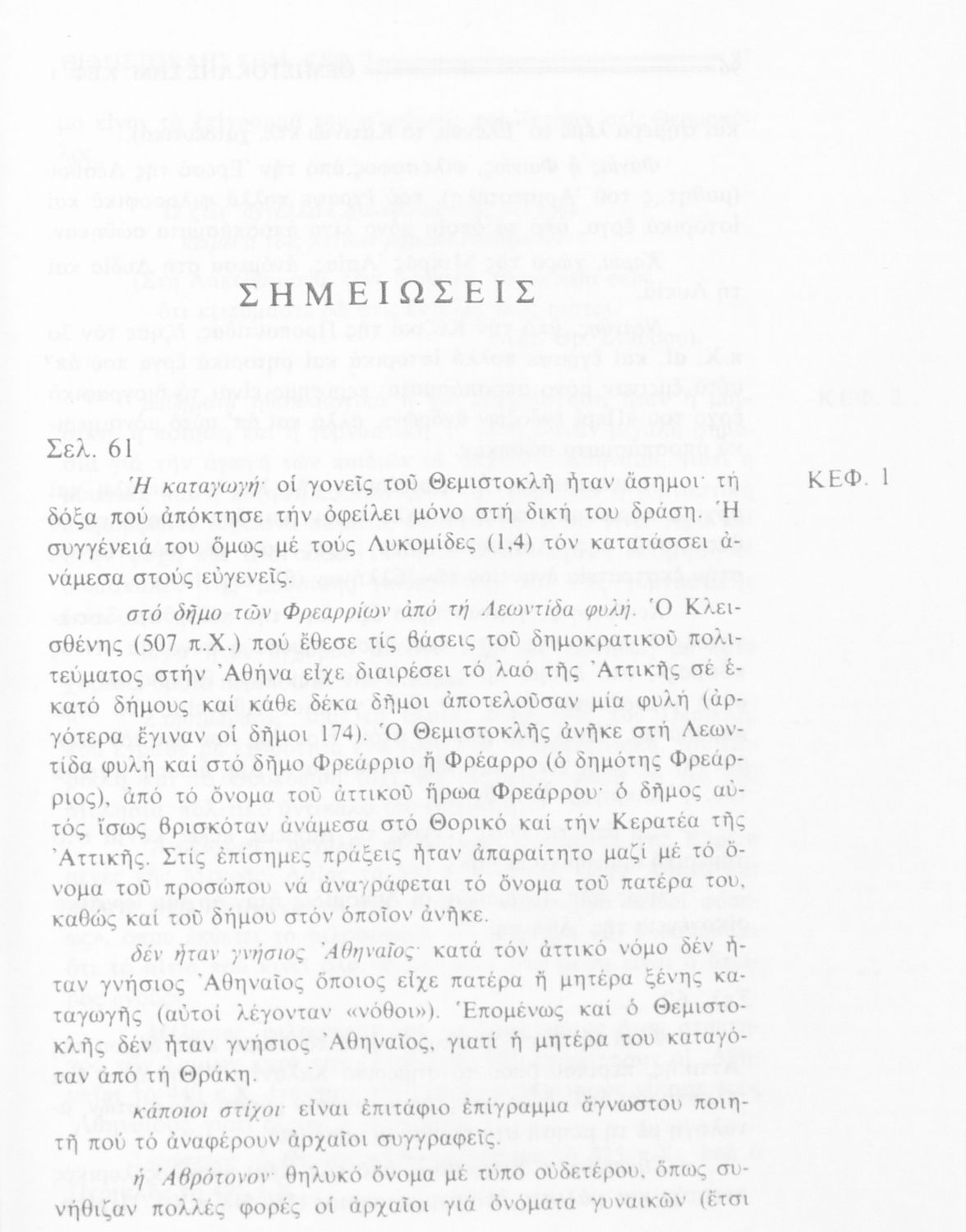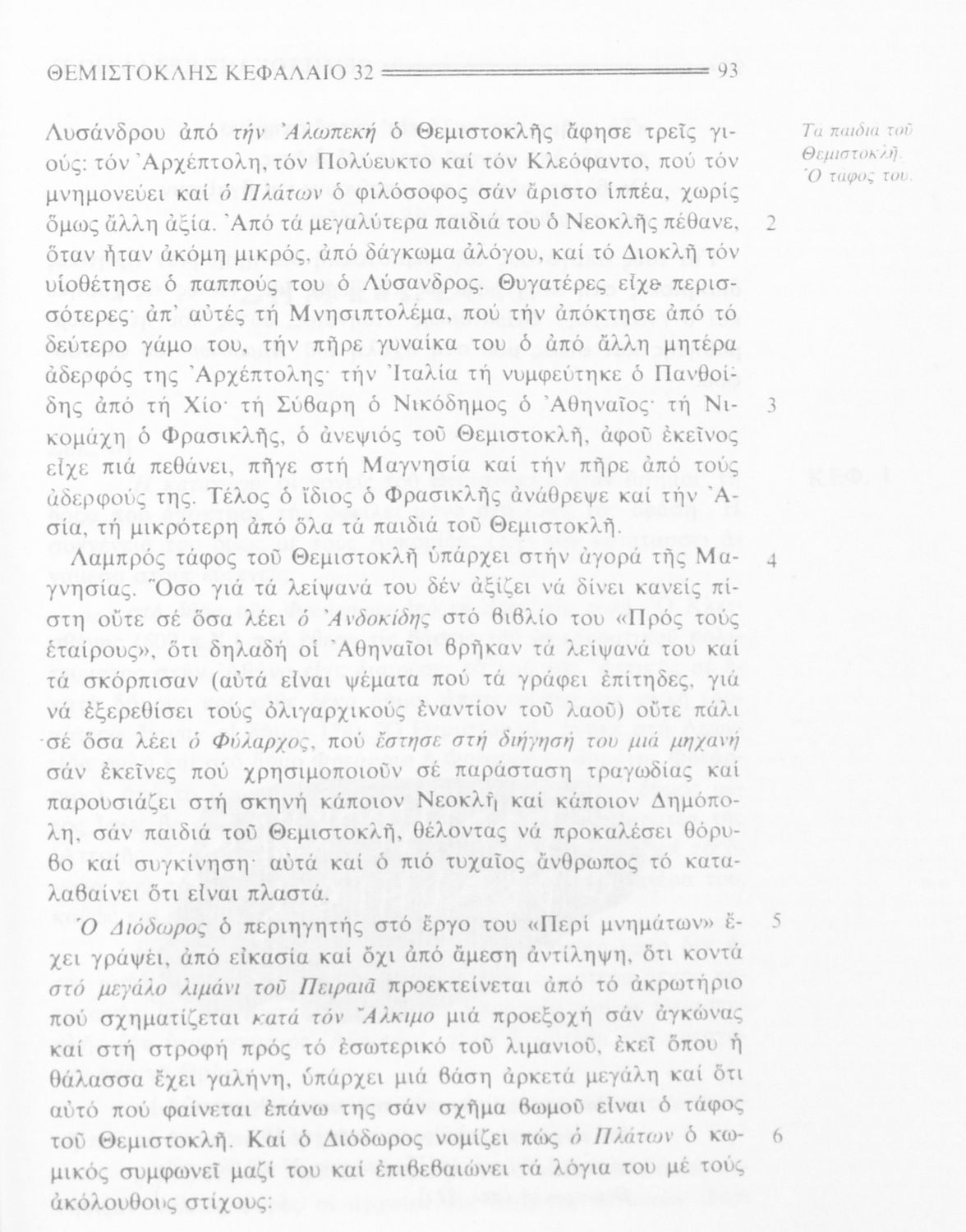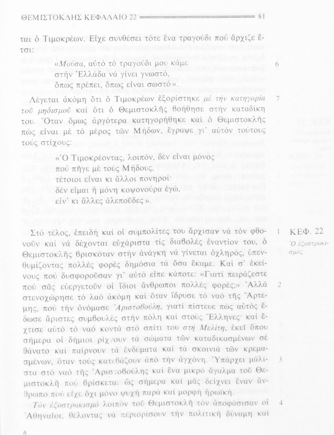 Σχολικό εγχειρίδιο Αρχαίων Ελληνικών Β΄ Γυμνασίου που περιέχει μετάφραση του έργο του Πλούταρχου Θεμιστοκλής και Περικλής, εισαγωγή και ερμηνευτικά σχόλια.