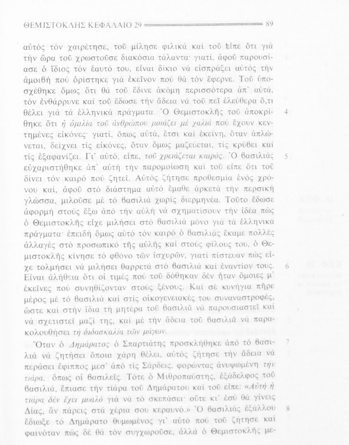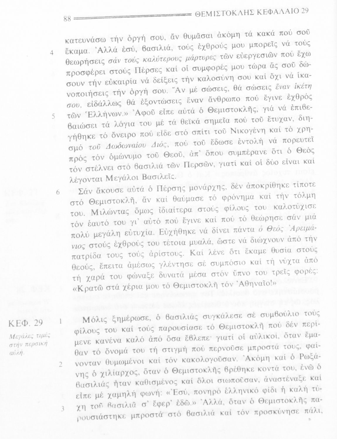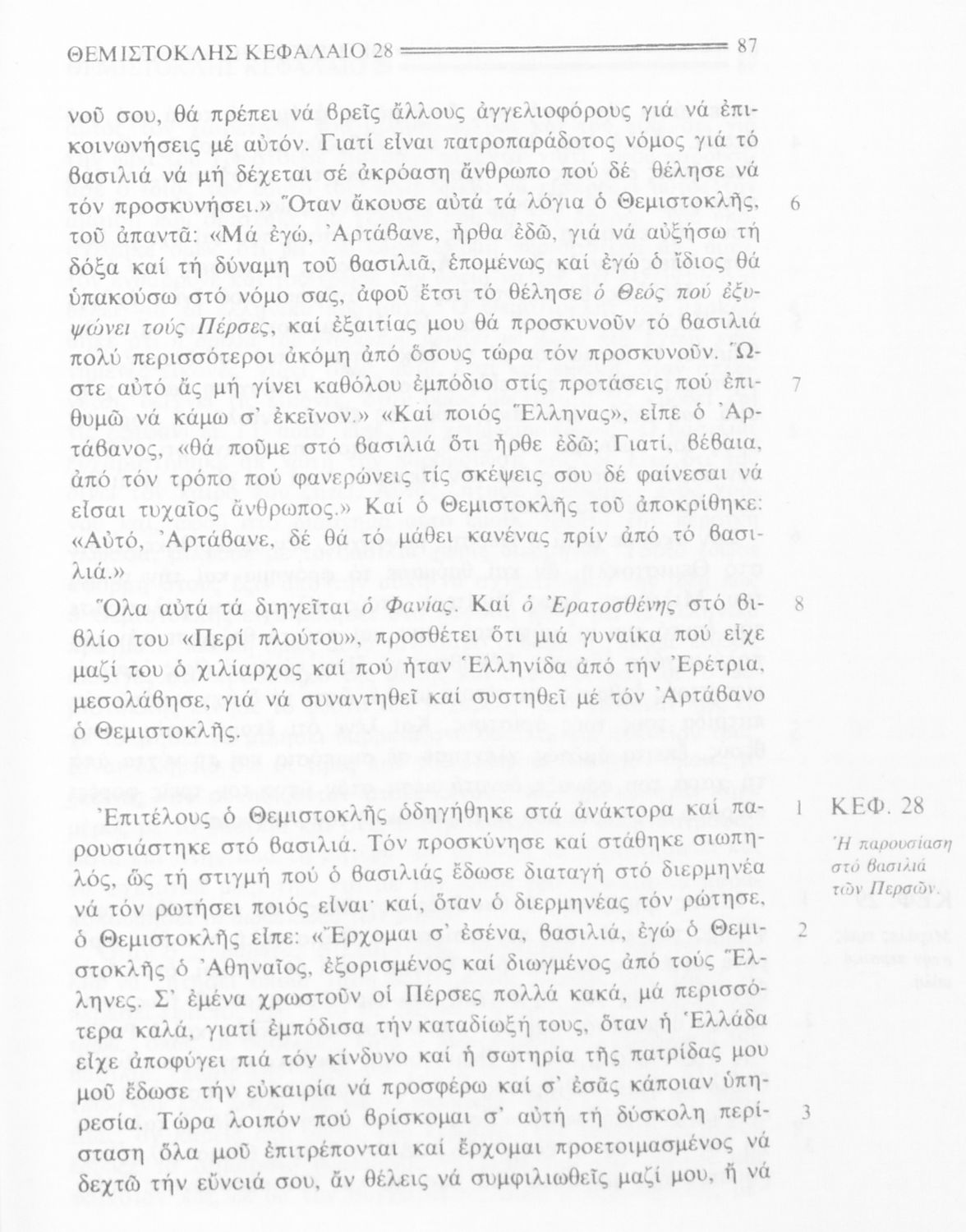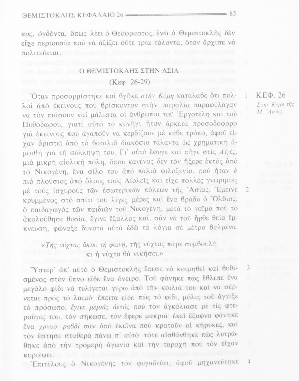 Σχολικό εγχειρίδιο Αρχαίων Ελληνικών Β΄ Γυμνασίου που περιέχει μετάφραση του έργο του Πλούταρχου Θεμιστοκλής και Περικλής, εισαγωγή και ερμηνευτικά σχόλια.