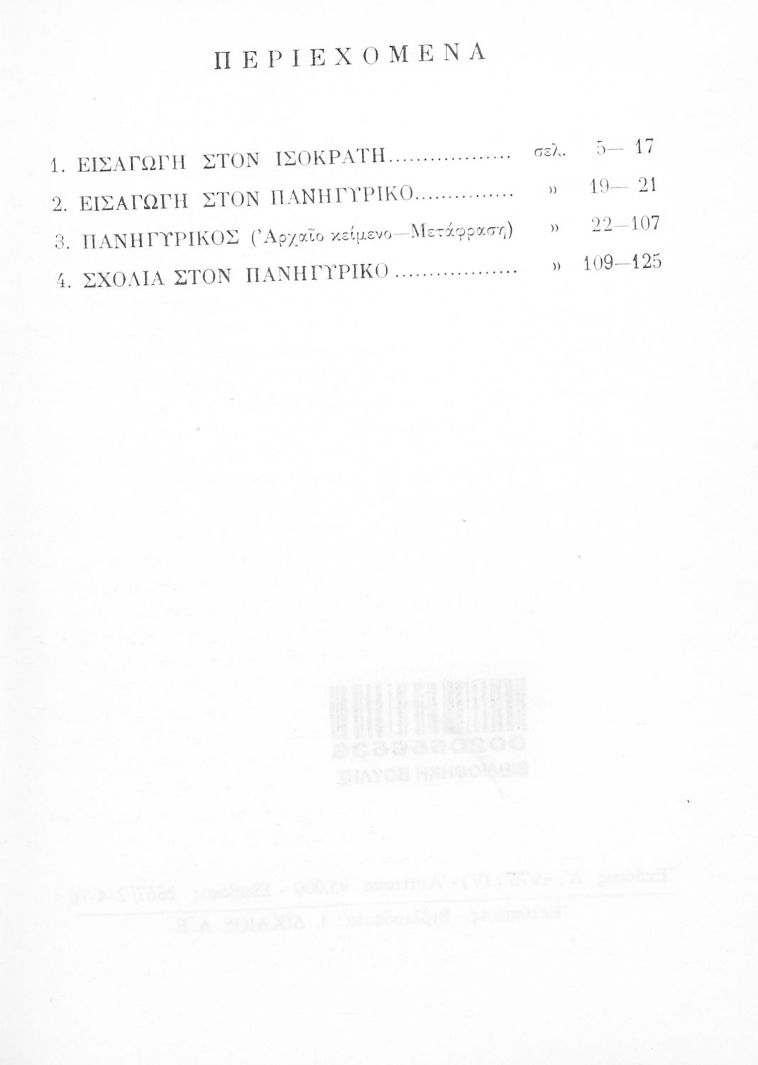 Σχολικό εγχειρίδιο Αρχαίων Ελληνικών Δ΄ Γυμνασίου που περιλαμβάνει εισαγωγή στη ζωή και το έργο του Ισοκράτη, τον Πανηγυρικό, μετάφραση και ερμηνευτικές σημειώσεις.
