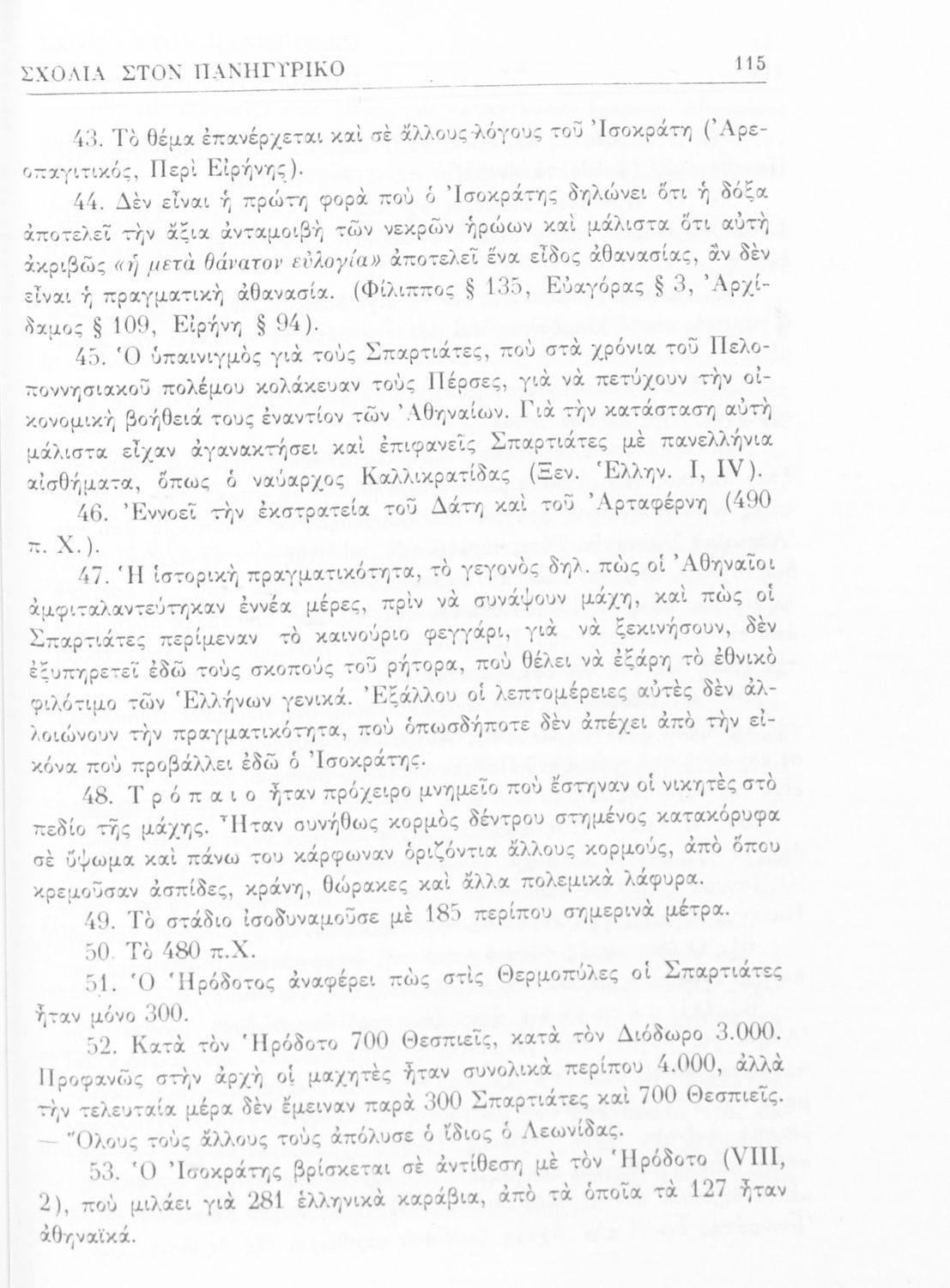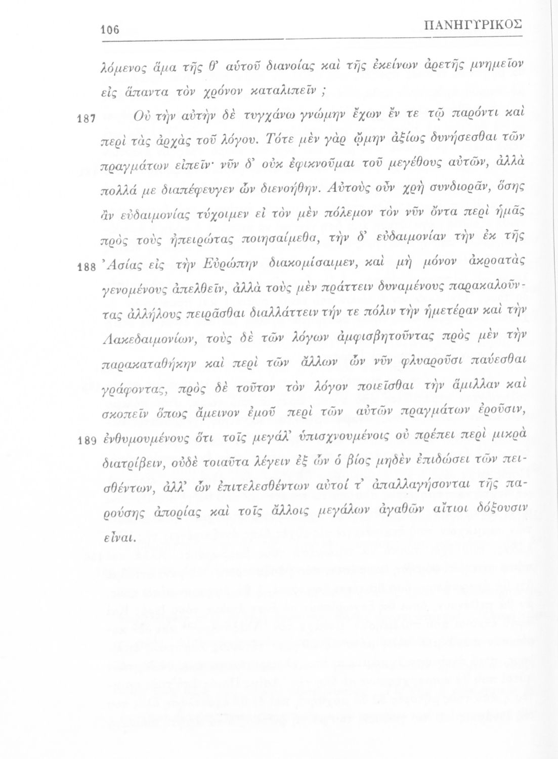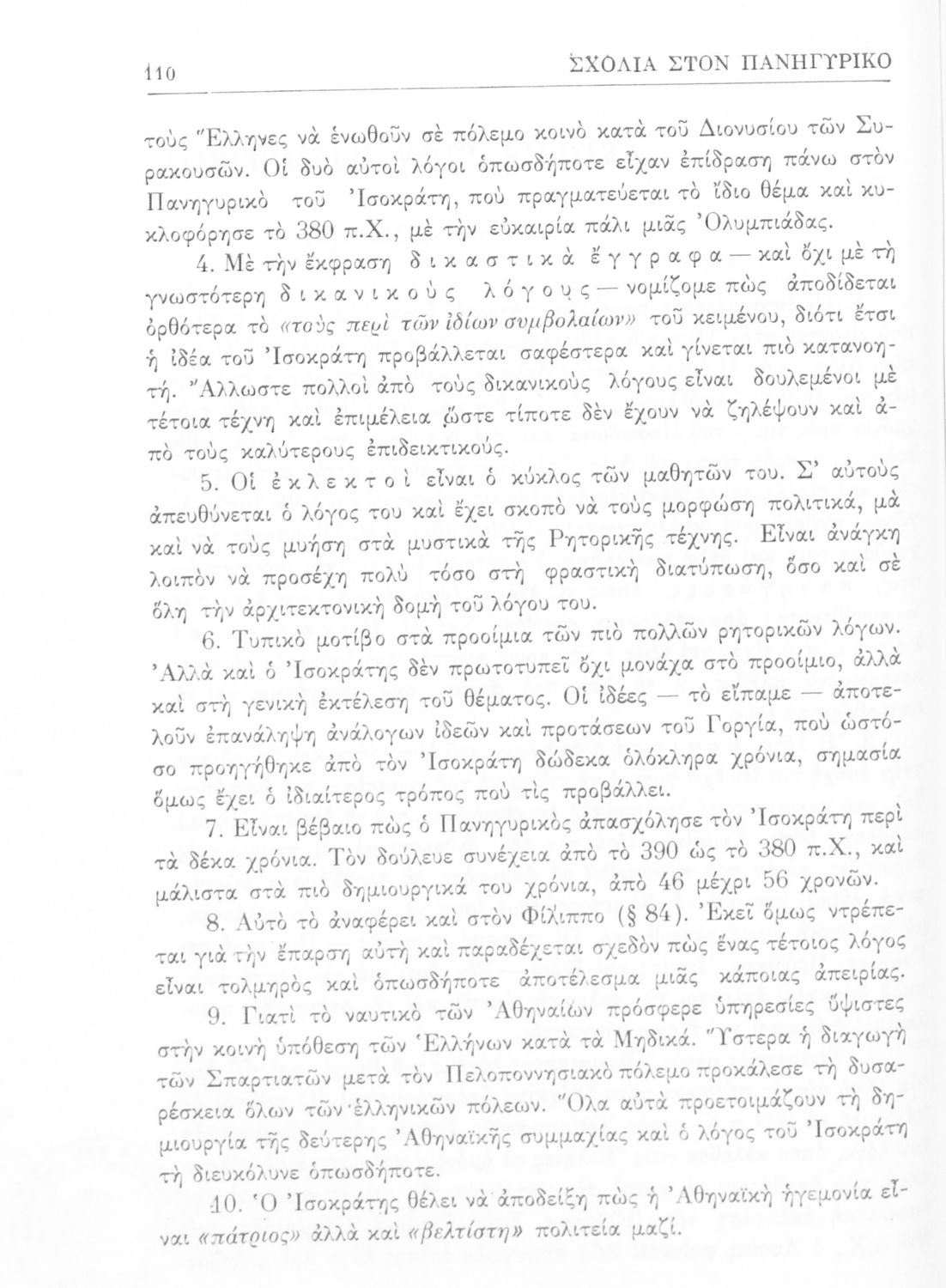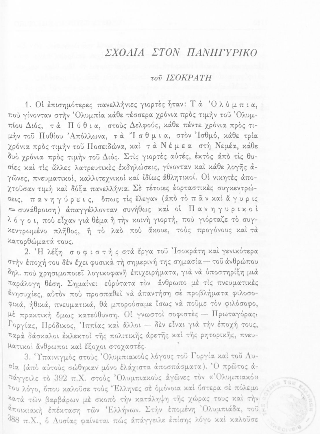 Σχολικό εγχειρίδιο Αρχαίων Ελληνικών Δ΄ Γυμνασίου που περιλαμβάνει εισαγωγή στη ζωή και το έργο του Ισοκράτη, τον Πανηγυρικό, μετάφραση και ερμηνευτικές σημειώσεις.