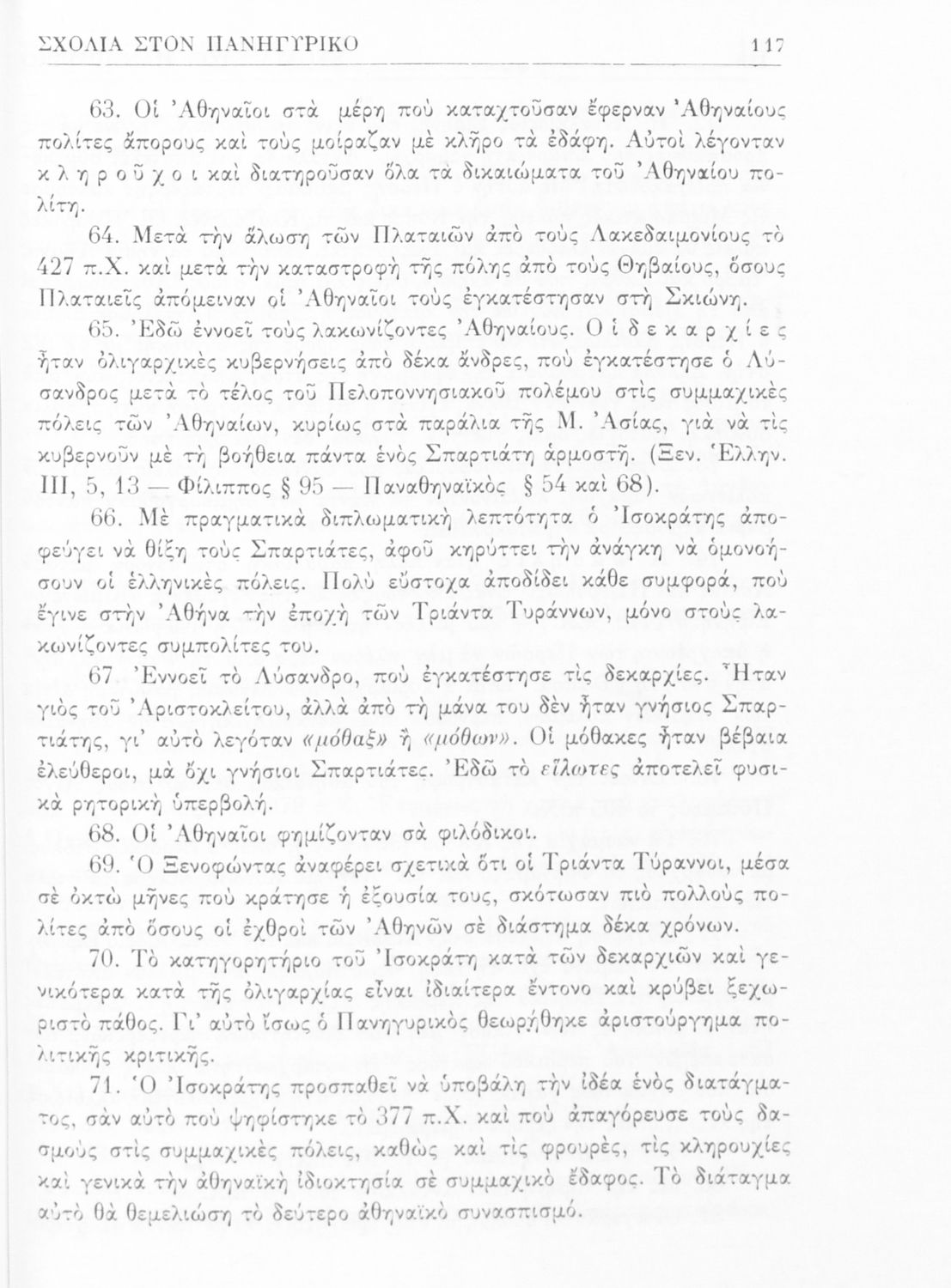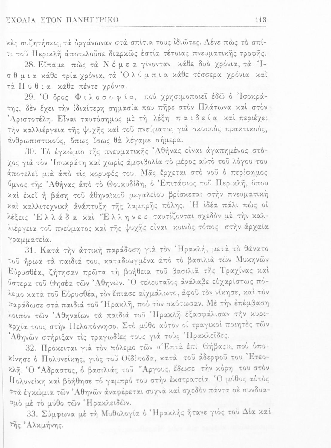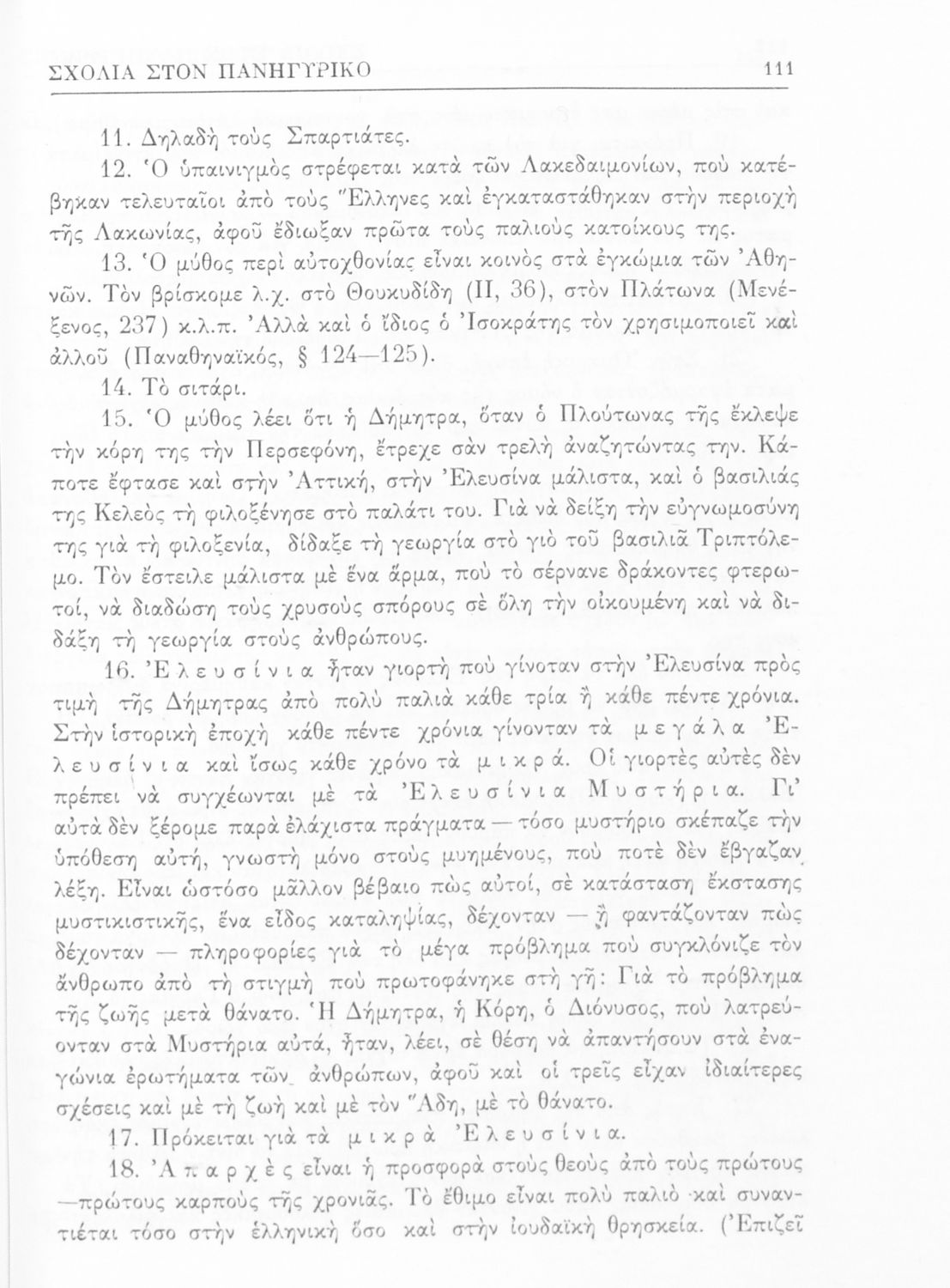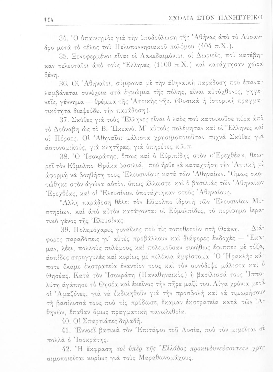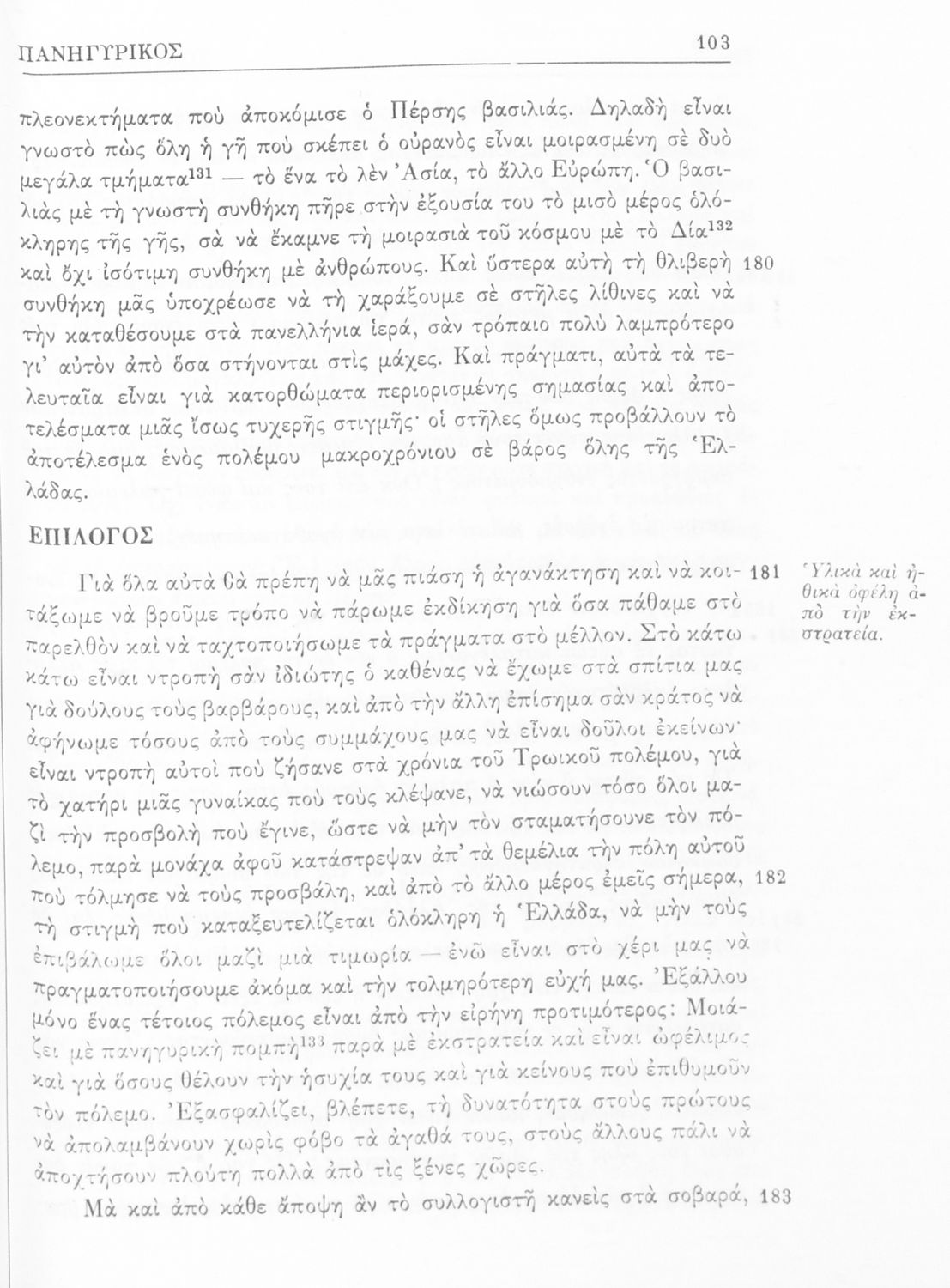 Σχολικό εγχειρίδιο Αρχαίων Ελληνικών Δ΄ Γυμνασίου που περιλαμβάνει εισαγωγή στη ζωή και το έργο του Ισοκράτη, τον Πανηγυρικό, μετάφραση και ερμηνευτικές σημειώσεις.