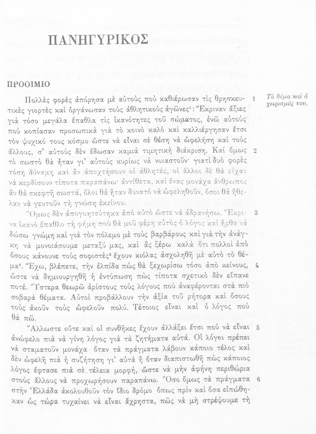 Σχολικό εγχειρίδιο Αρχαίων Ελληνικών Β΄ Γυμνασίου που περιλαμβάνει εισαγωγή στη ζωή και το έργο του Ισοκράτη, τον Πανηγυρικό, μετάφραση και ερμηνευτικές σημειώσεις.
