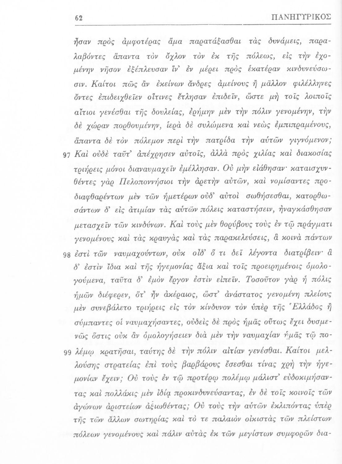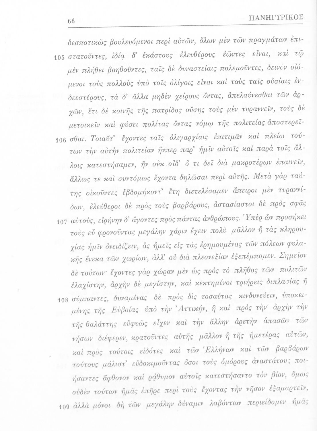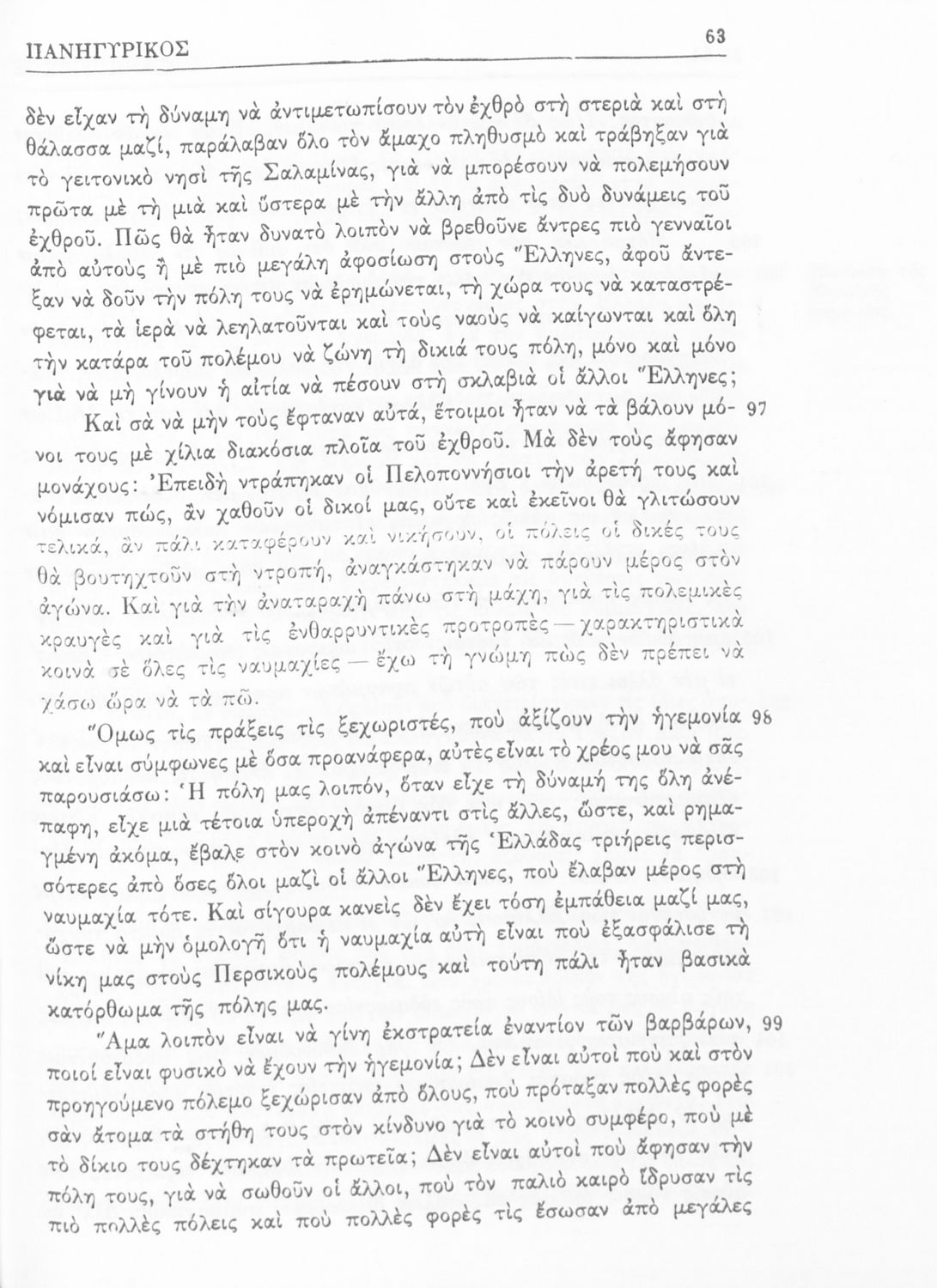 Σχολικό εγχειρίδιο Αρχαίων Ελληνικών Β΄ Γυμνασίου που περιλαμβάνει εισαγωγή στη ζωή και το έργο του Ισοκράτη, τον Πανηγυρικό, μετάφραση και ερμηνευτικές σημειώσεις.