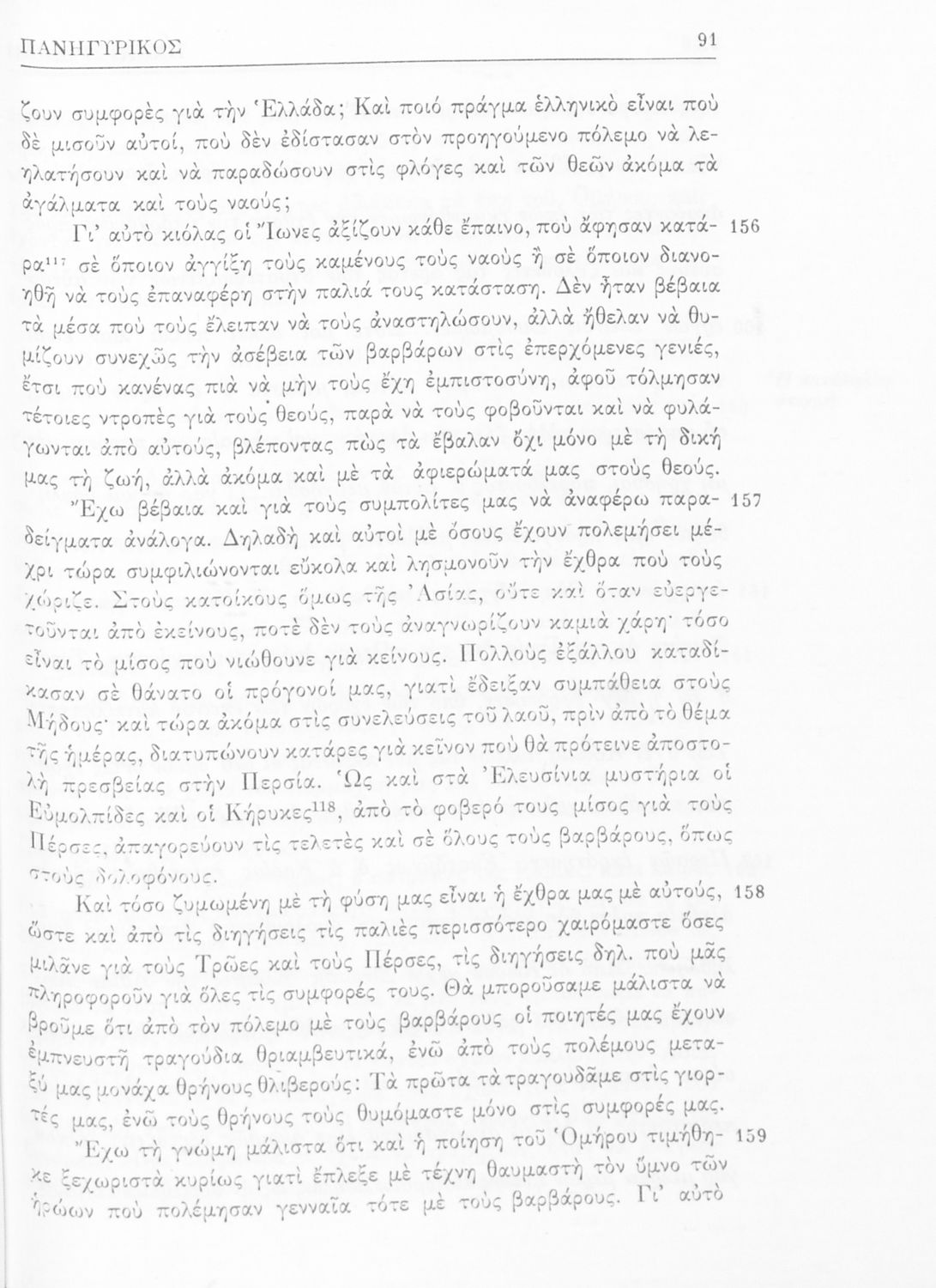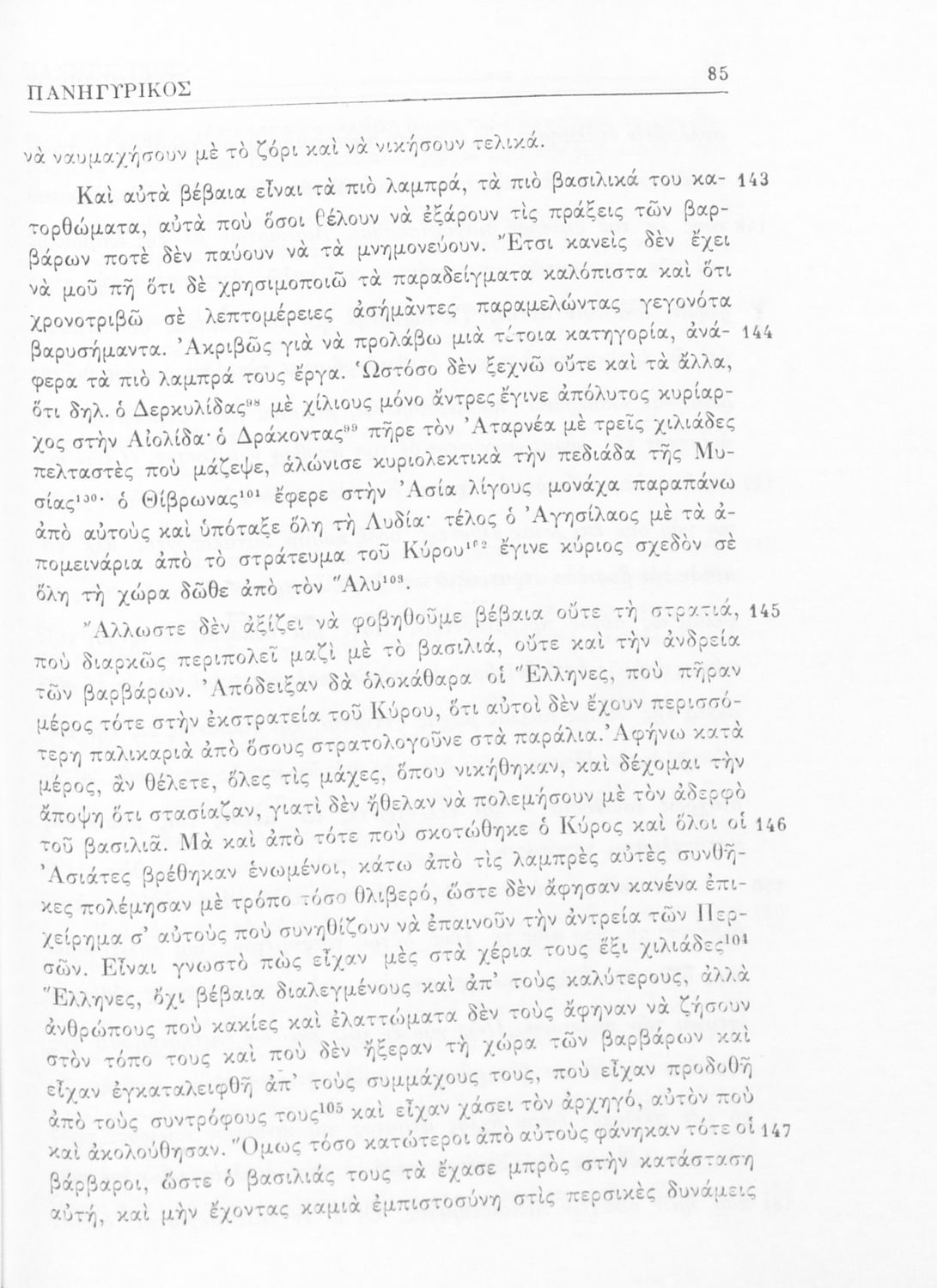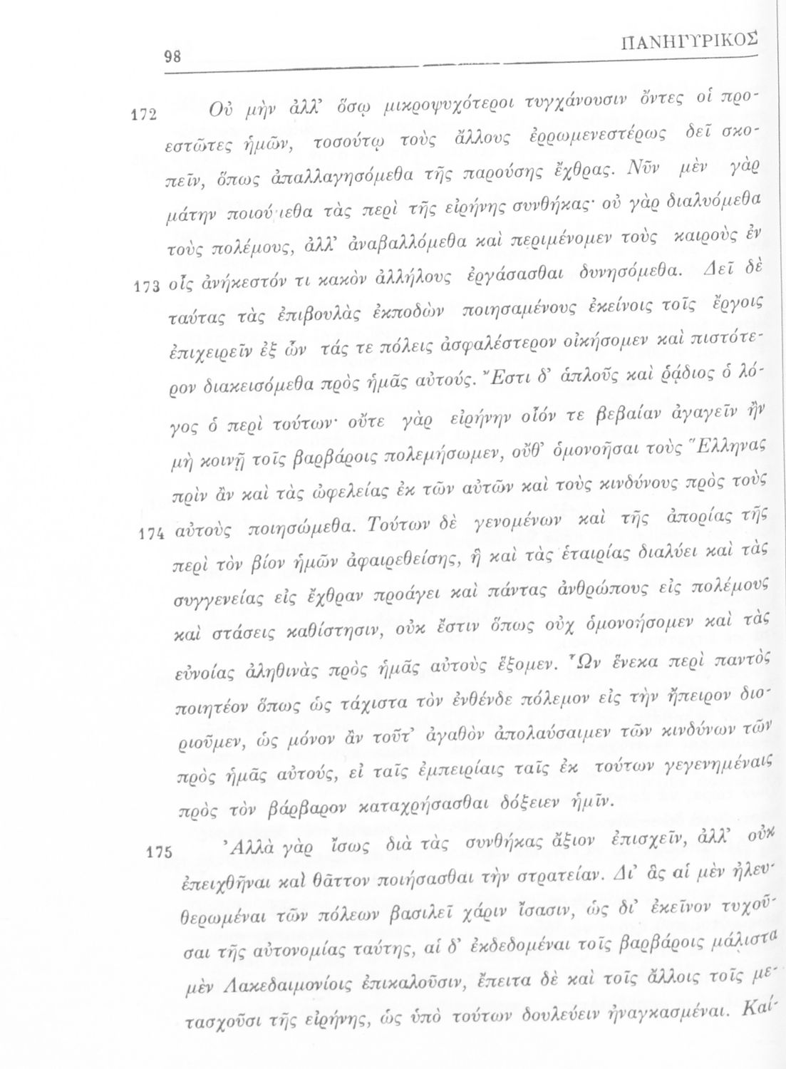 Σχολικό εγχειρίδιο Αρχαίων Ελληνικών Β΄ Γυμνασίου που περιλαμβάνει εισαγωγή στη ζωή και το έργο του Ισοκράτη, τον Πανηγυρικό, μετάφραση και ερμηνευτικές σημειώσεις.