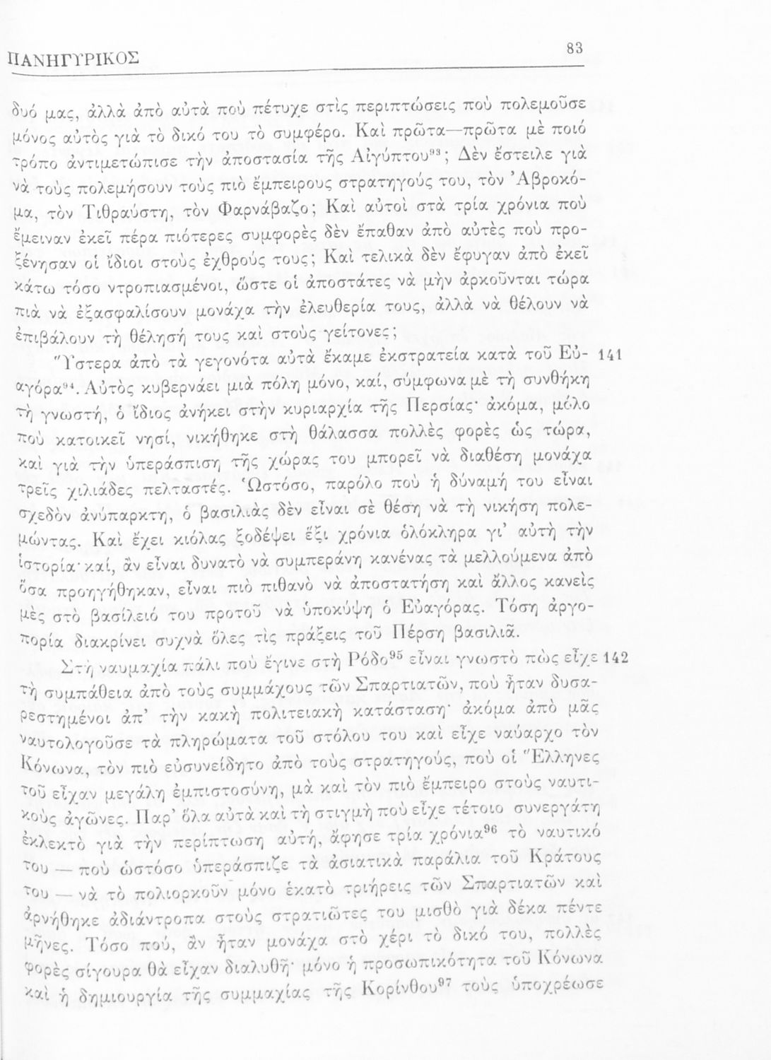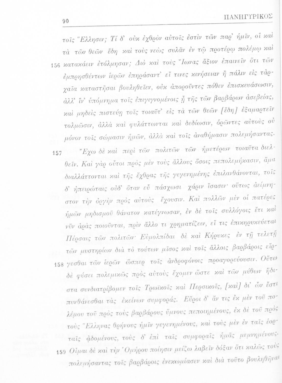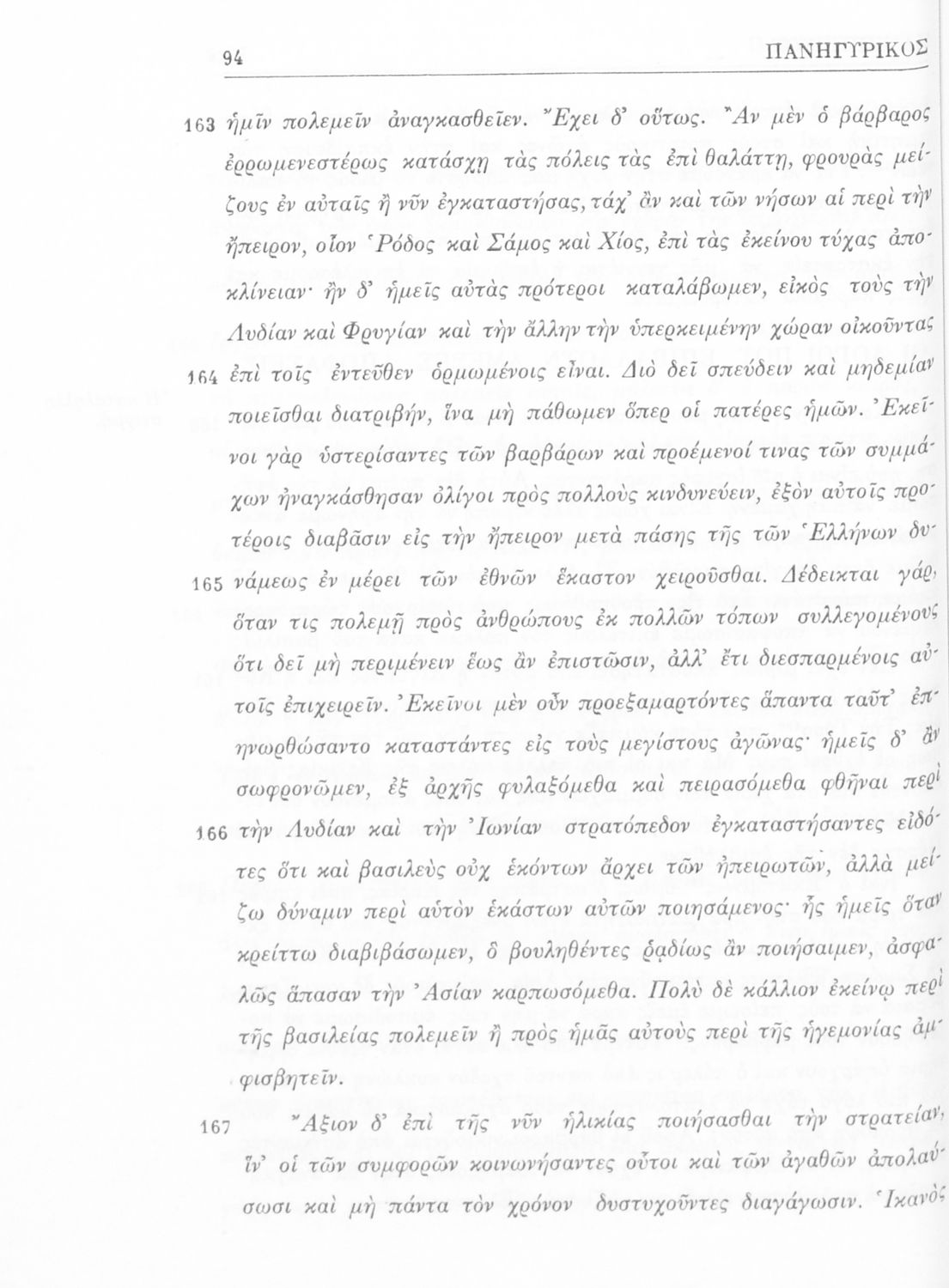 Σχολικό εγχειρίδιο Αρχαίων Ελληνικών Β΄ Γυμνασίου που περιλαμβάνει εισαγωγή στη ζωή και το έργο του Ισοκράτη, τον Πανηγυρικό, μετάφραση και ερμηνευτικές σημειώσεις.