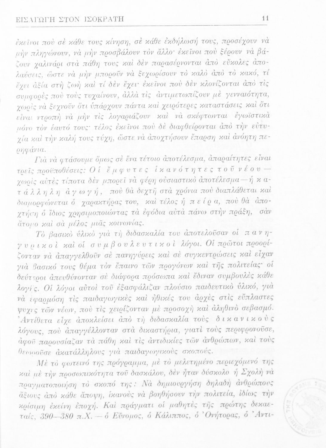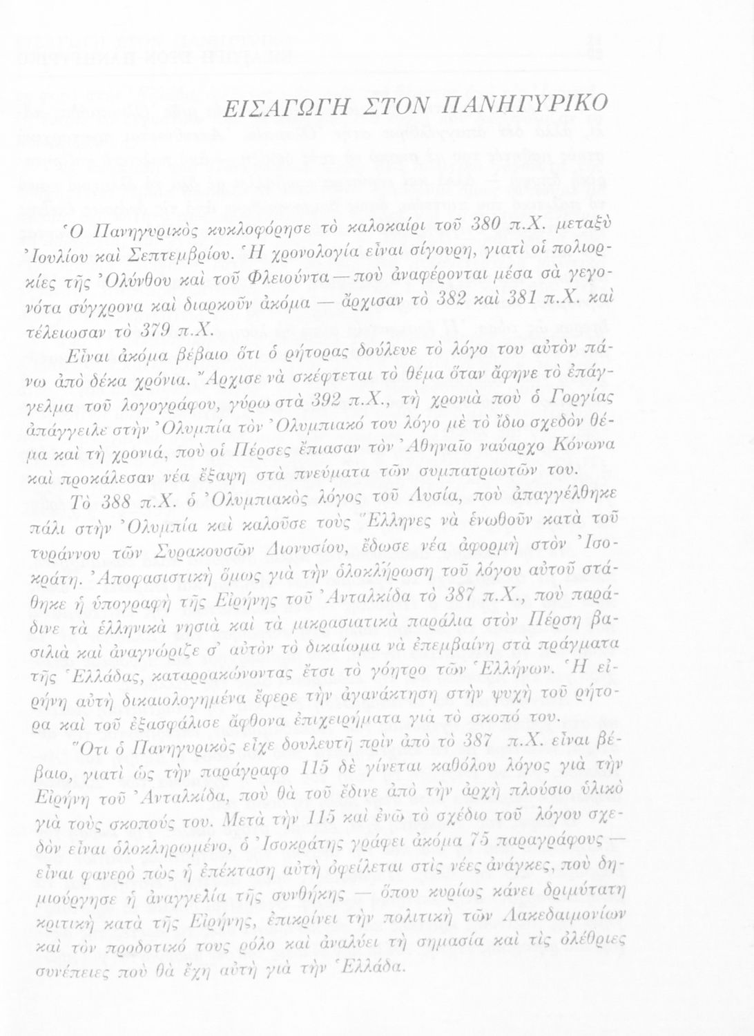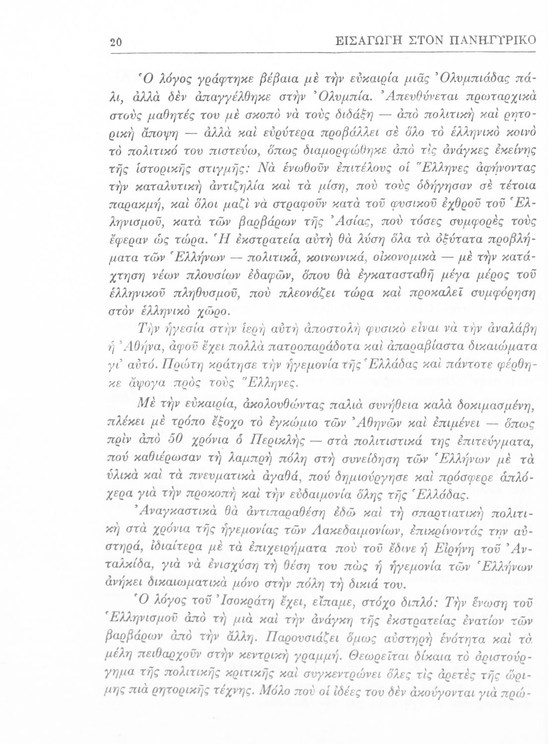 Σχολικό εγχειρίδιο Αρχαίων Ελληνικών Δ΄ Γυμνασίου που περιλαμβάνει εισαγωγή στη ζωή και το έργο του Ισοκράτη, τον Πανηγυρικό, μετάφραση και ερμηνευτικές σημειώσεις.