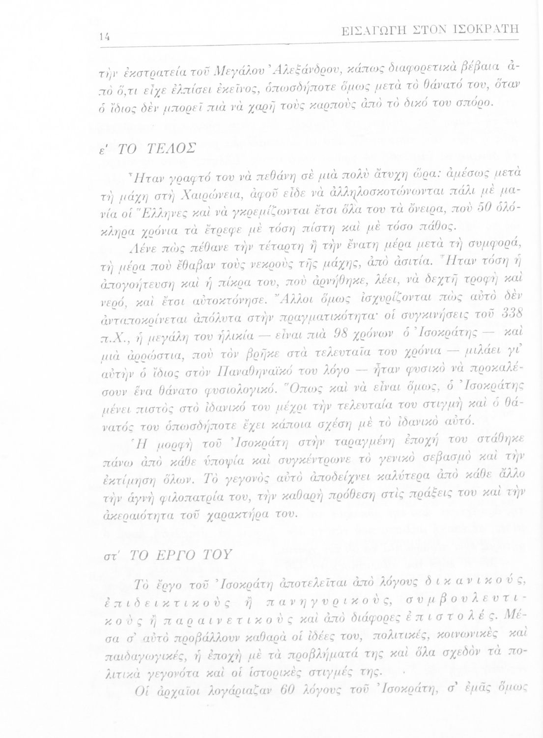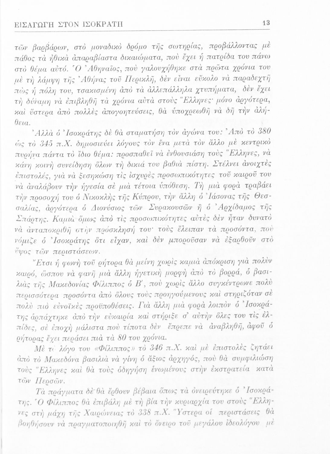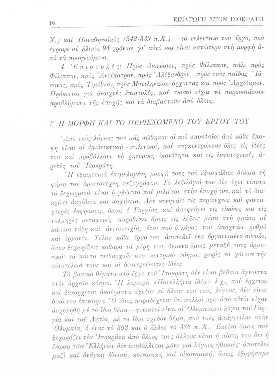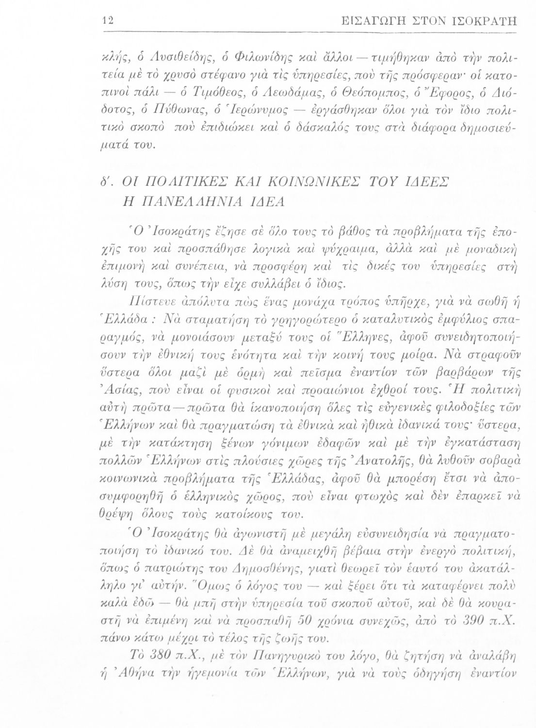 Σχολικό εγχειρίδιο Αρχαίων Ελληνικών Δ΄ Γυμνασίου που περιλαμβάνει εισαγωγή στη ζωή και το έργο του Ισοκράτη, τον Πανηγυρικό, μετάφραση και ερμηνευτικές σημειώσεις.