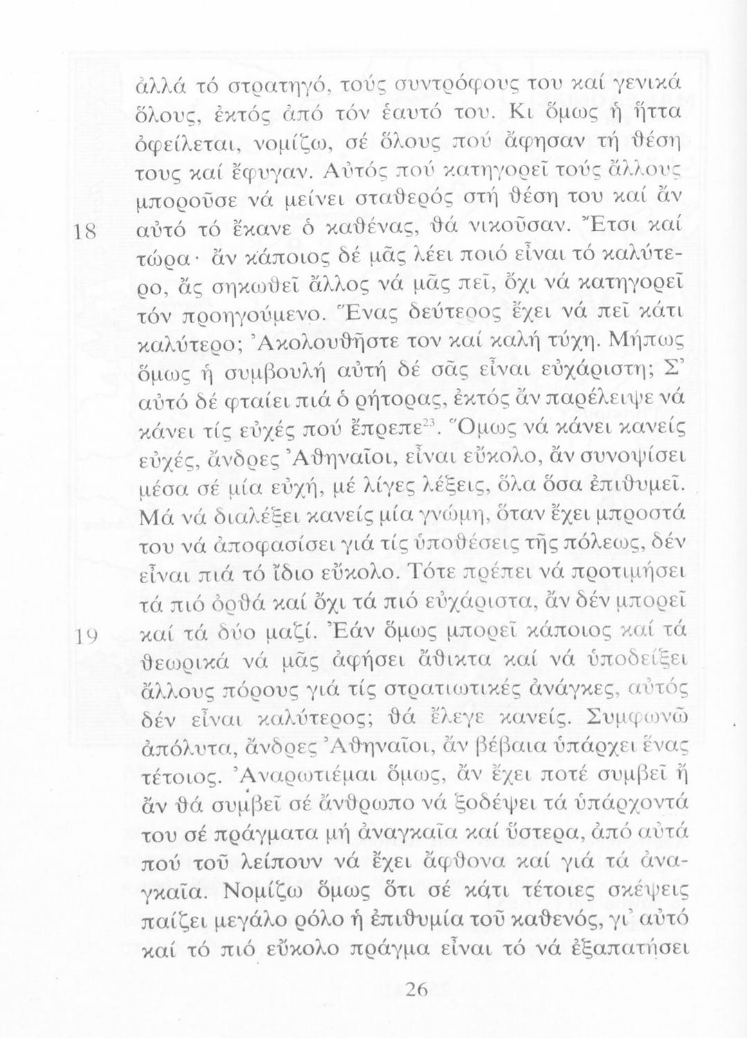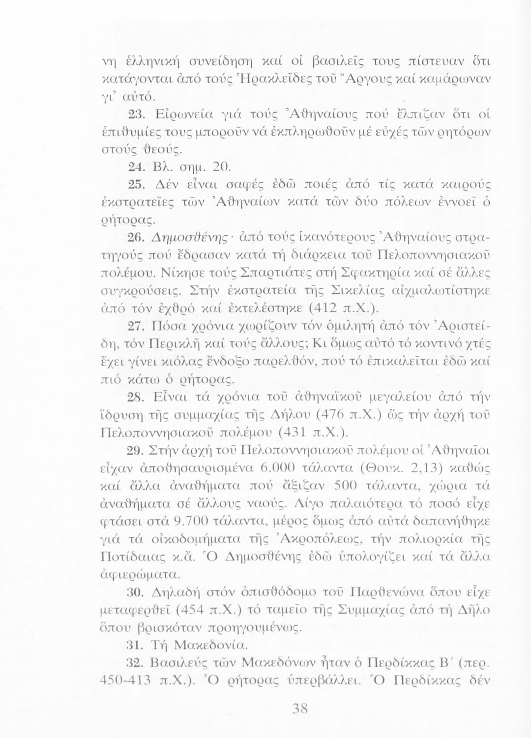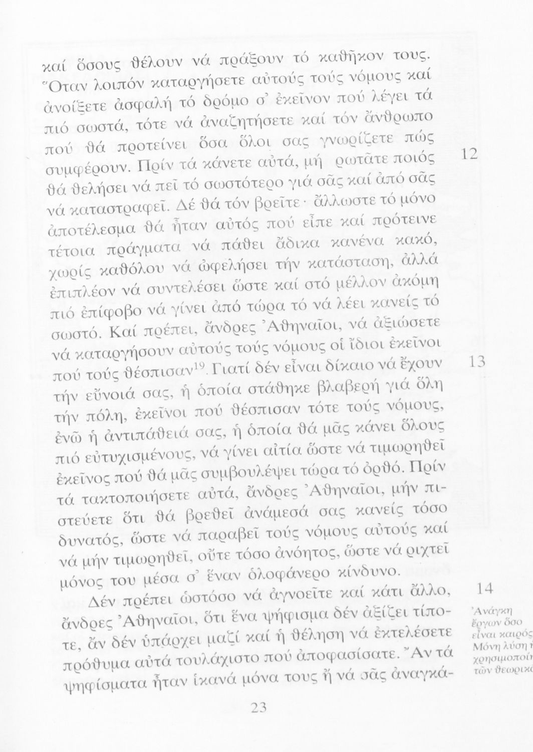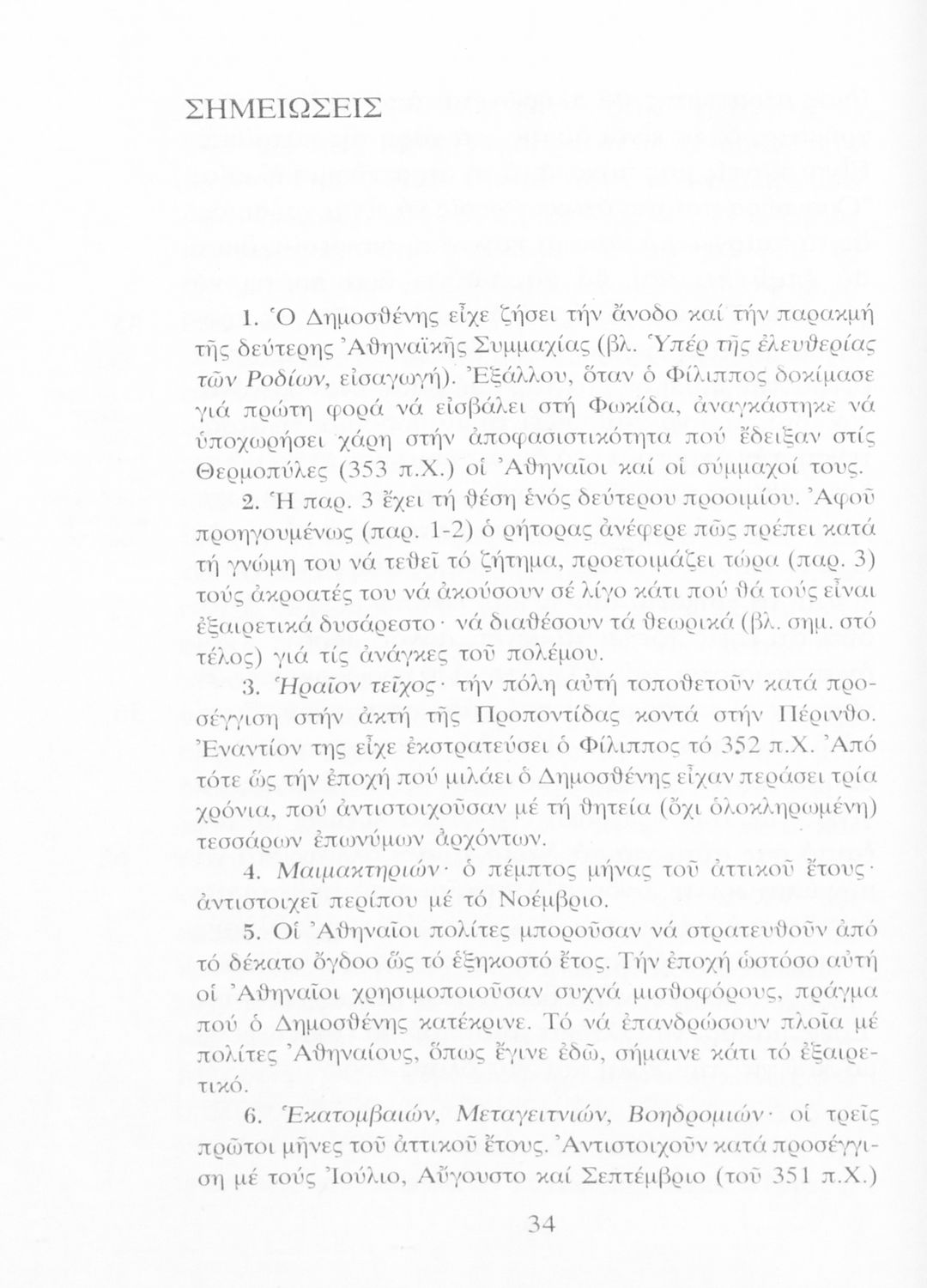 Σχολικό εγχειρίδιο Αρχαίων Ελληνικών Γ΄ Γυμνασίου περιλαμβάνει εισαγωγή στη ζωή και το έργο του Δημοσθένη, τους Λόγους του Γ΄ Ολυνθιακός και Υπέρ της ελευθερίας των Ροδίων σε μετάφραση και ερμηνευτικές ...