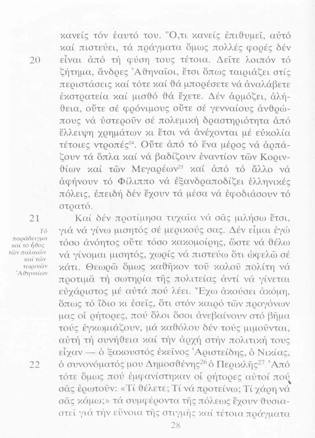 Δημοσθένης, Θαλ. Θεοδωρακόπουλος (σχόλια)